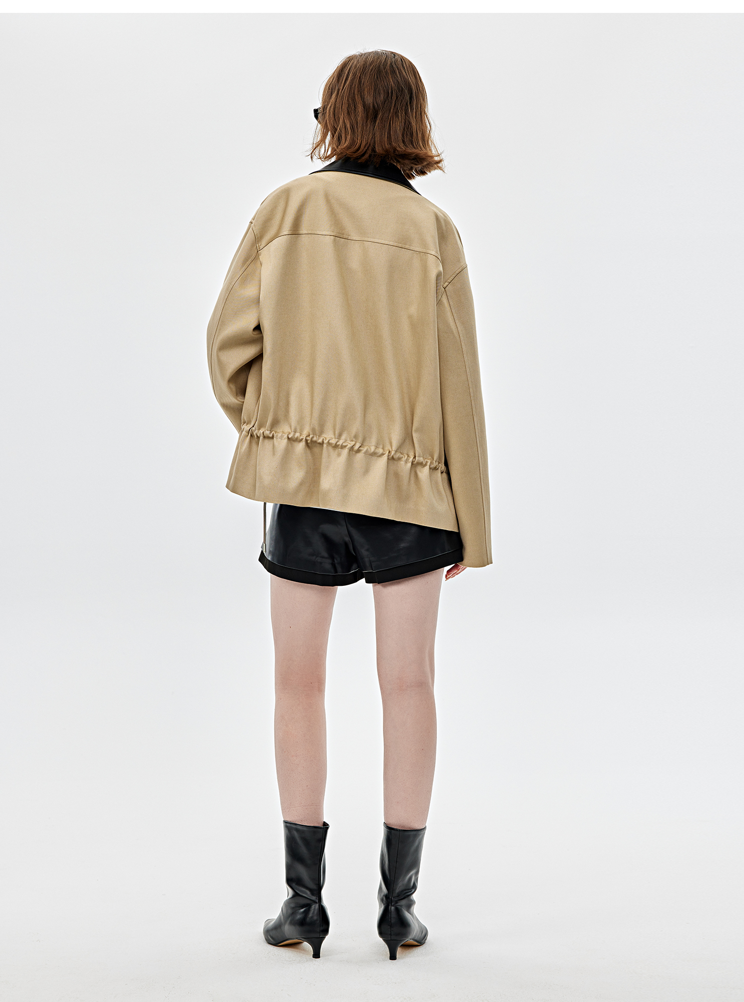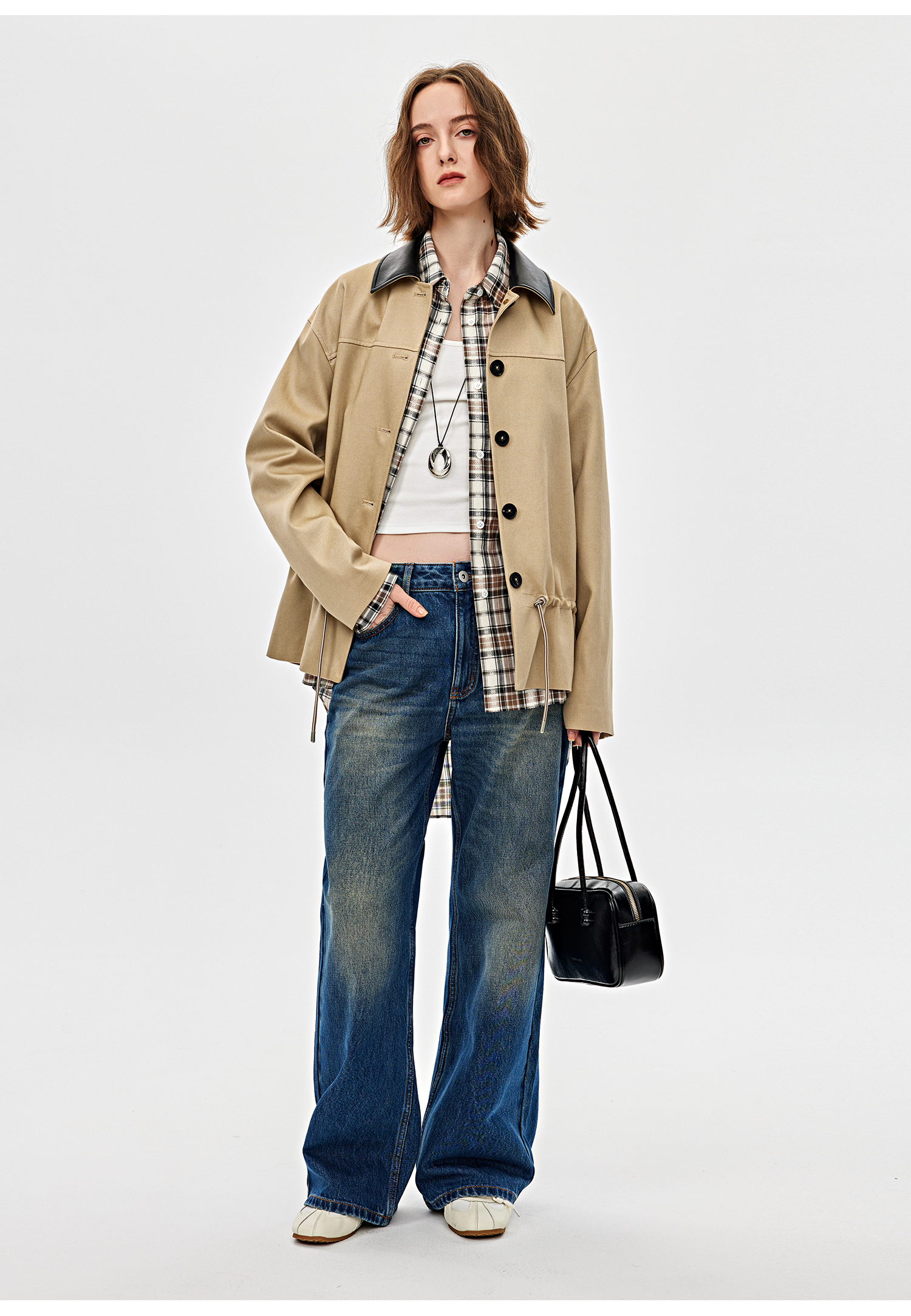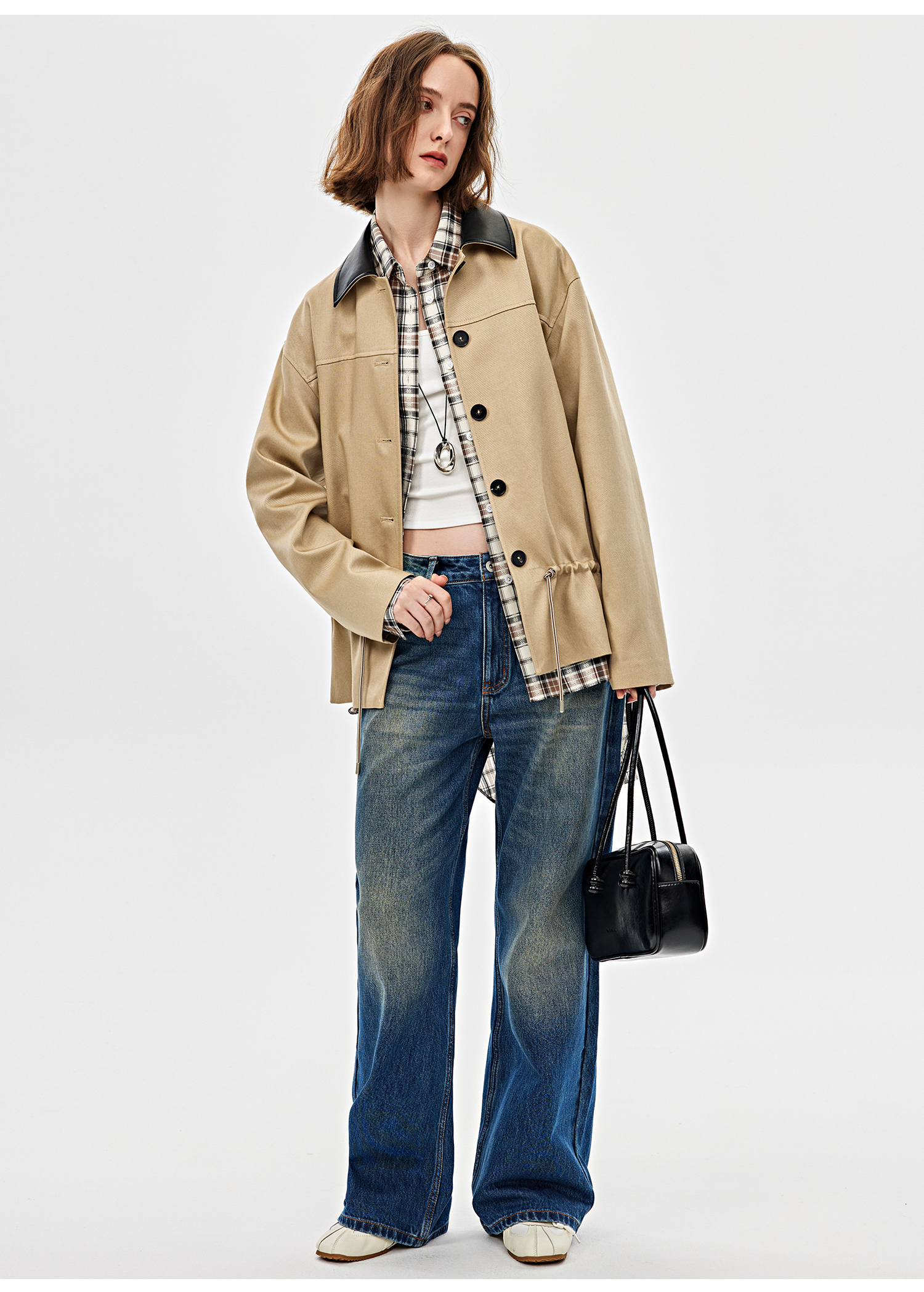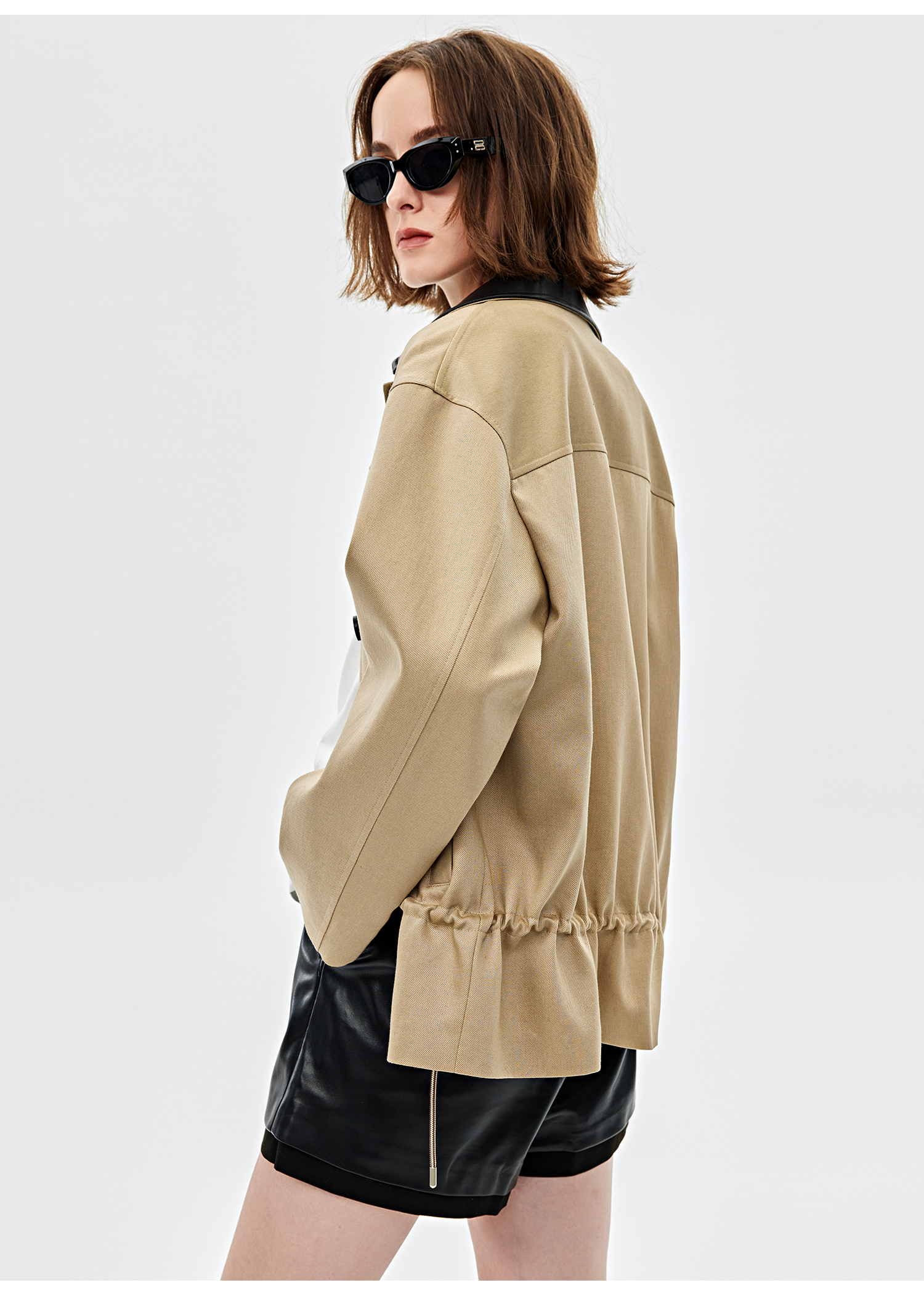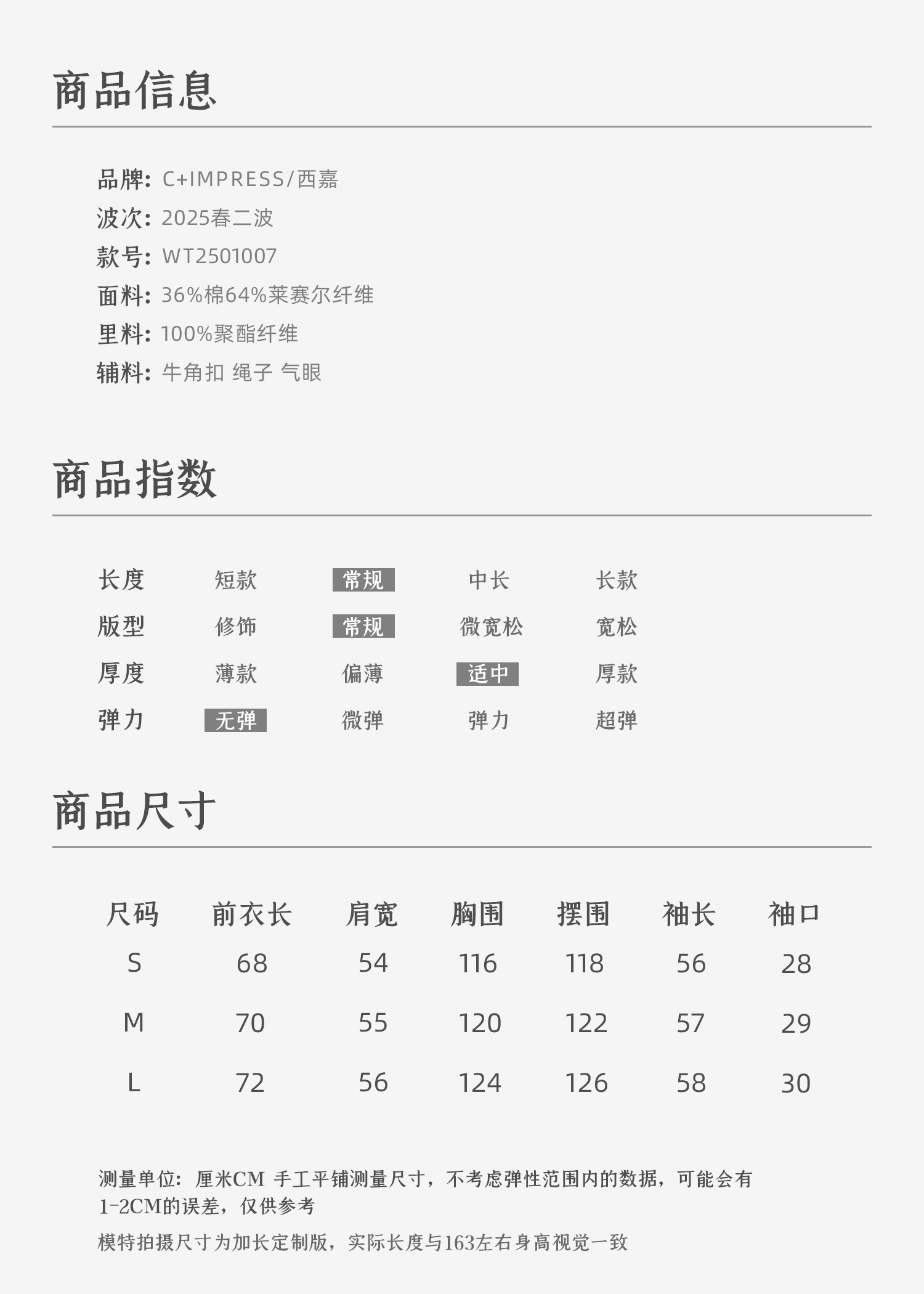 C+IMPRESS西嘉|天丝棉混纺复古巴恩风外套女皮领高端工装短款风衣WT2501007