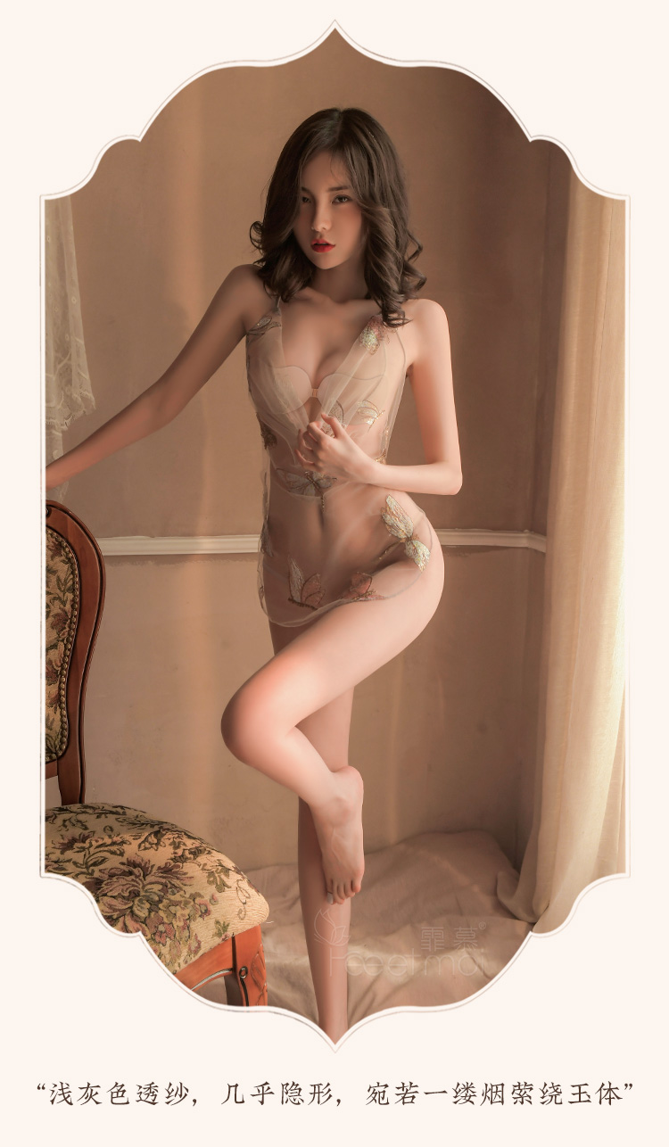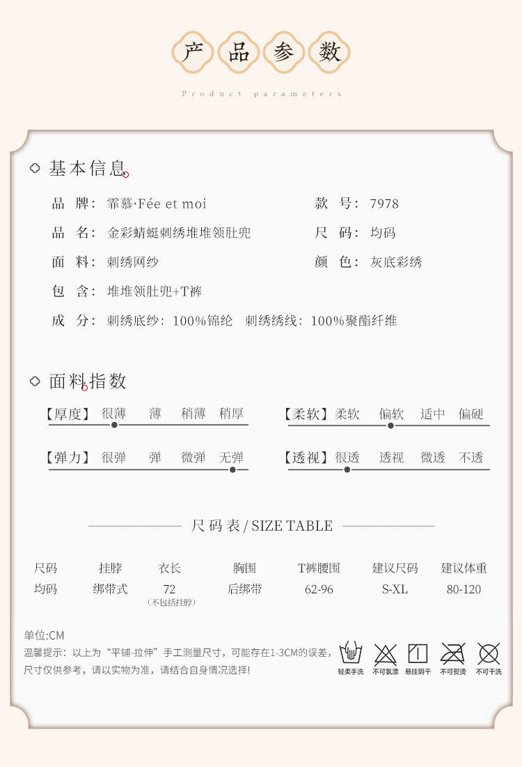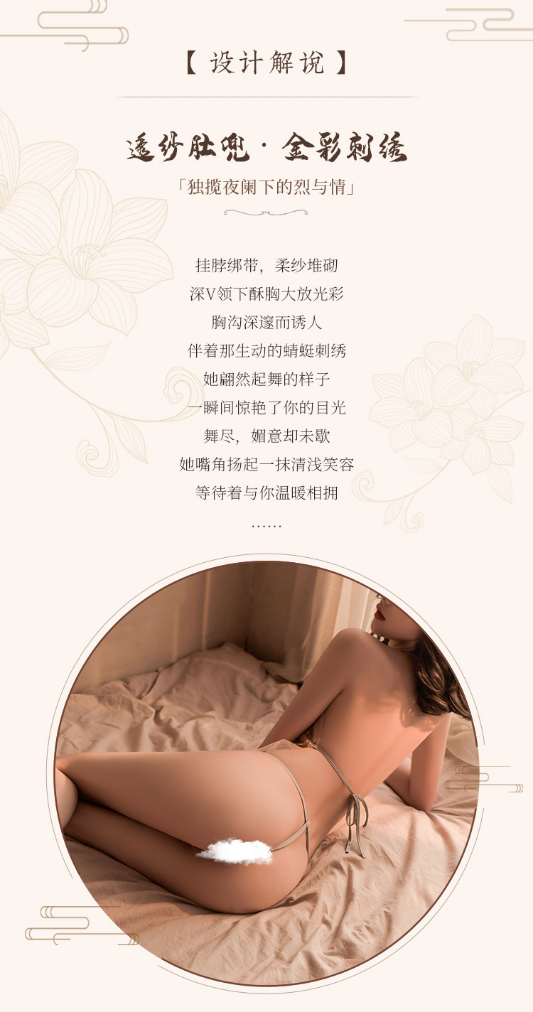 【情趣内衣】霏慕 金彩蜻蜓刺绣堆堆领肚兜7978