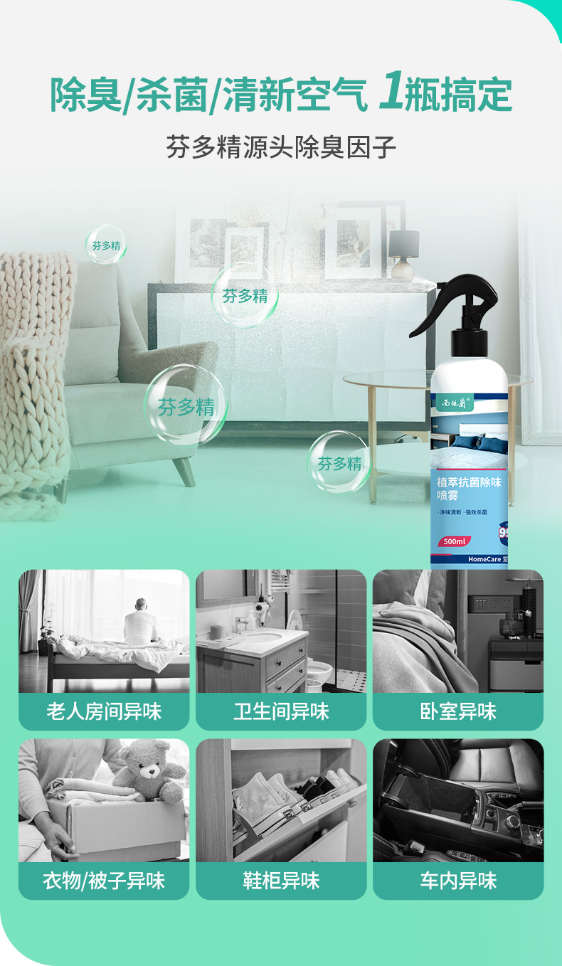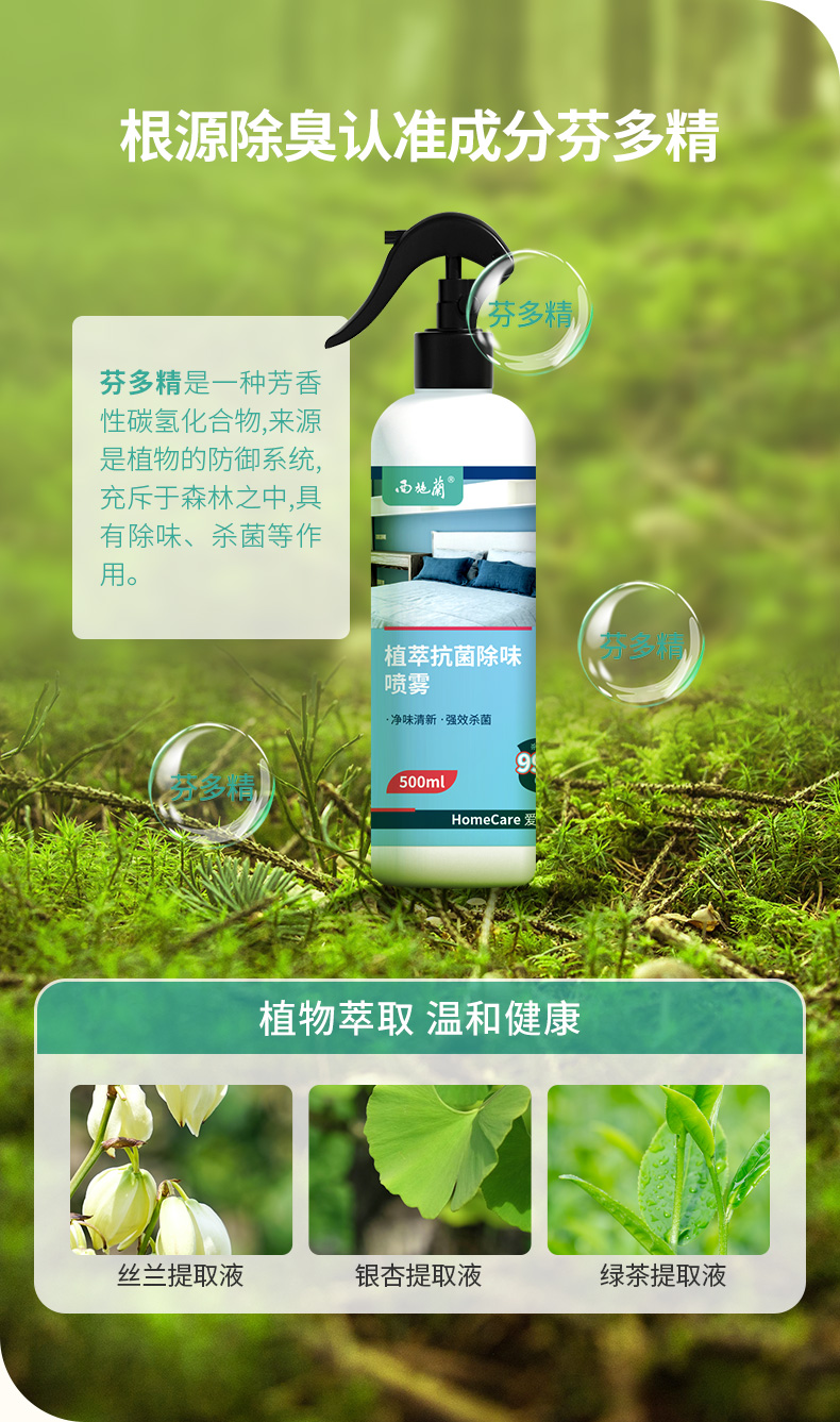 西施兰植萃抗菌去味喷雾 芬多精空气清新剂衣服被子卧室厕所杀菌除臭剂