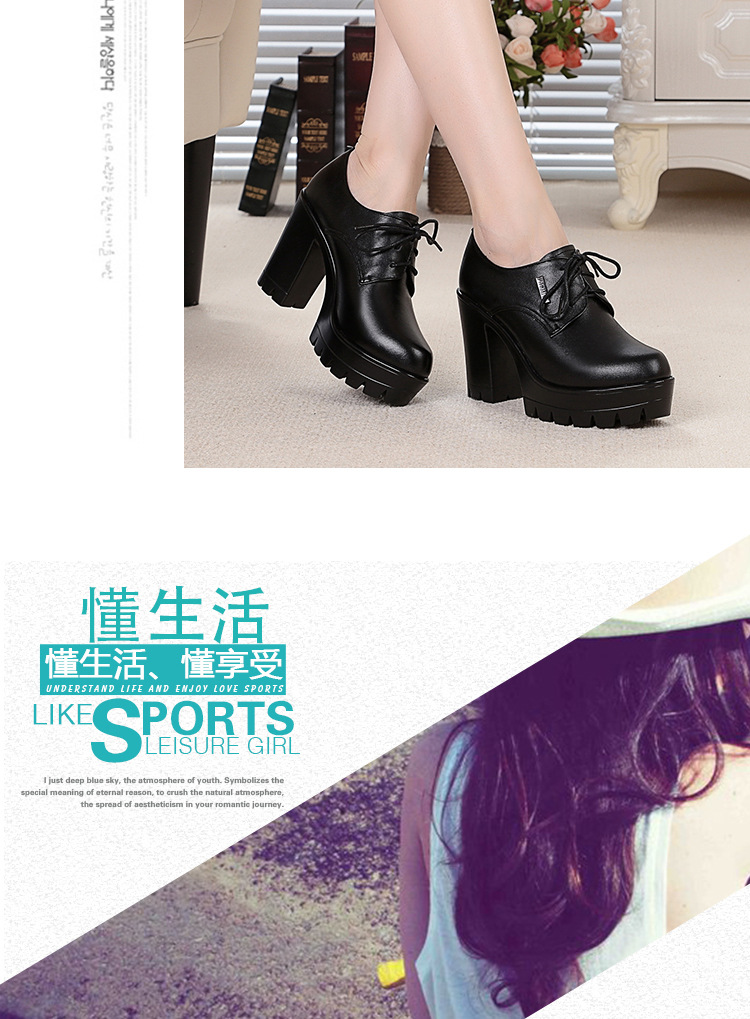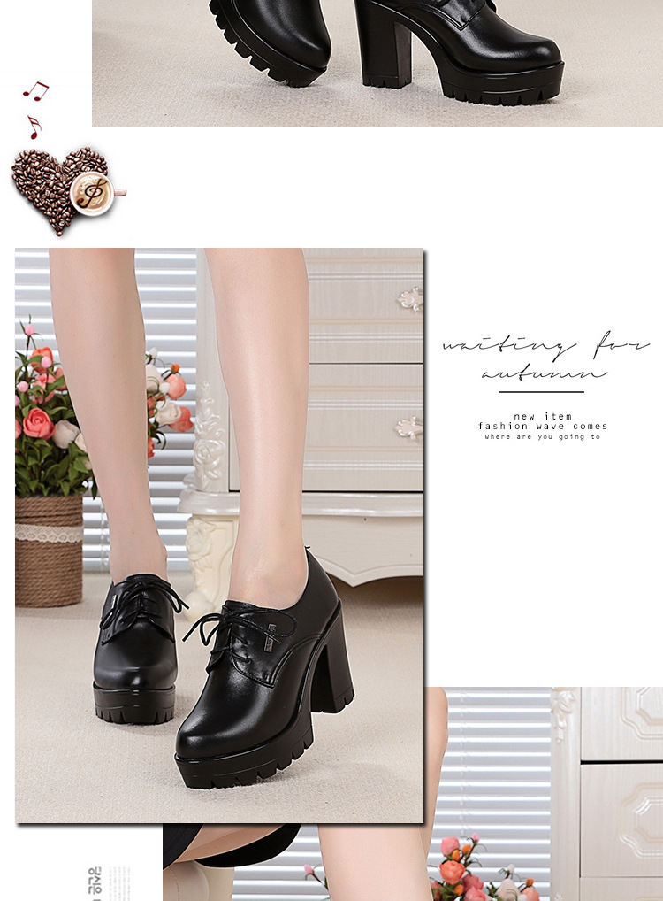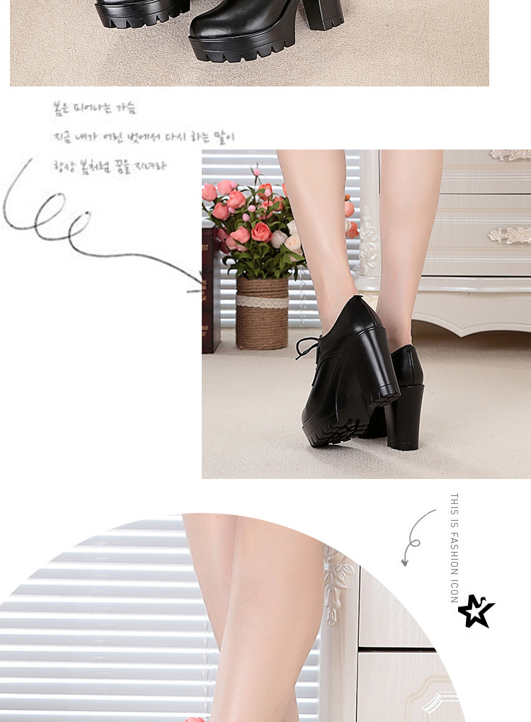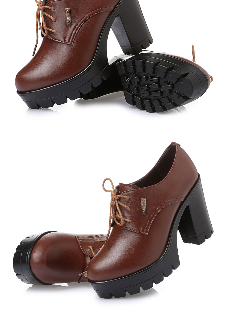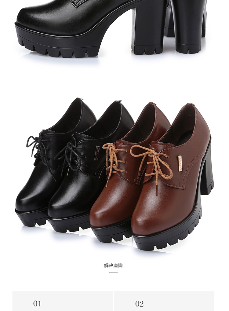 KQ-SRZ805真皮23春季新款女单皮鞋高跟粗跟防水台短靴英伦风潮鞋