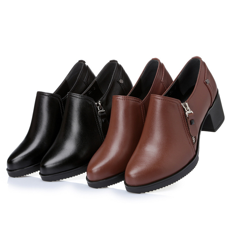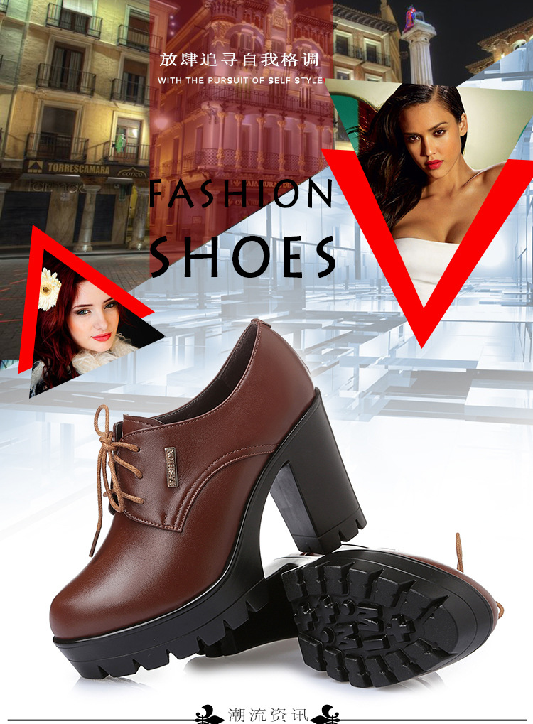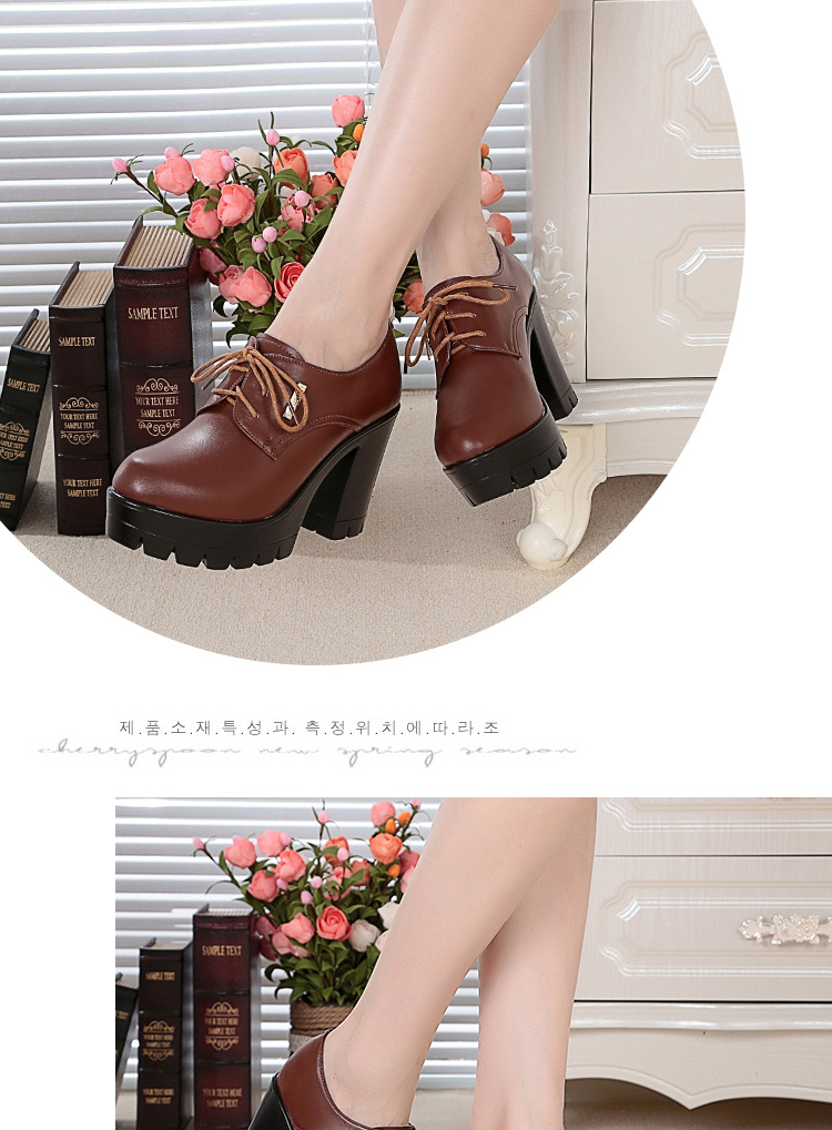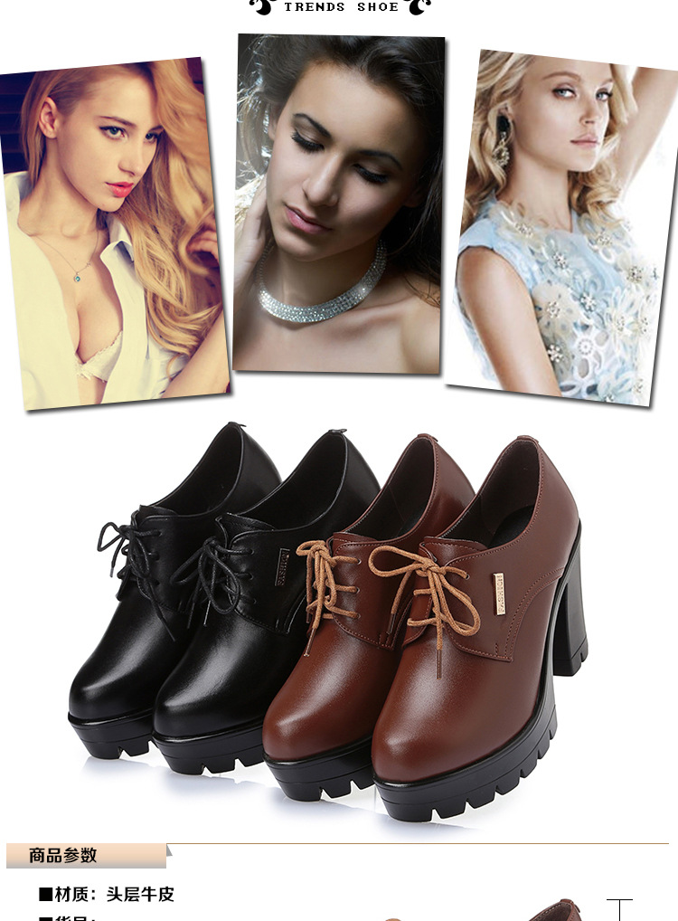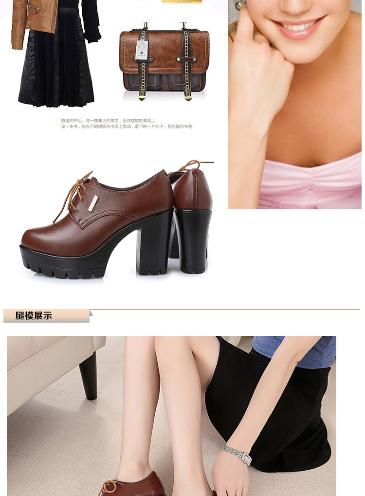 KQ-SRZ805真皮23春季新款女单皮鞋高跟粗跟防水台短靴英伦风潮鞋