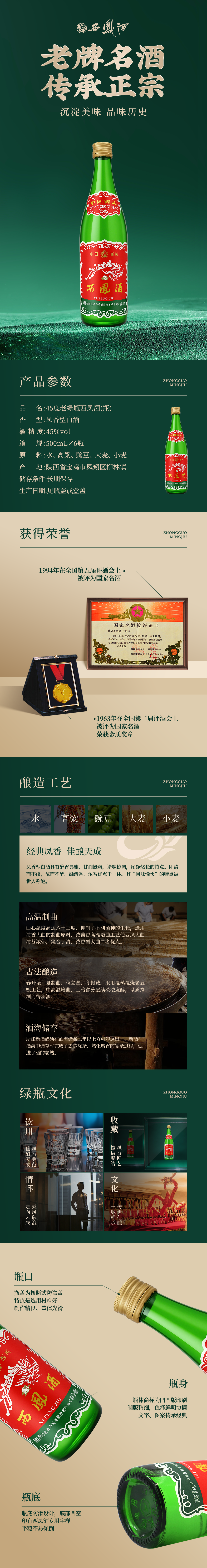 【酒厂直营】45度老绿瓶西凤酒(瓶)(陕西)(矮脖绿瓶,1989金奖)