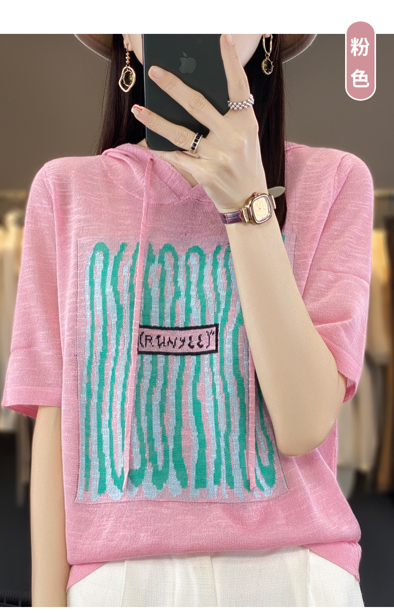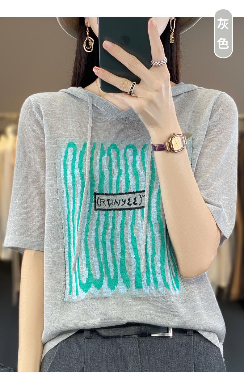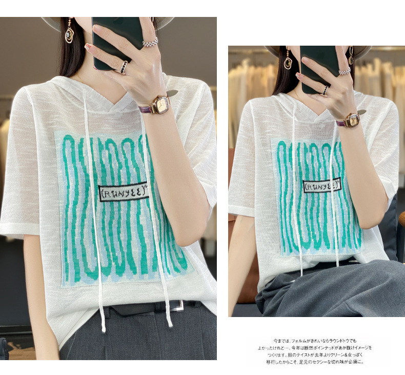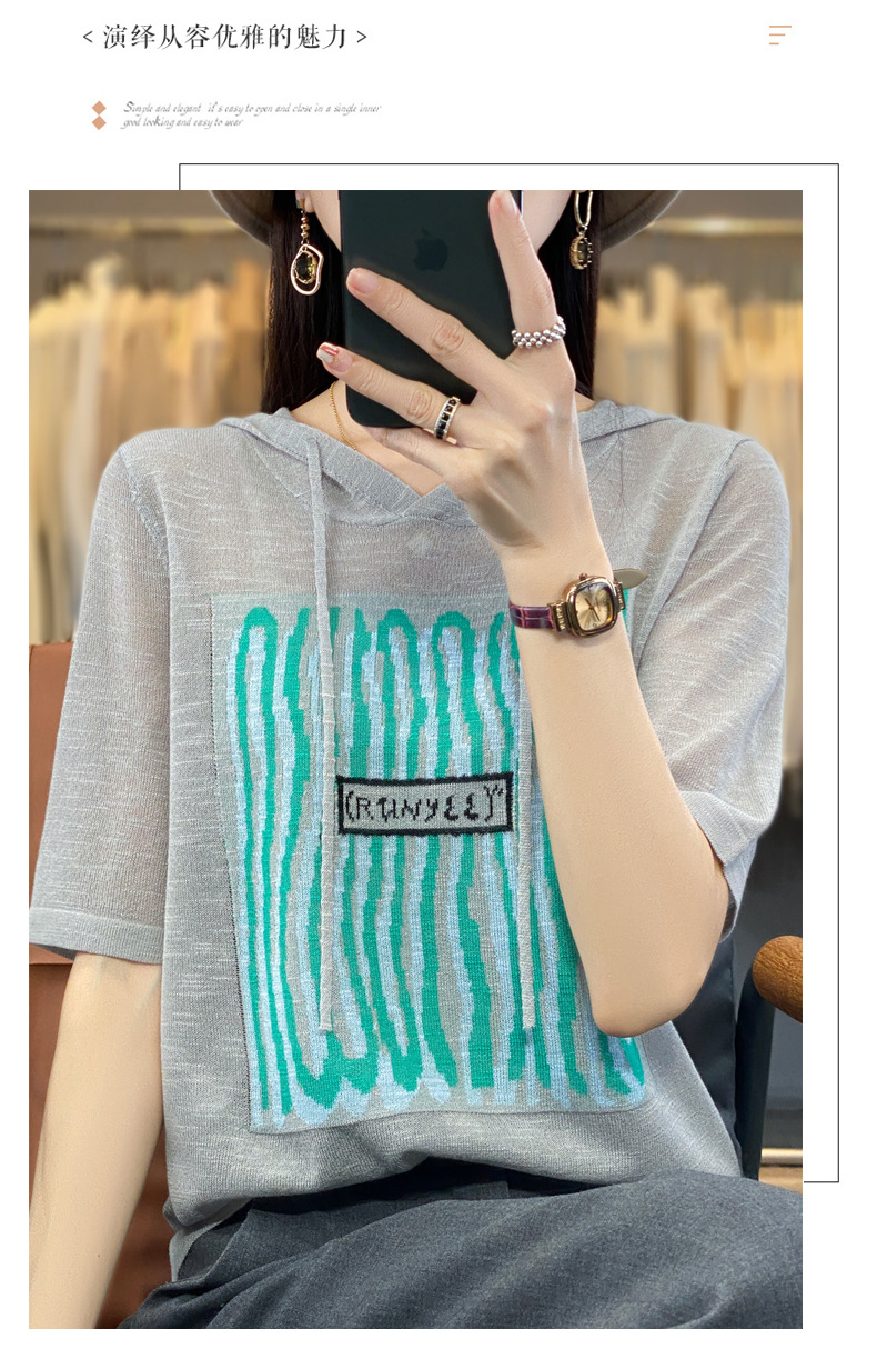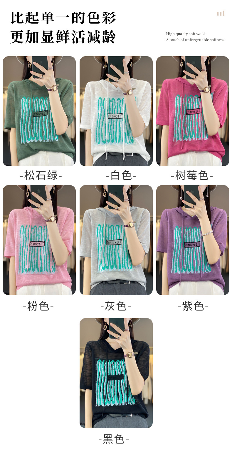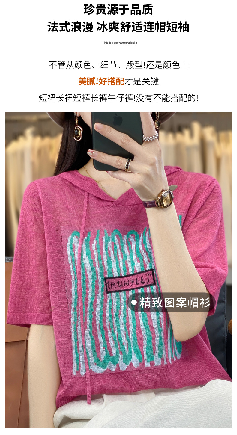 QHJY-JYA02361冰丝透气短袖t恤女打底衫连帽衫夏装新款女外搭薄款上衣针织衫ins