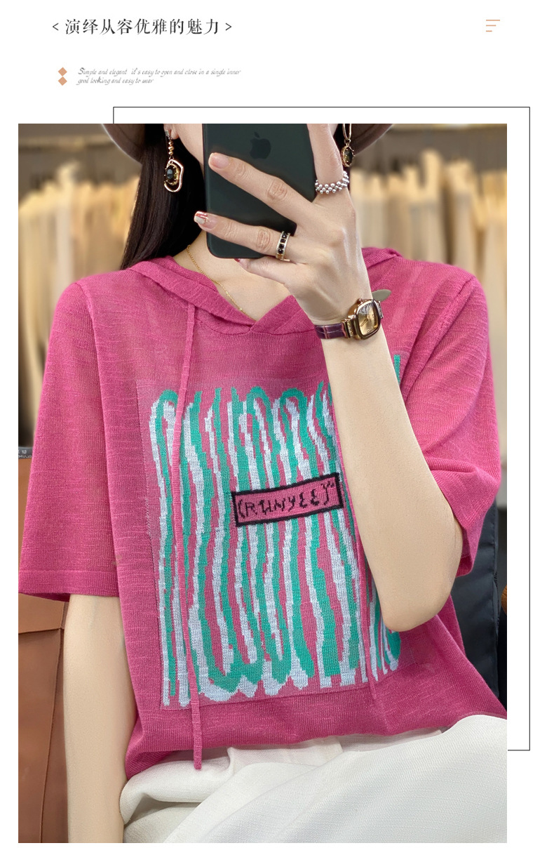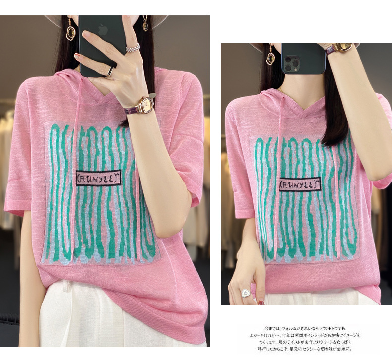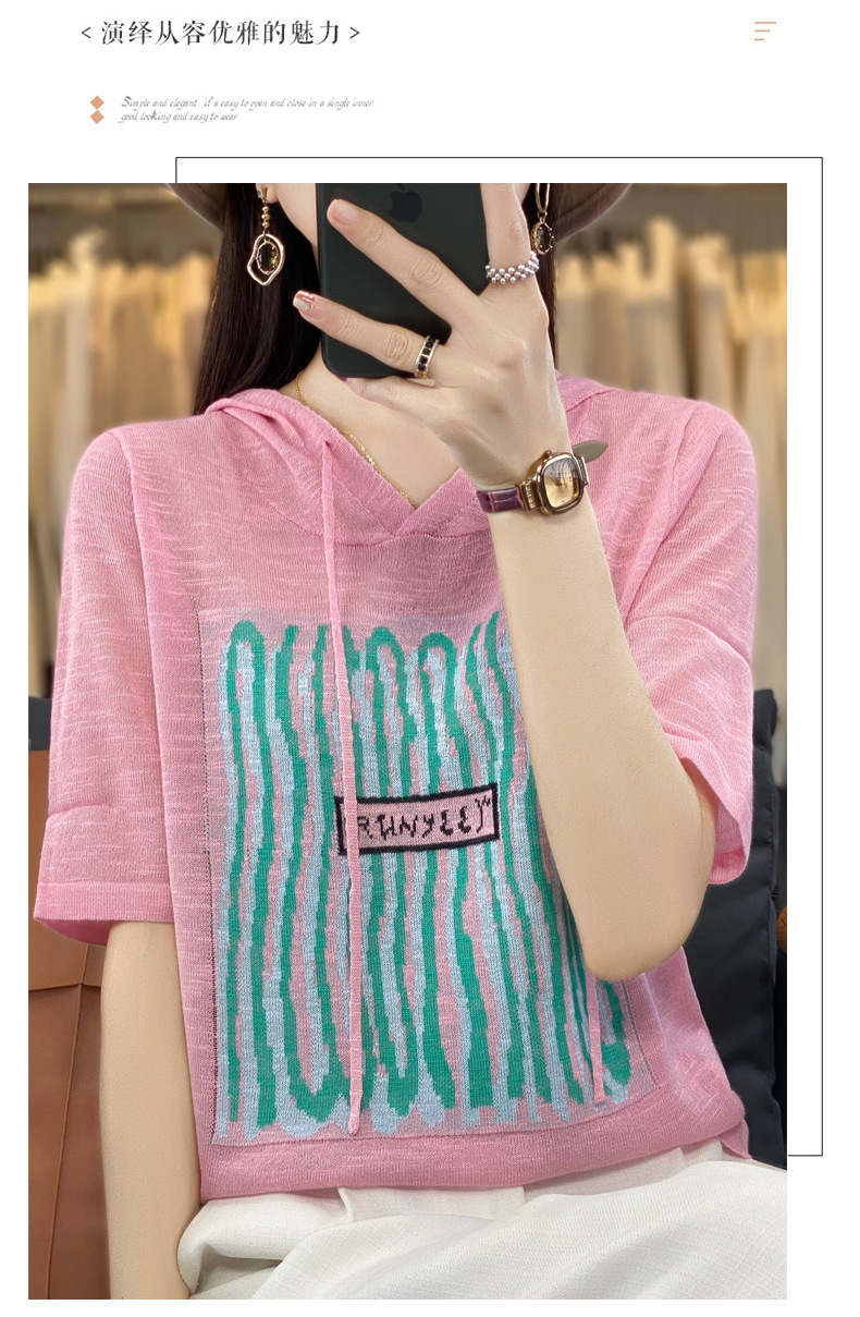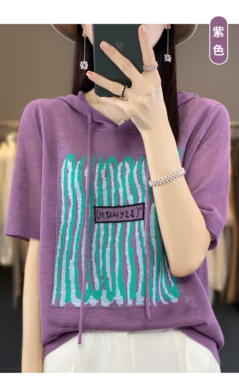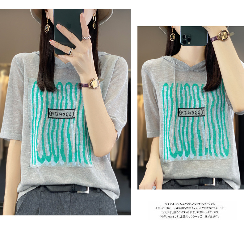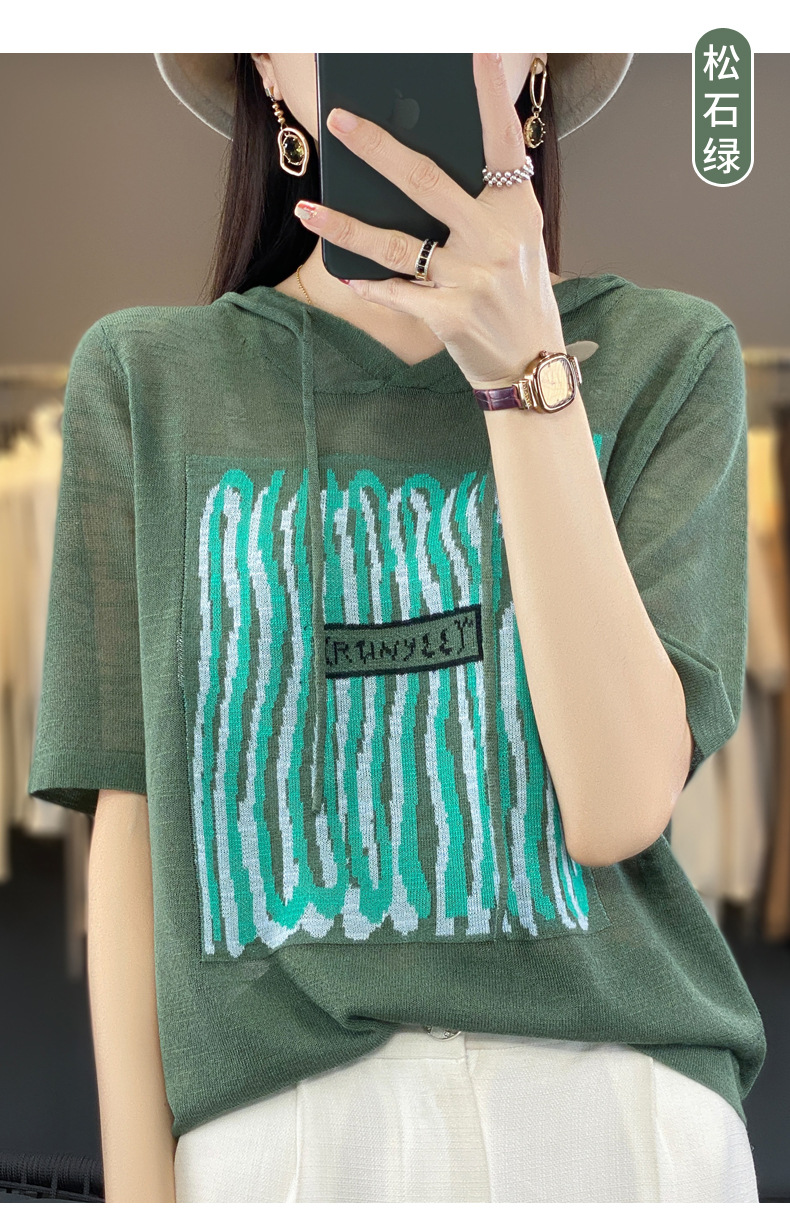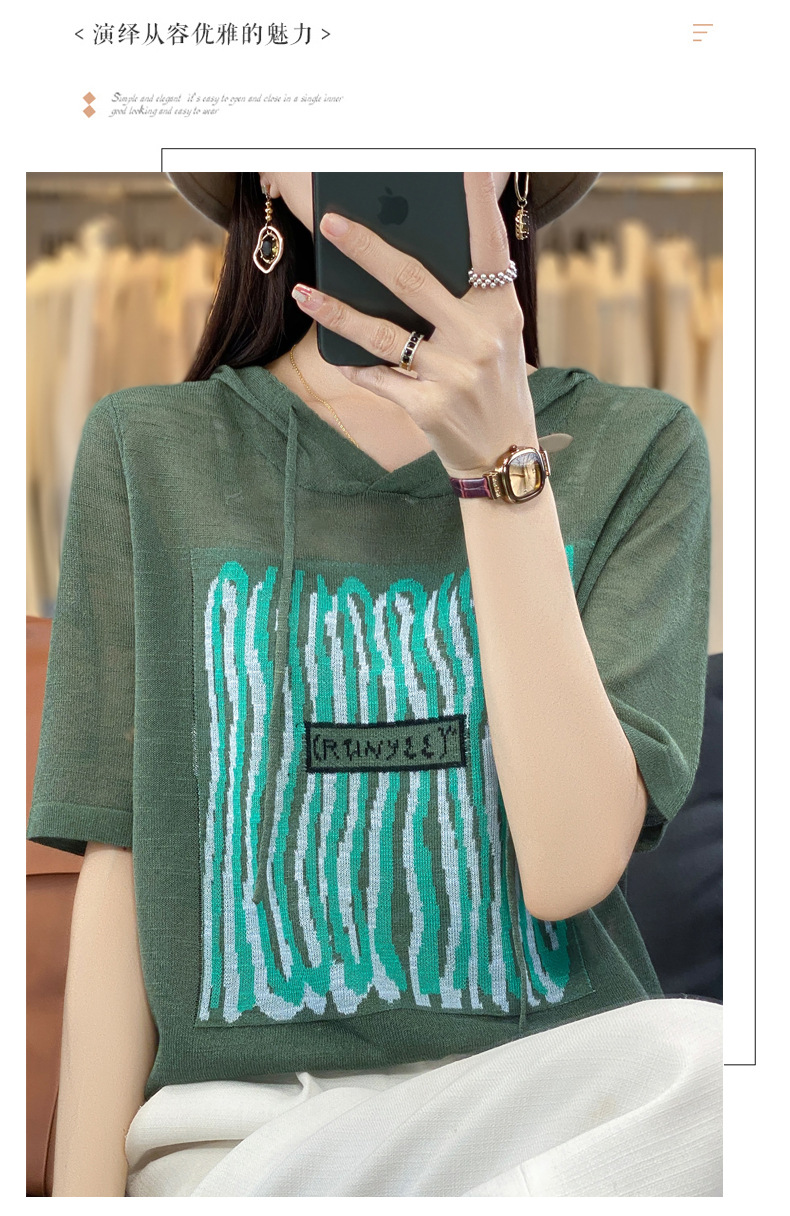 QHJY-JYA02361冰丝透气短袖t恤女打底衫连帽衫夏装新款女外搭薄款上衣针织衫ins