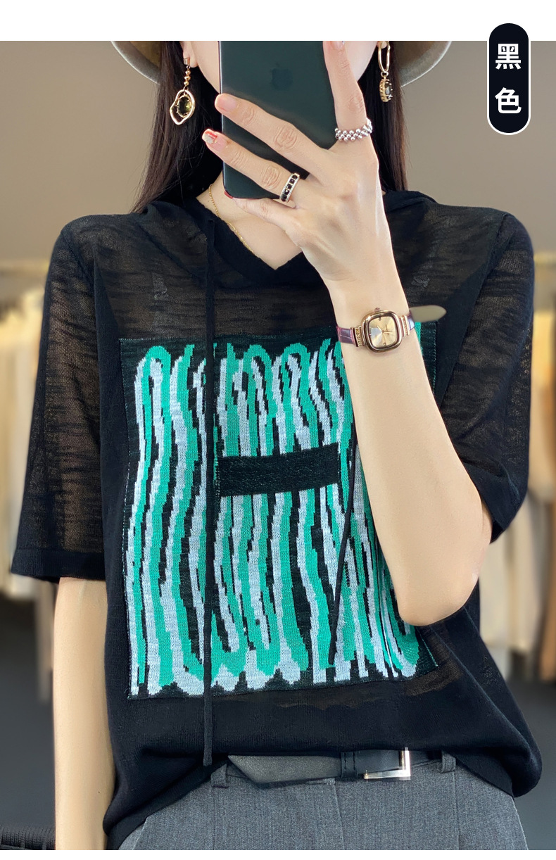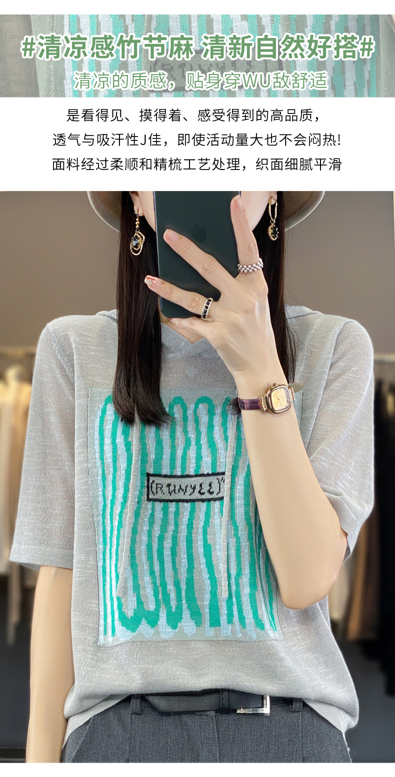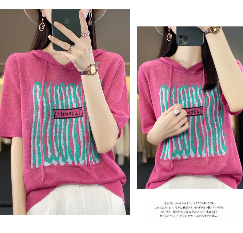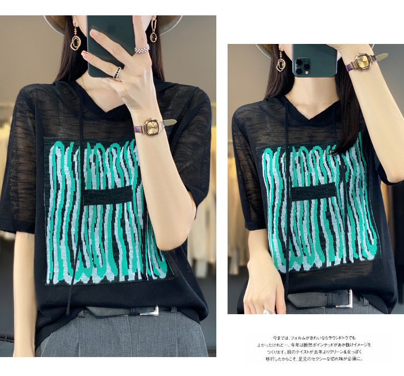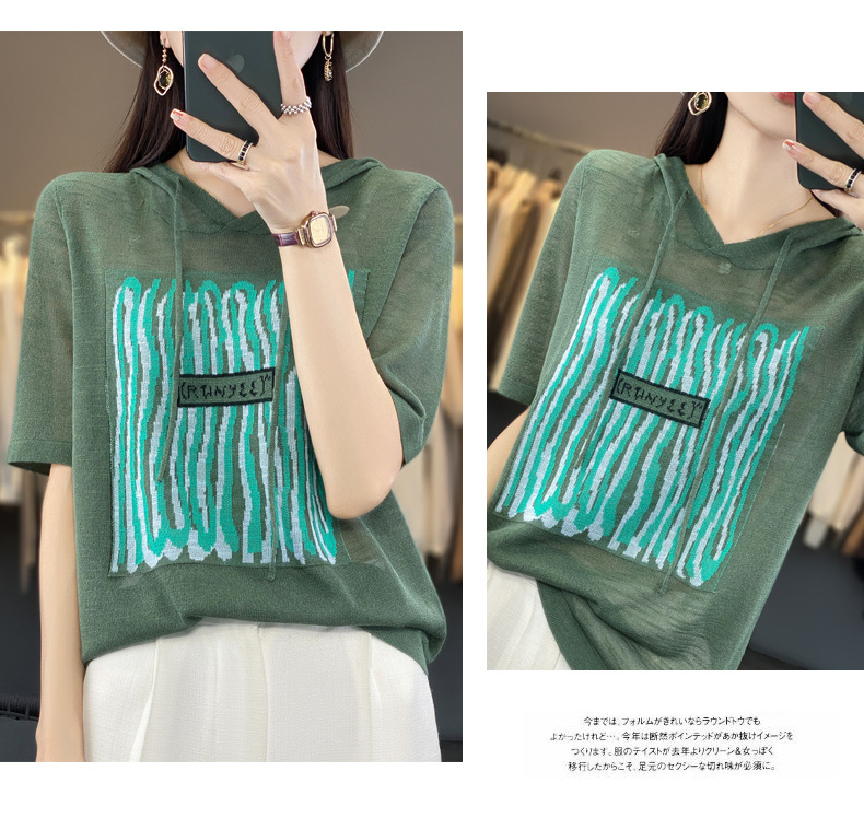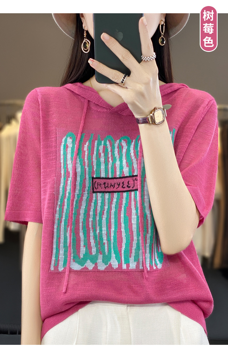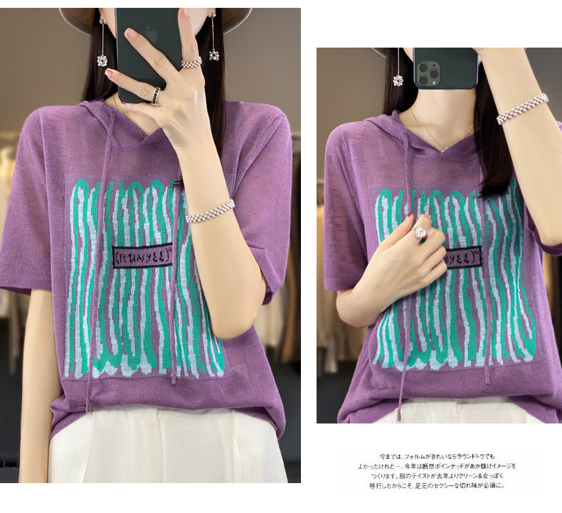 QHJY-JYA02361冰丝透气短袖t恤女打底衫连帽衫夏装新款女外搭薄款上衣针织衫ins