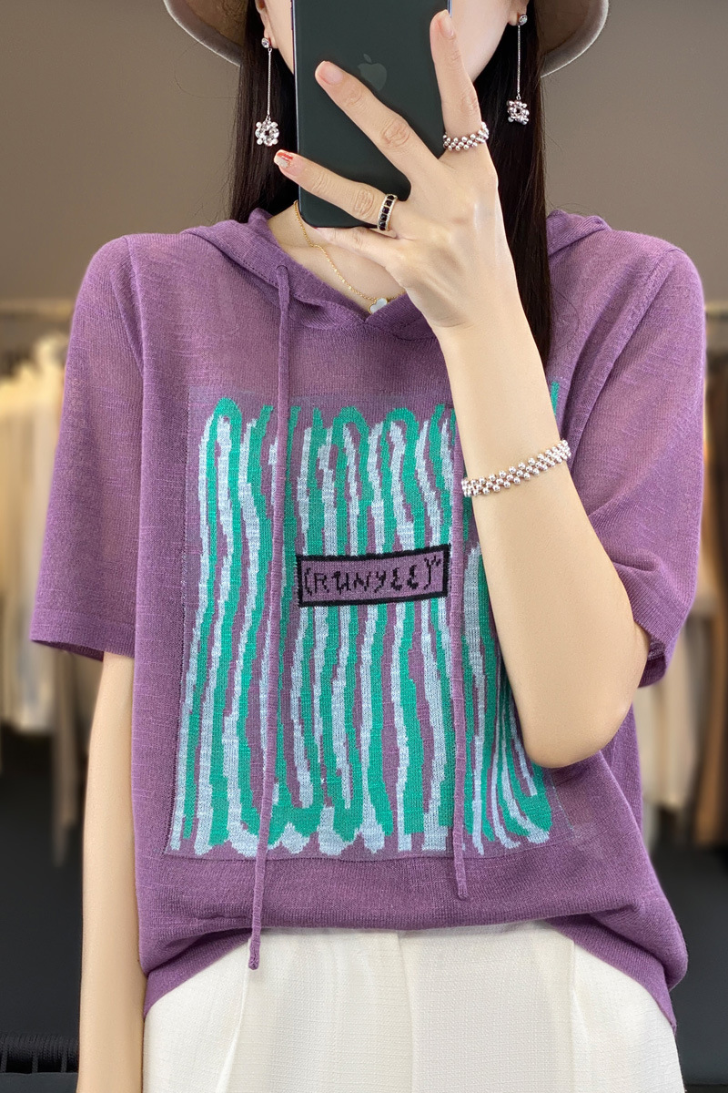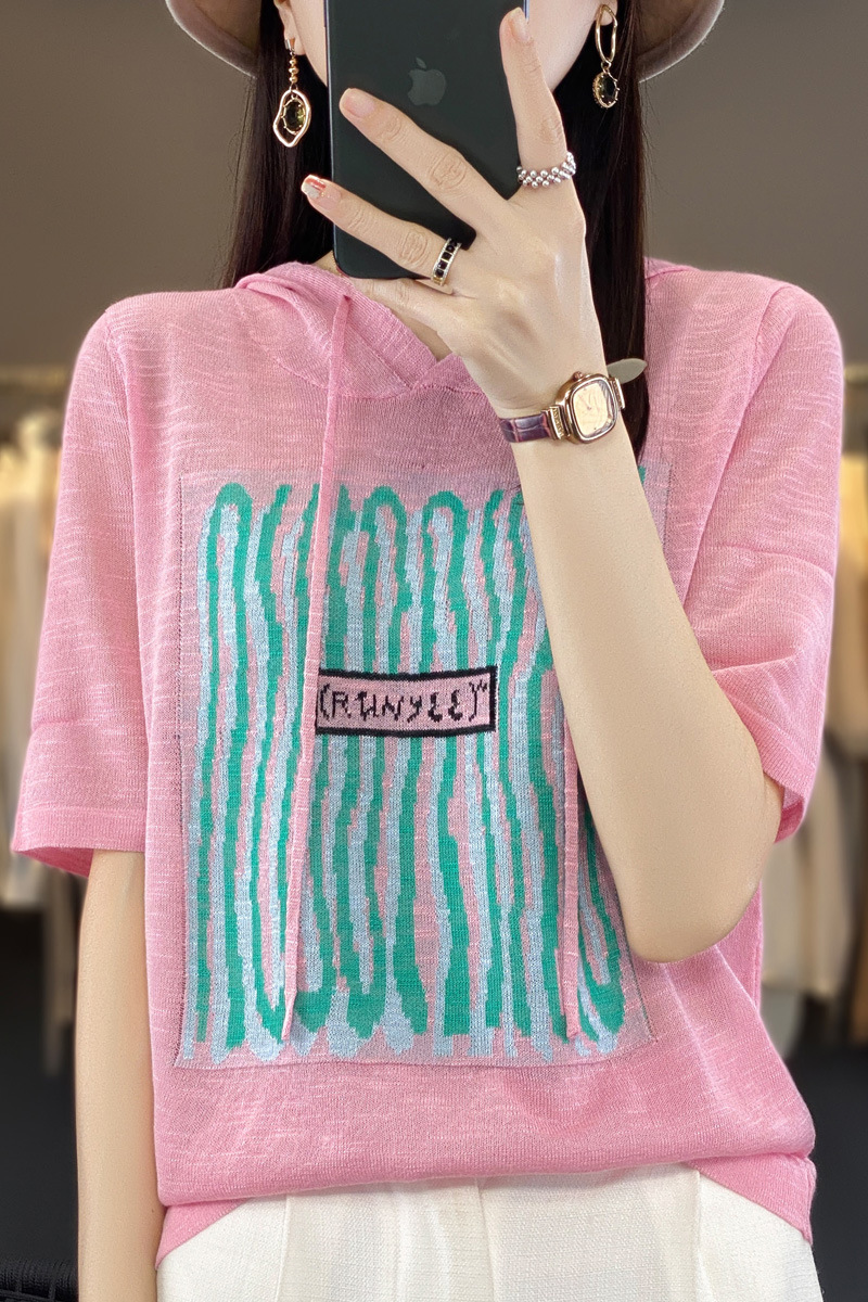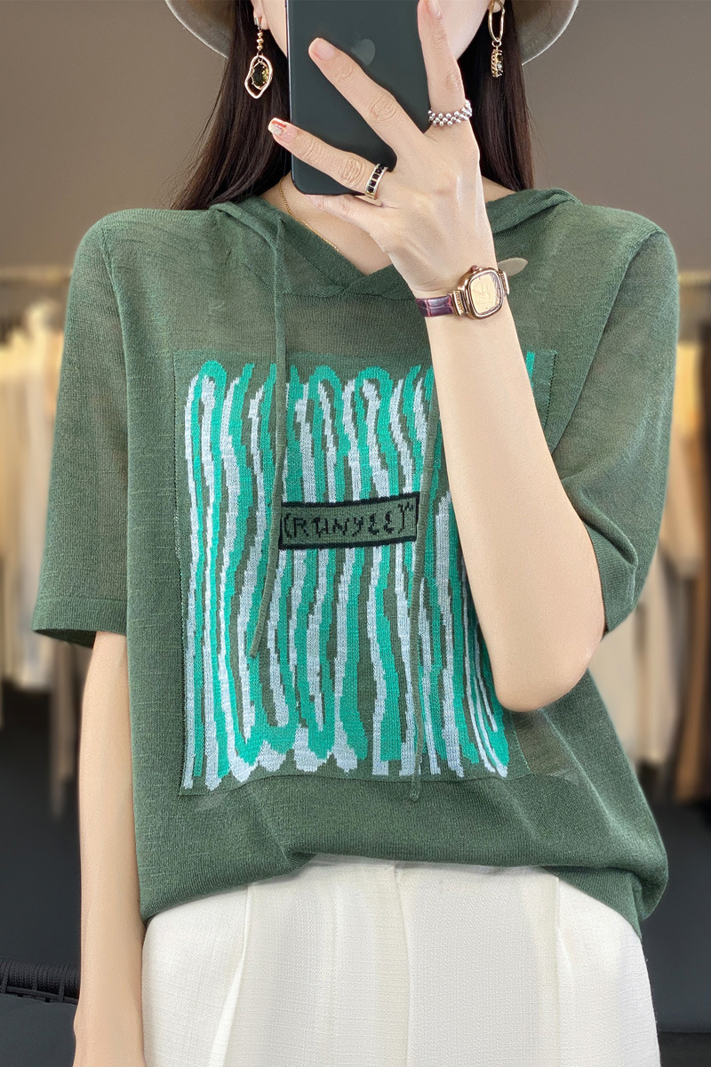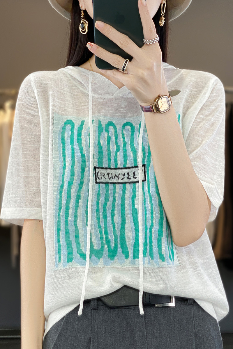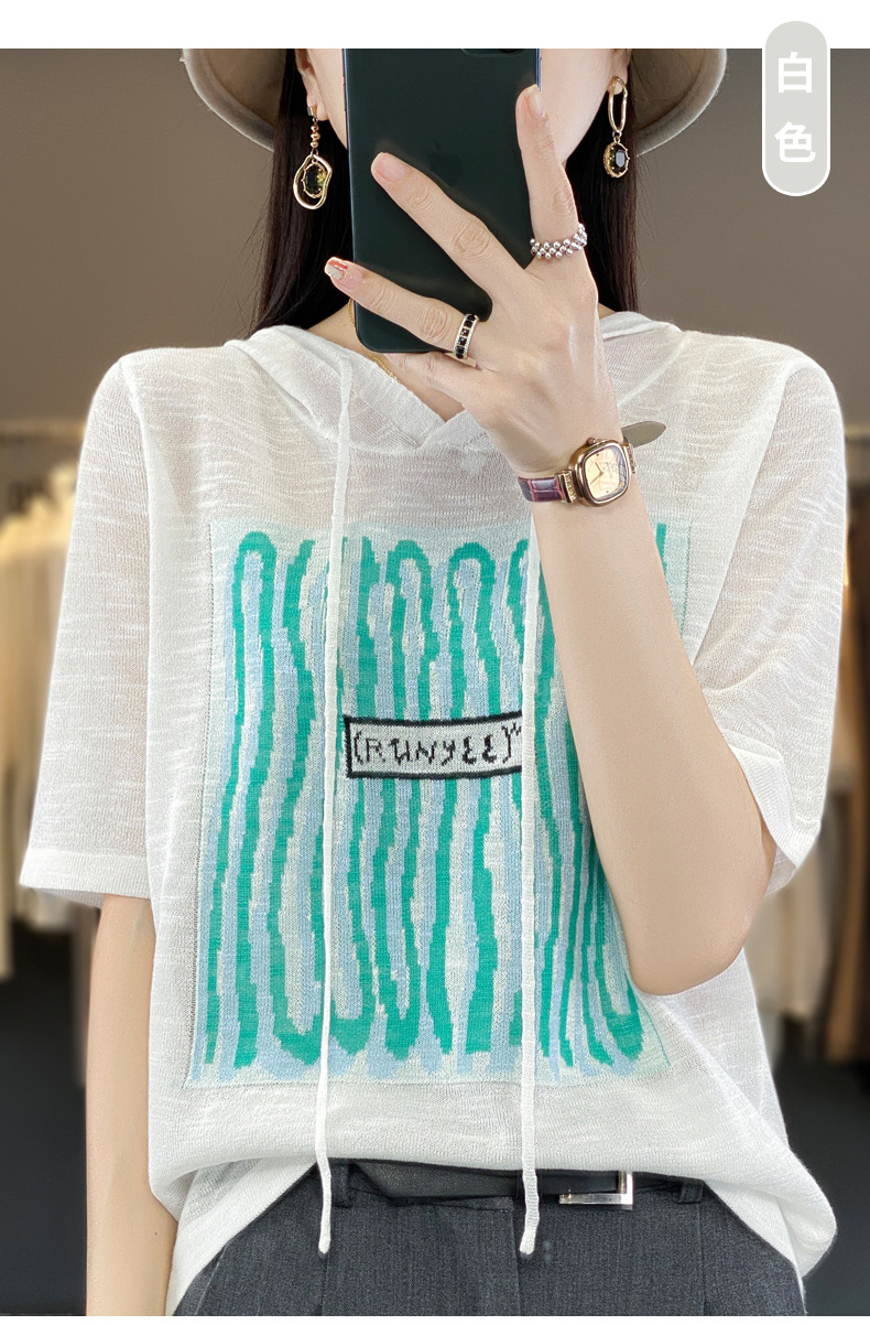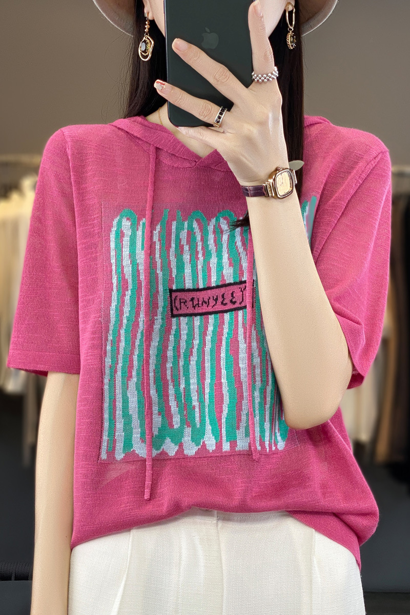 QHJY-JYA02361冰丝透气短袖t恤女打底衫连帽衫夏装新款女外搭薄款上衣针织衫ins