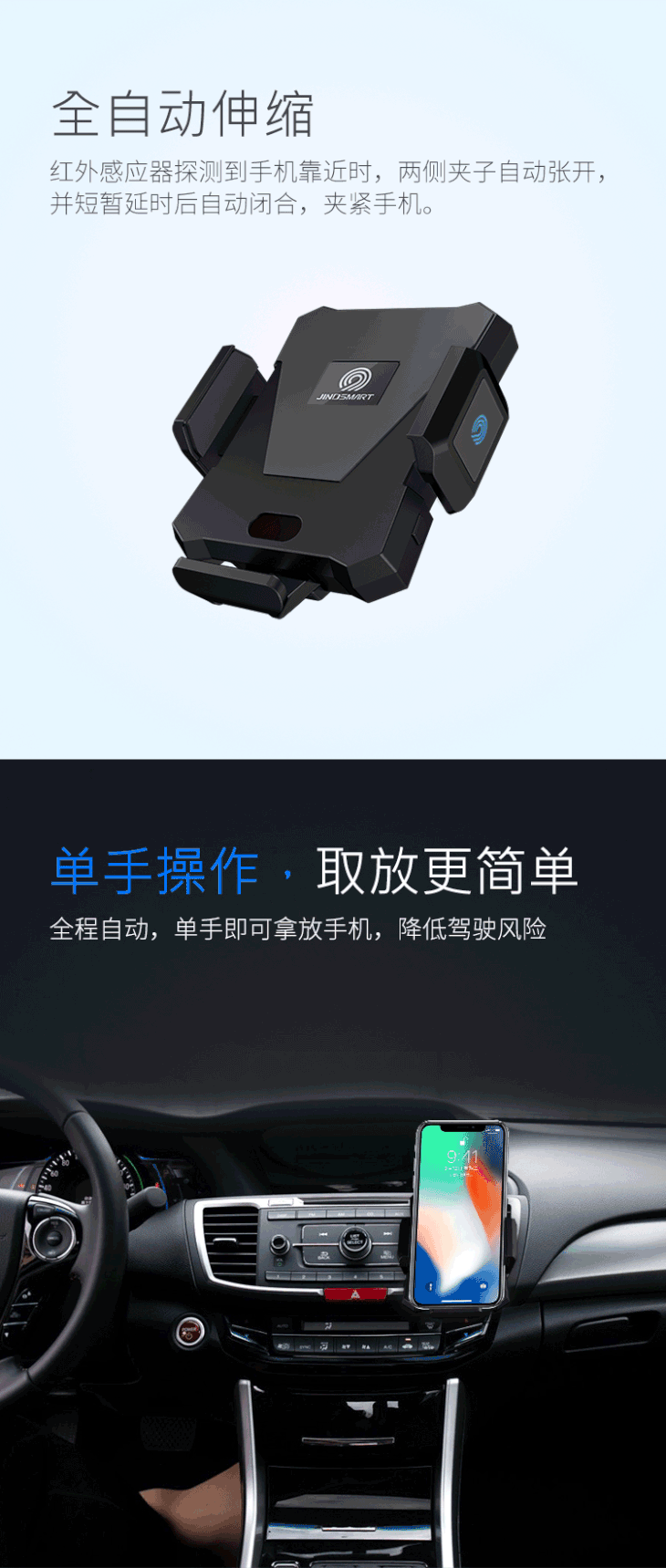 【抖音爆款 】小魔夹智能车载手机支架 红外感应自动开合夹子 无线充电 网红智能车联网手机架