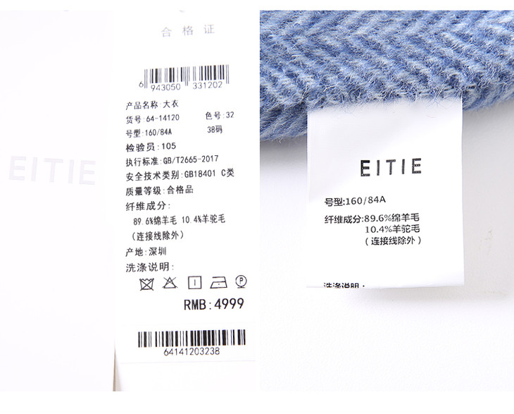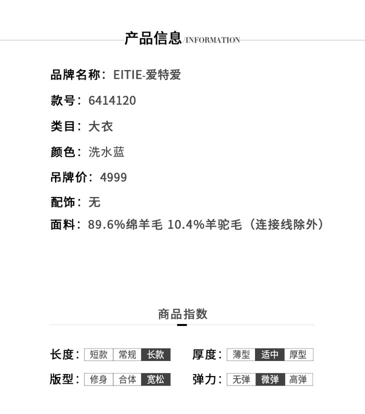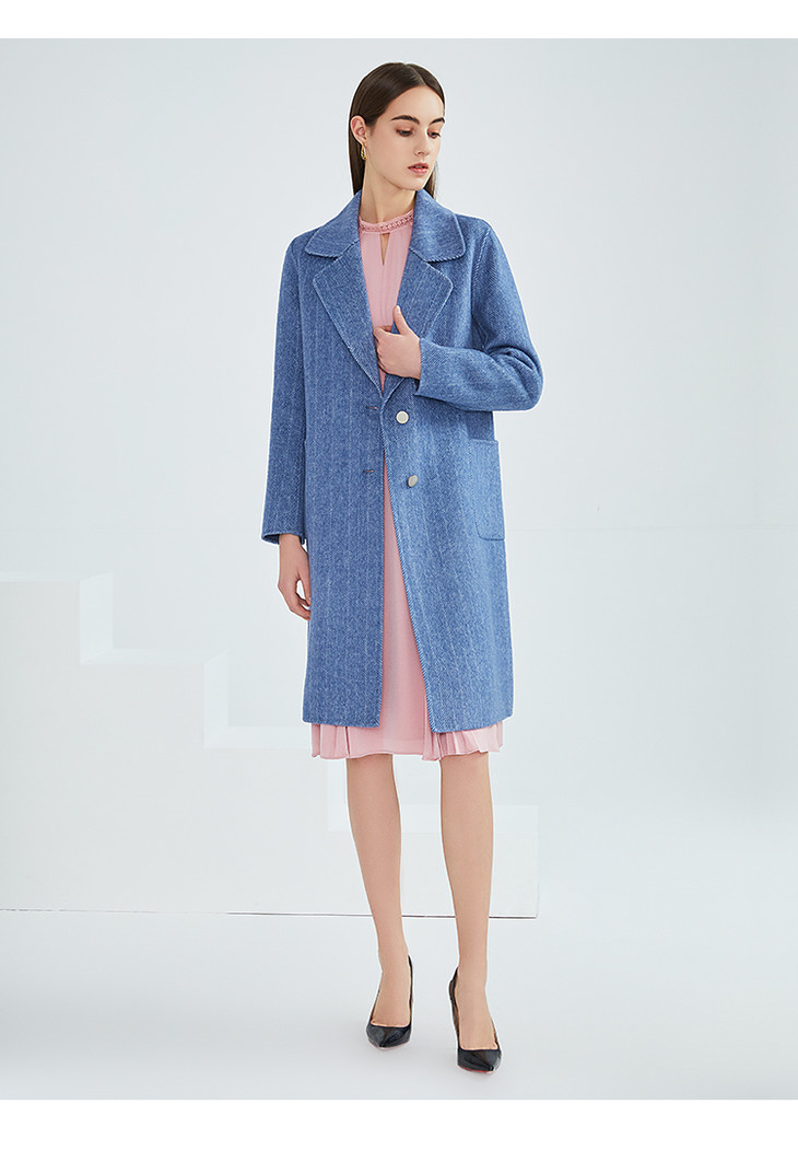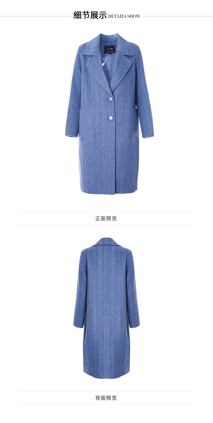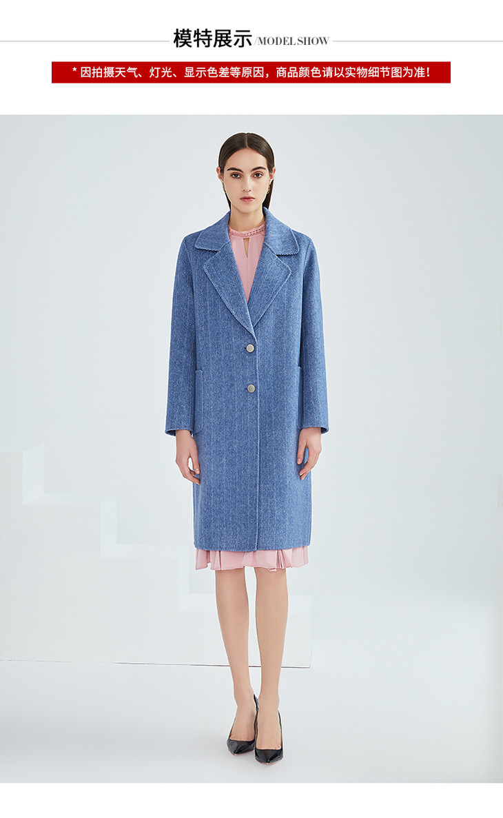 EITIE爱特爱女装冬季新款经典气质翻领直筒羊毛呢大衣女外套6414120
