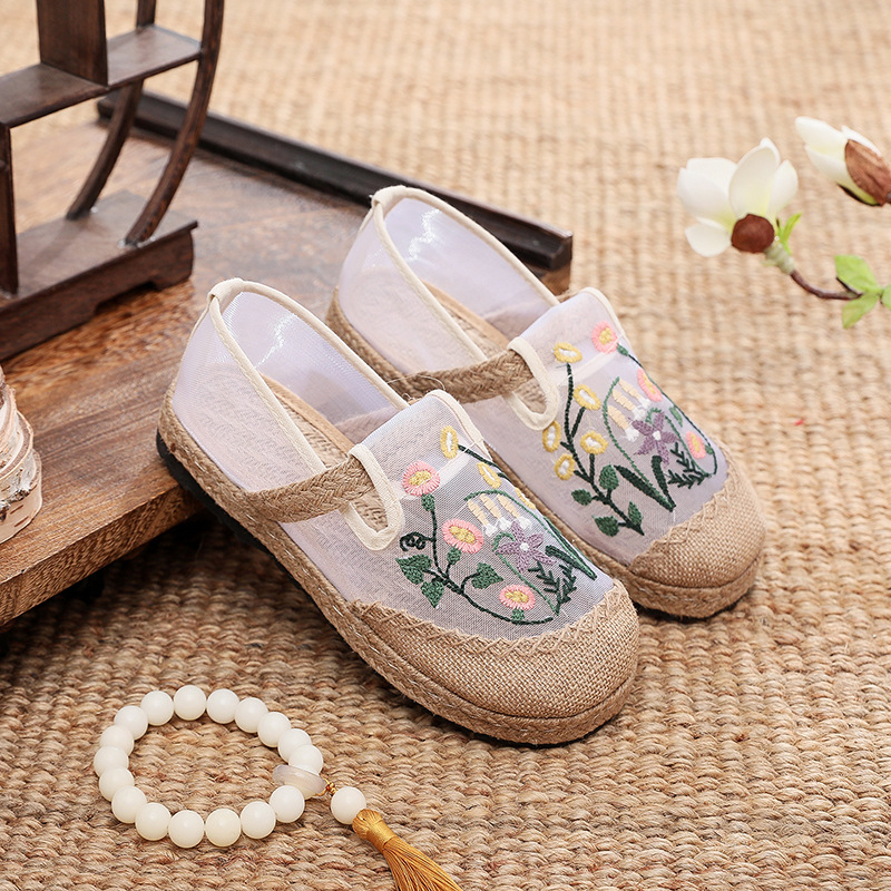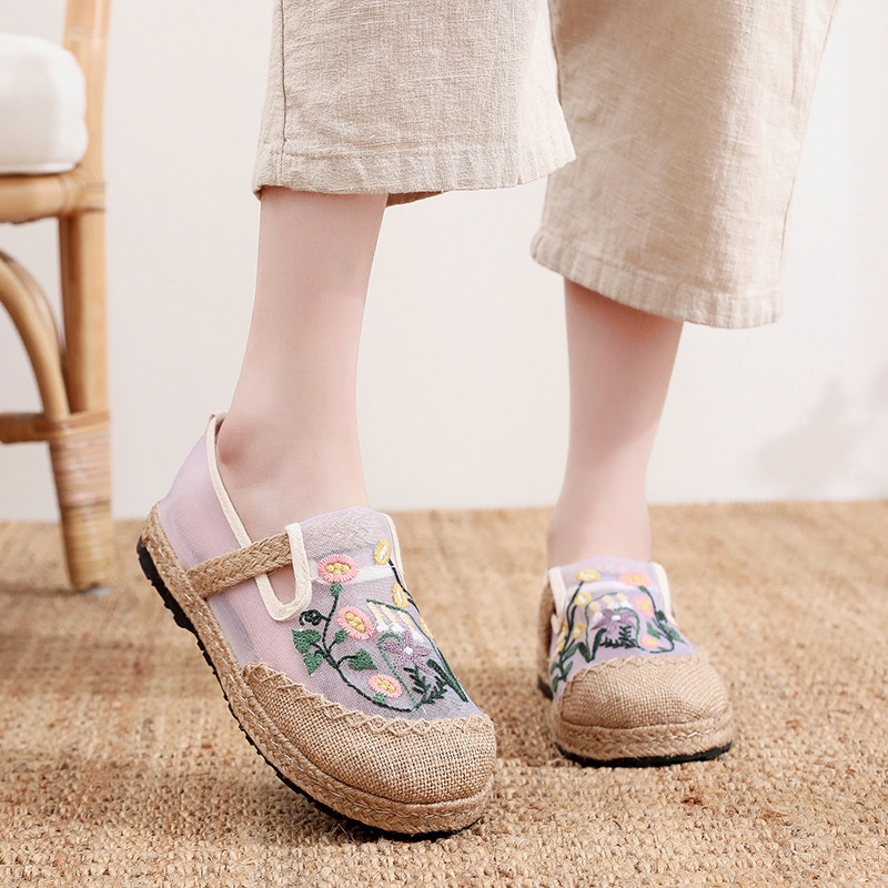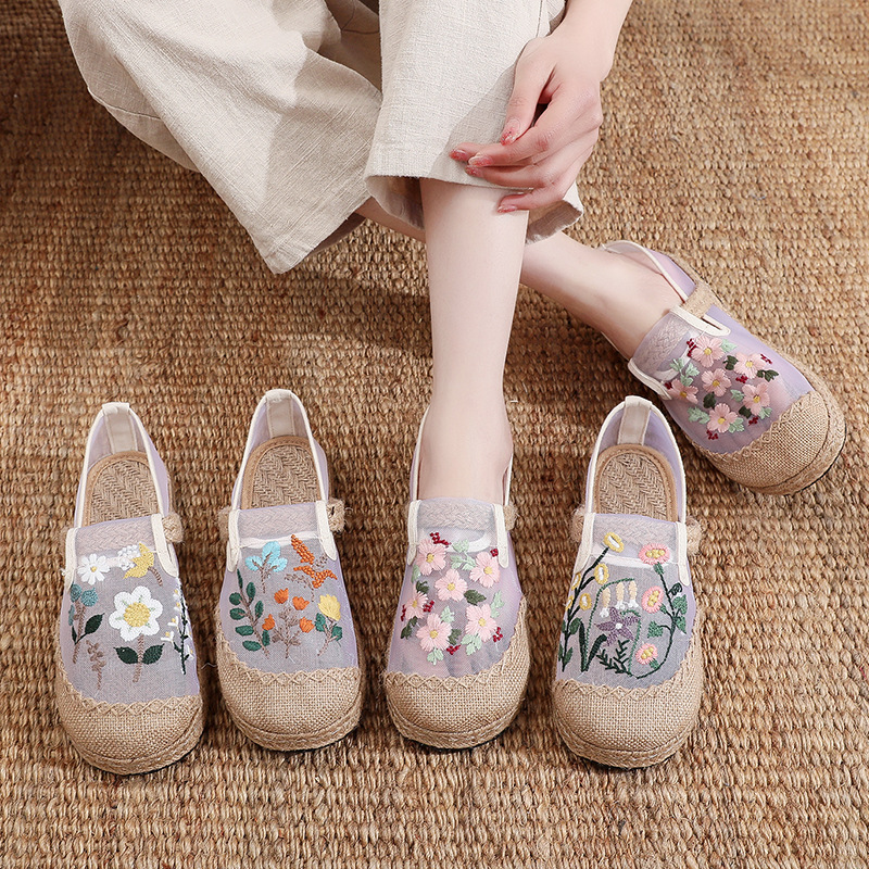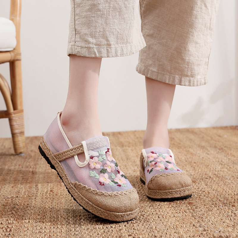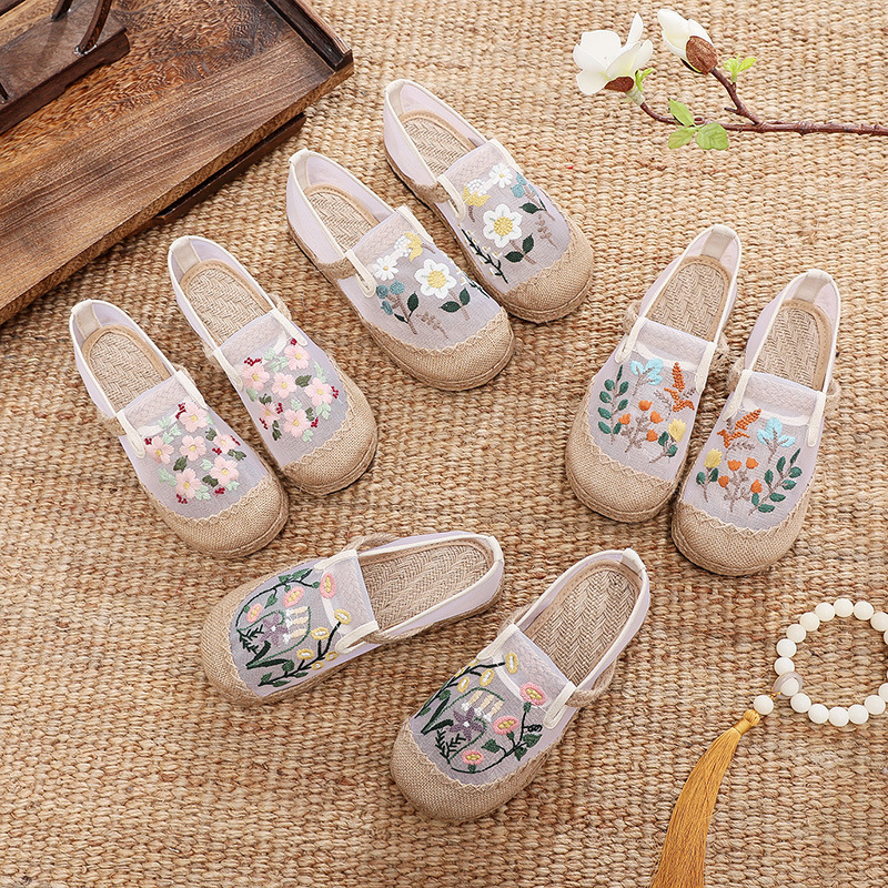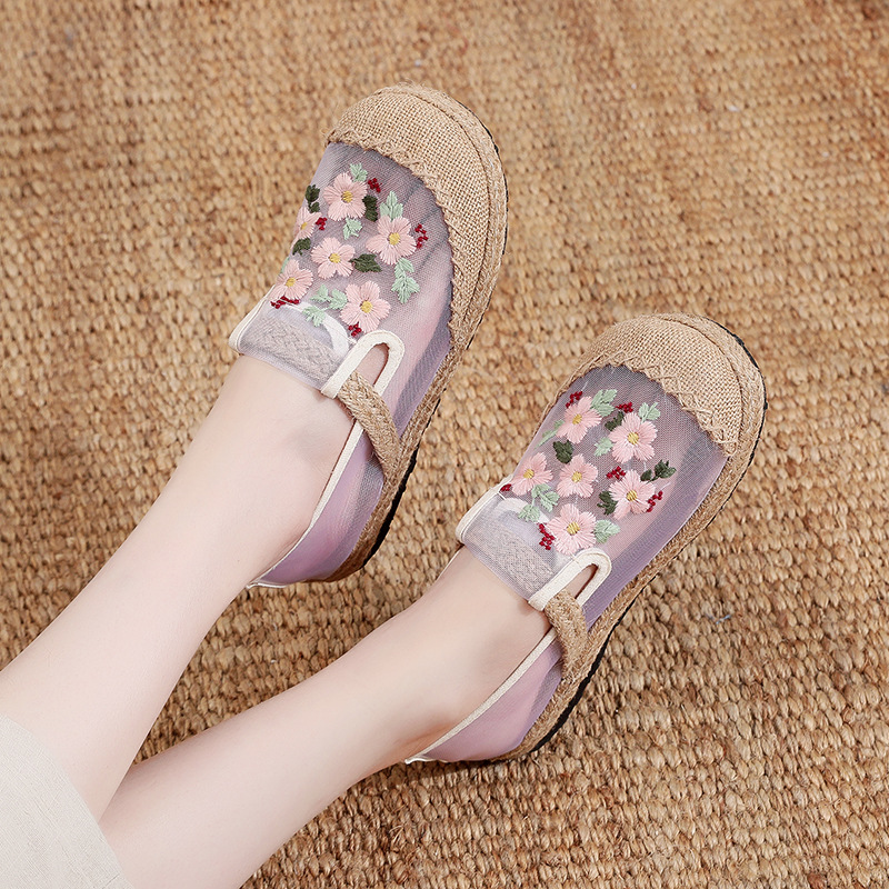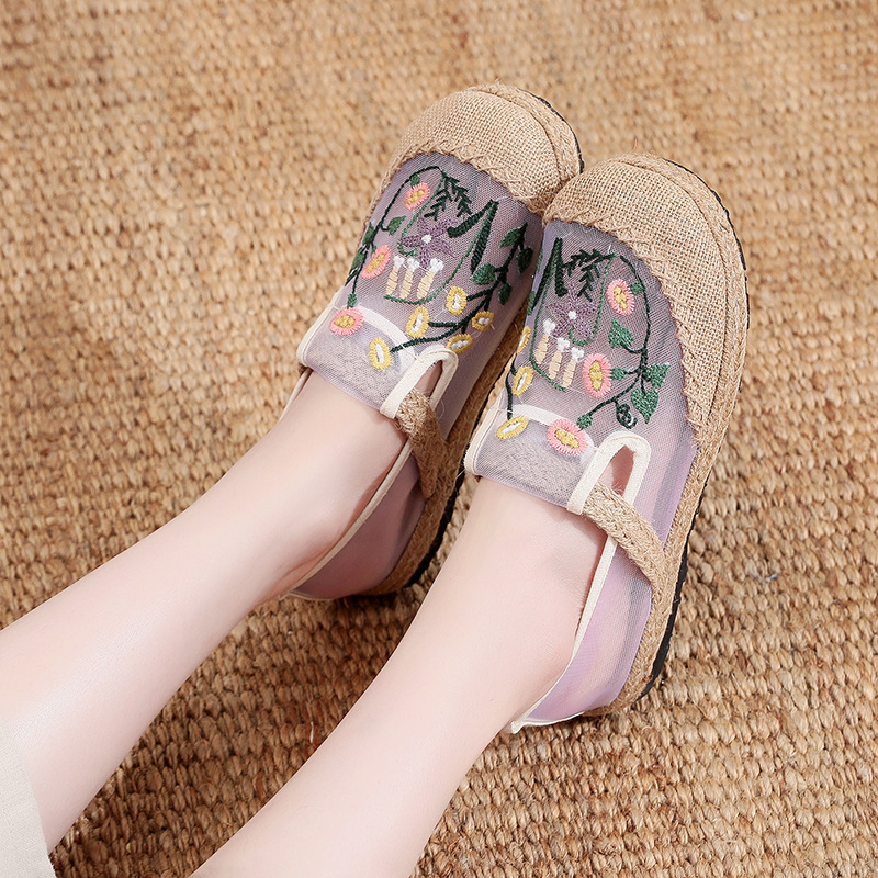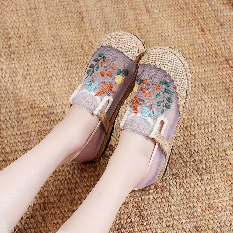 夏新款民族风,绣花布鞋透气网鞋W-215