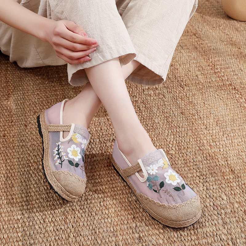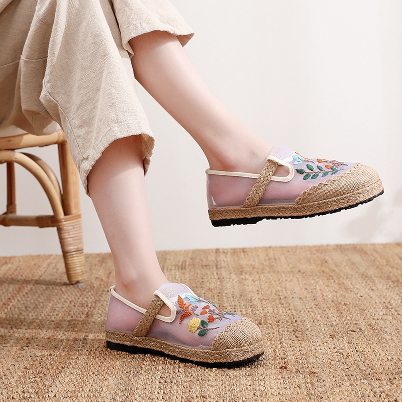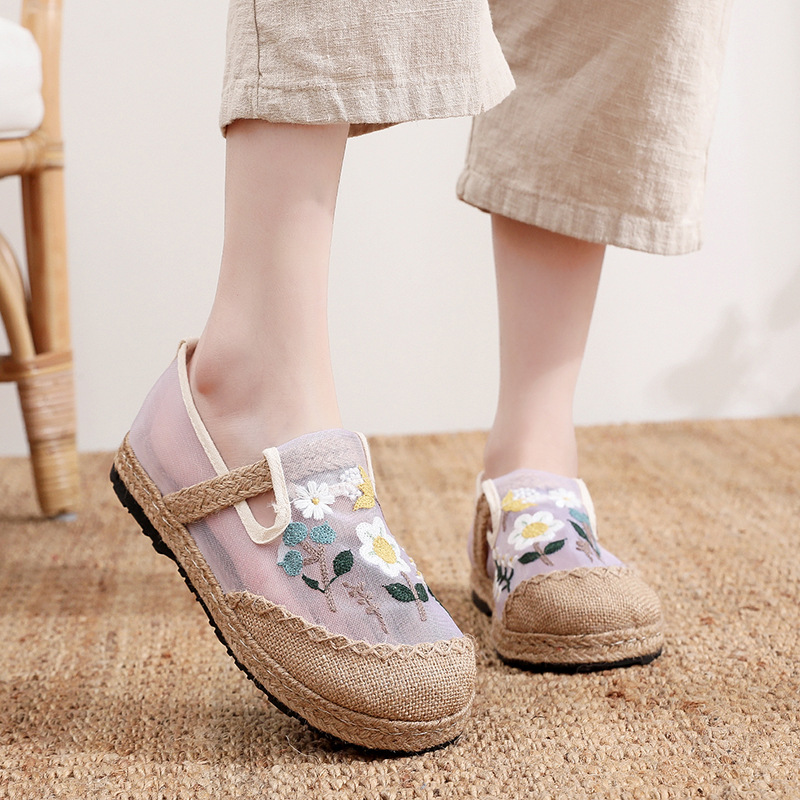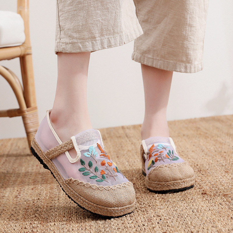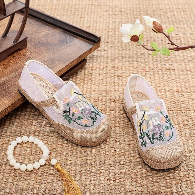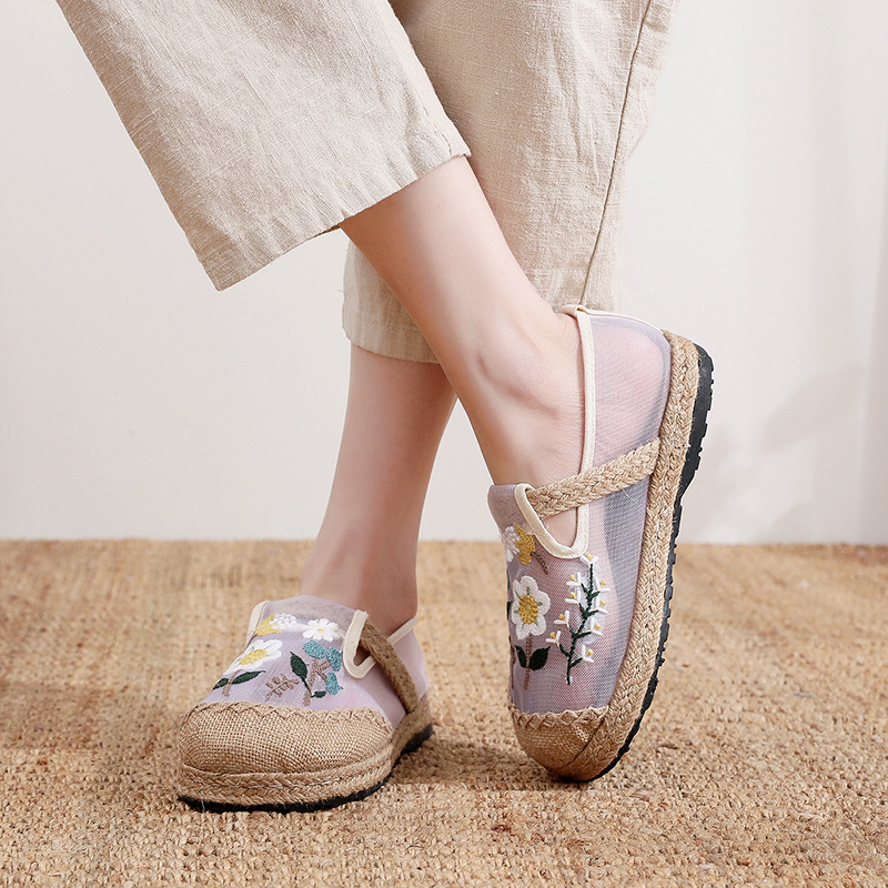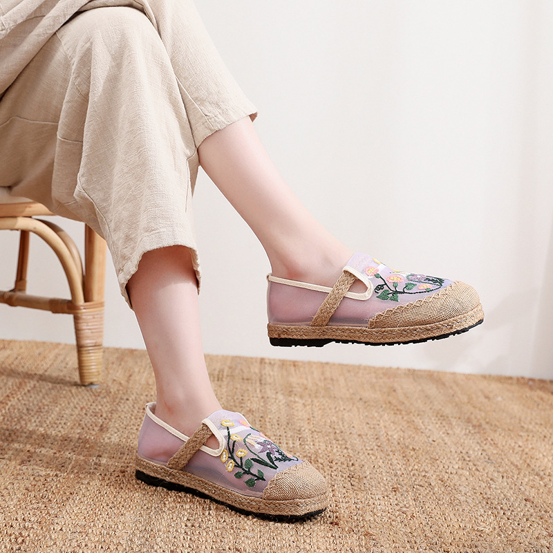 夏新款民族风,绣花布鞋透气网鞋W-215