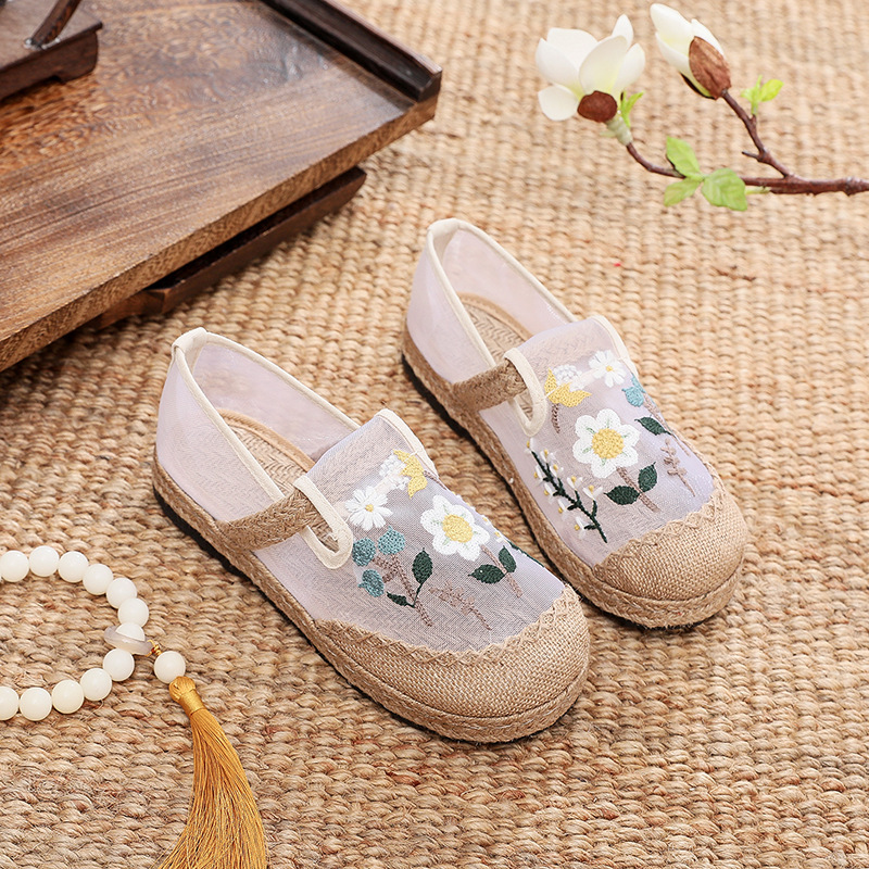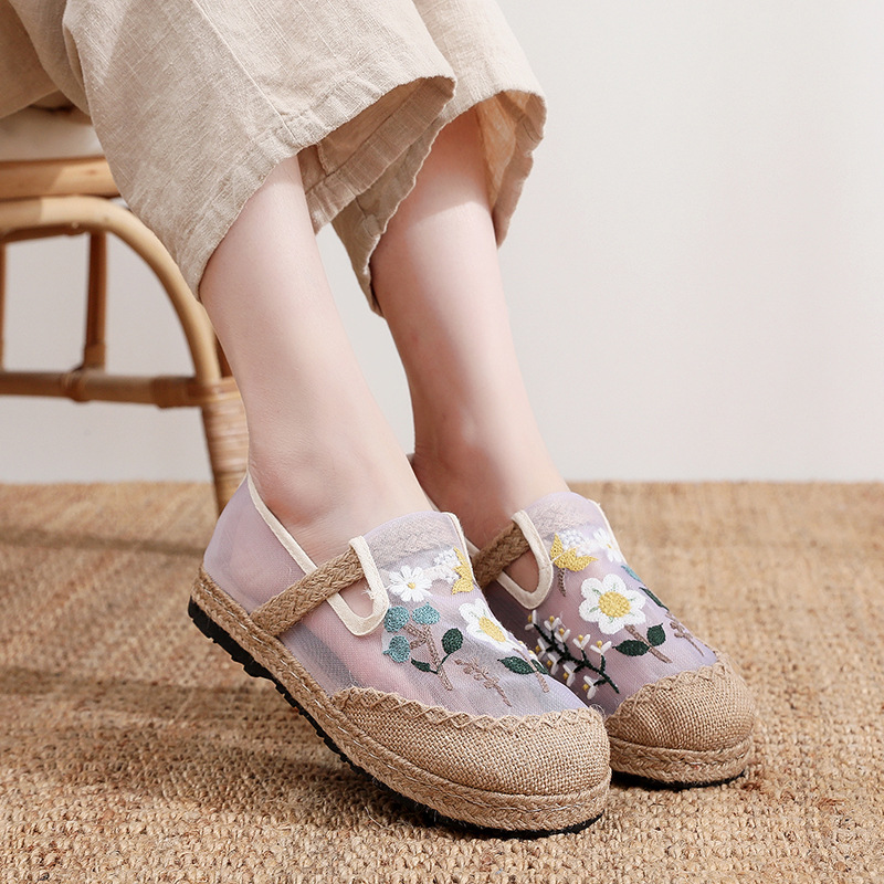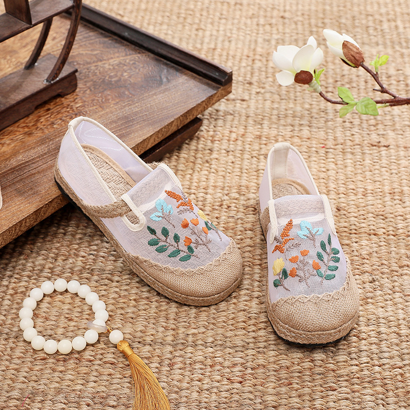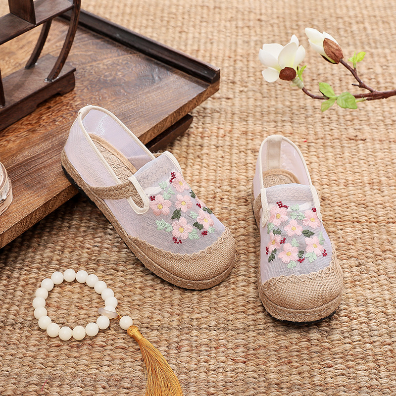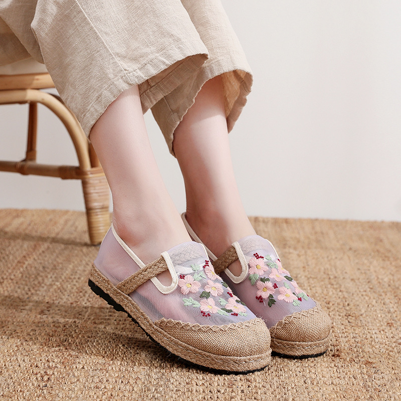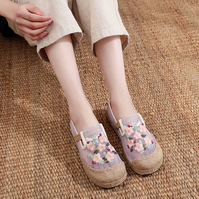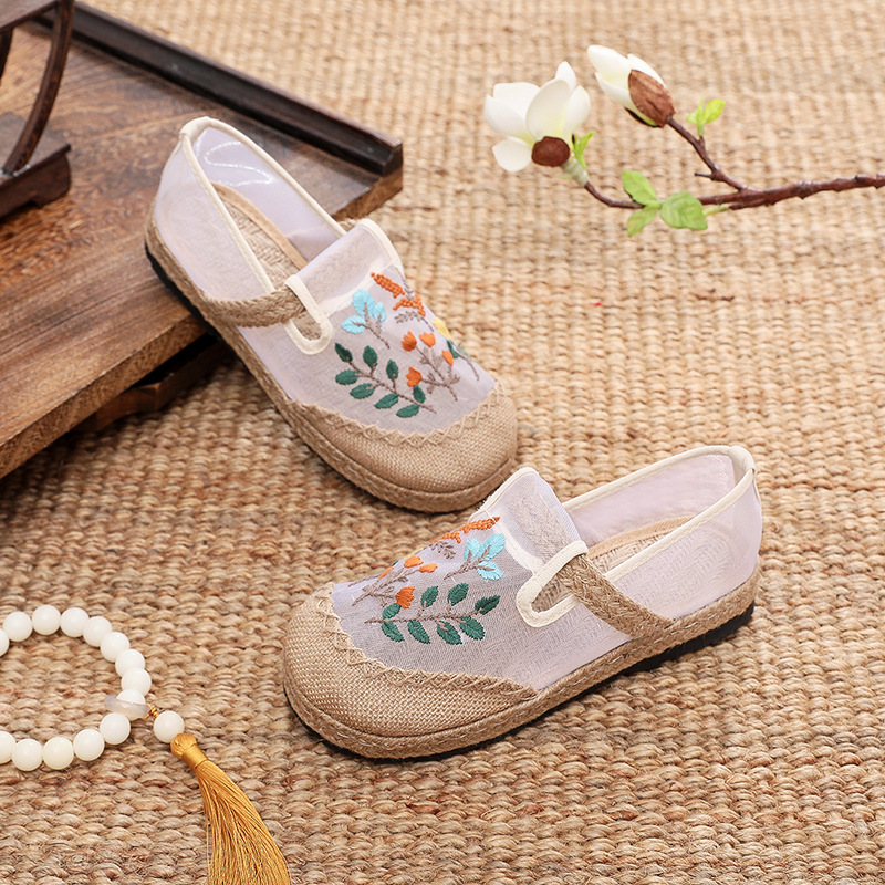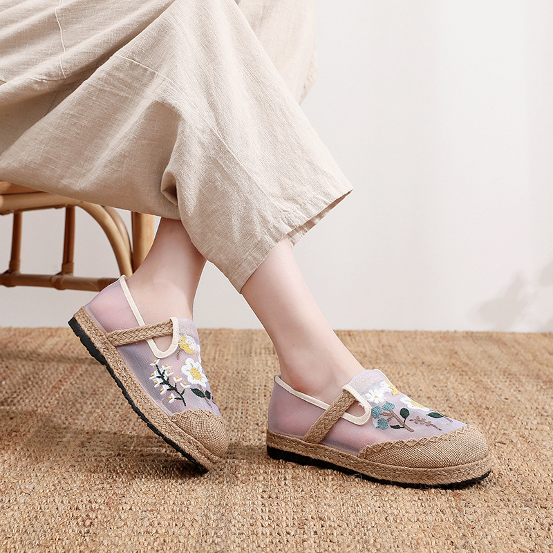 夏新款民族风,绣花布鞋透气网鞋W-215
