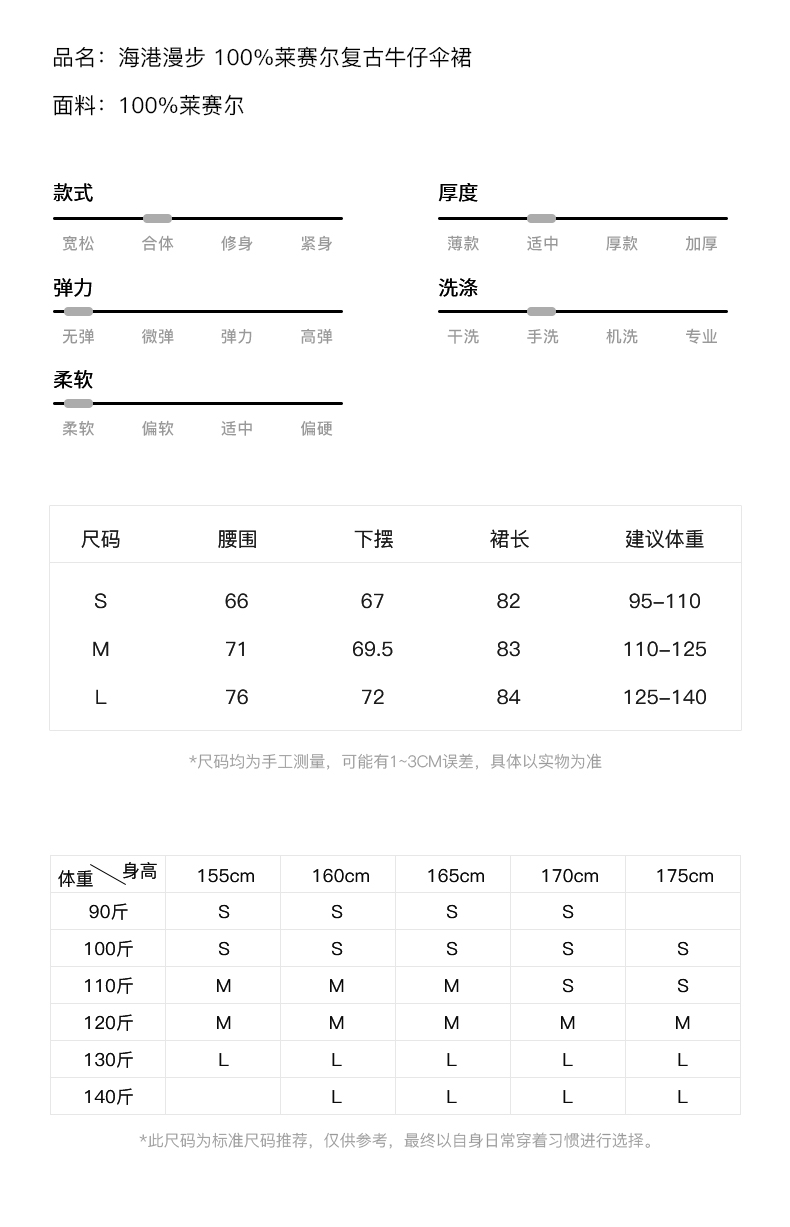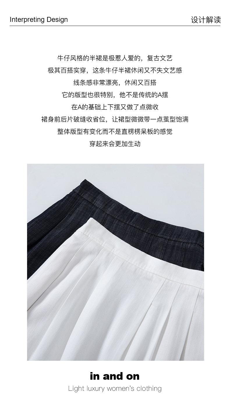 IN AND ON 海港漫步 100%莱赛尔复古牛仔伞裙54386