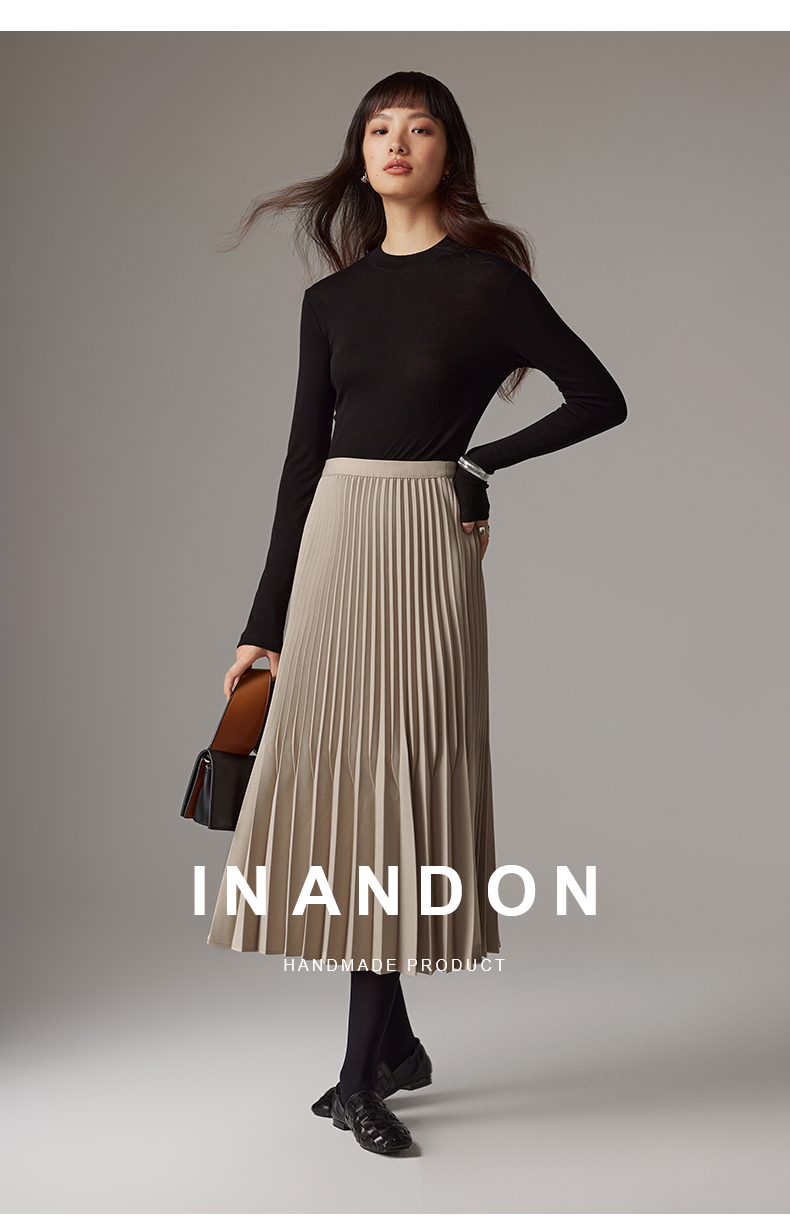 IN AND ON 高阶重工压褶 灵动伞摆渐变风琴褶半裙53741