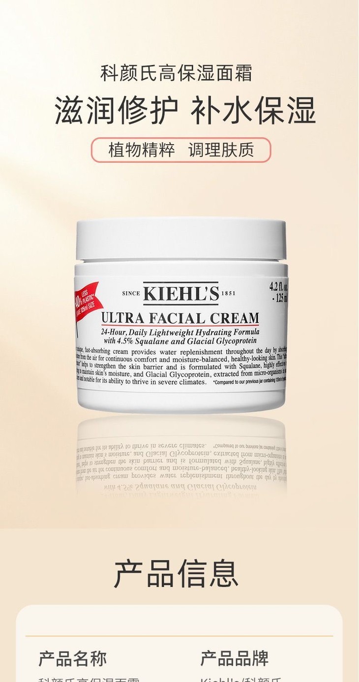 【限时特价 买一送一】Kiehl's科颜氏高保湿面霜125ml补水保湿 滋润修护
