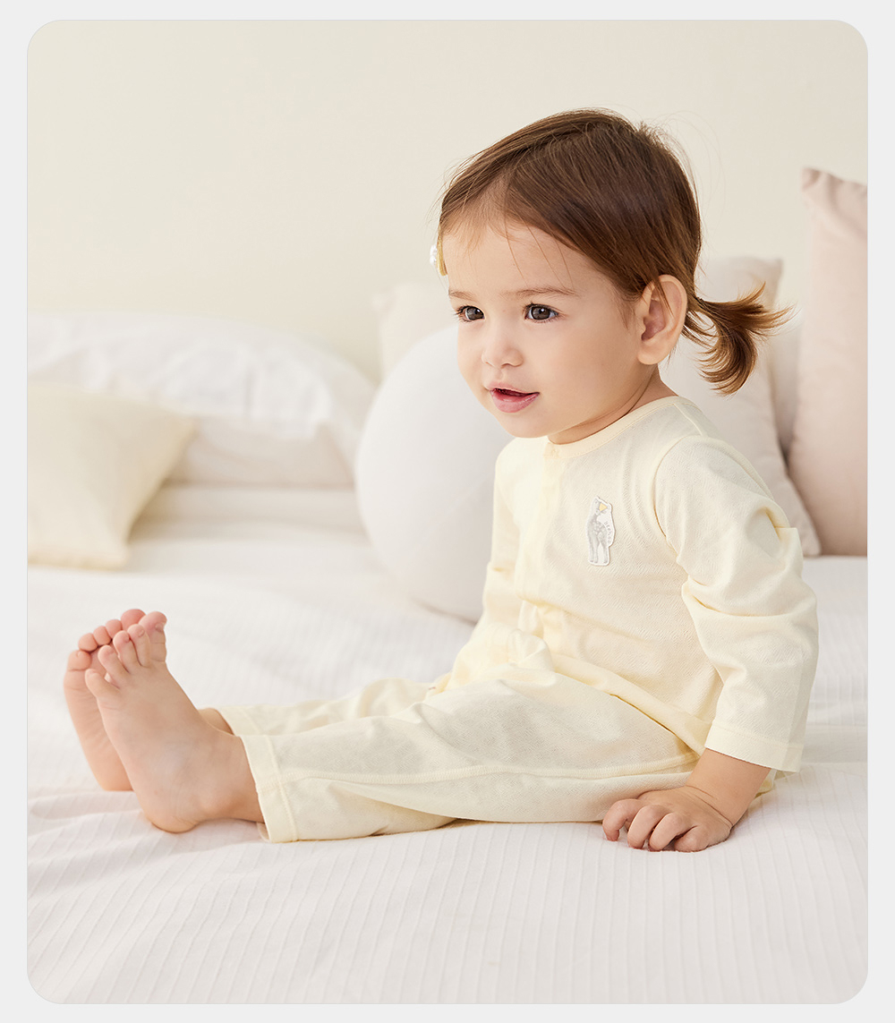 【商场同款】英氏婴儿衣服春夏柔软透气小宝宝连体衣抗菌丝麻睡衣