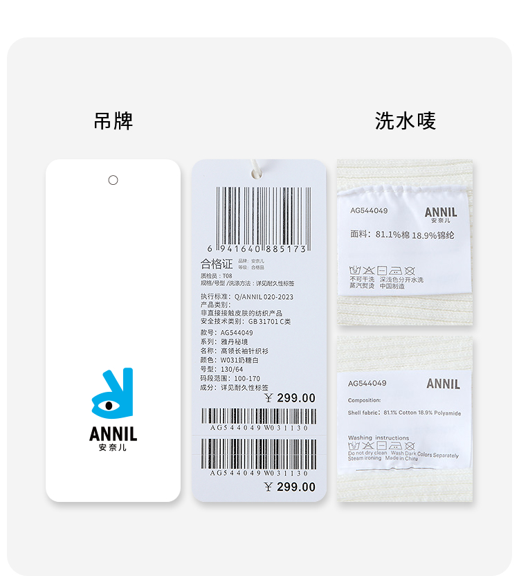【实体店同款】女童高领长袖针织衫冬季新款安奈儿童装AG544049