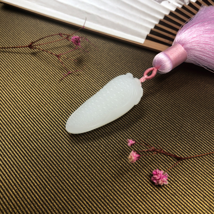 和田玉玉米挂件以玉米为原型,外形丰盈饱满
