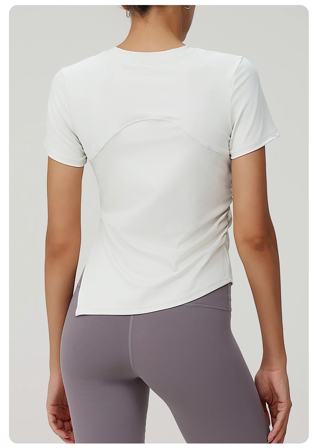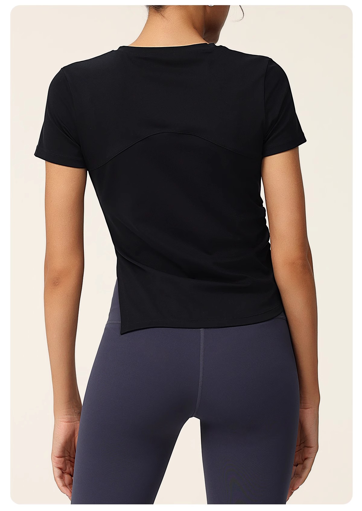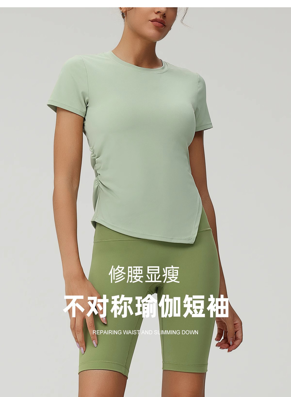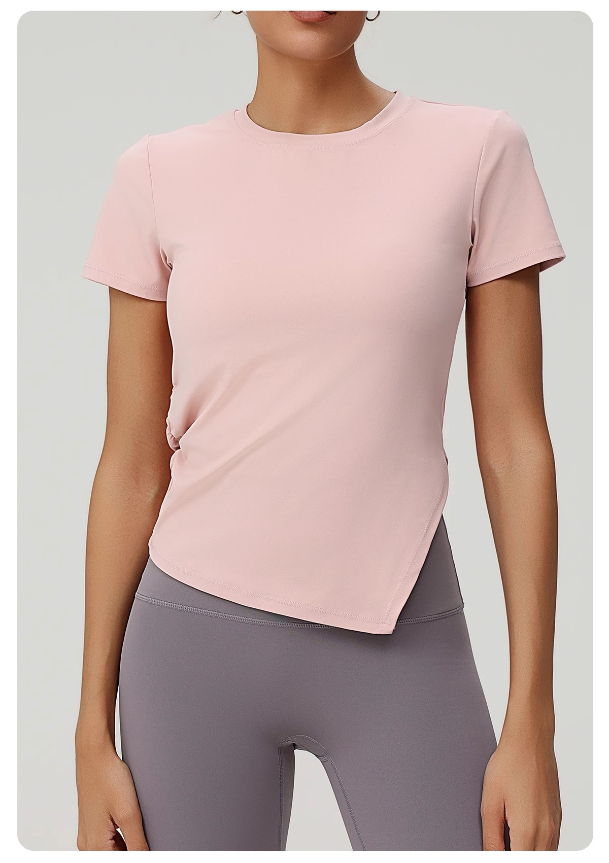 跃牌(呗咪纷纷系列)褶皱显瘦修身不规则开叉瑜伽服短袖圆领运动瑜伽T恤DX3012