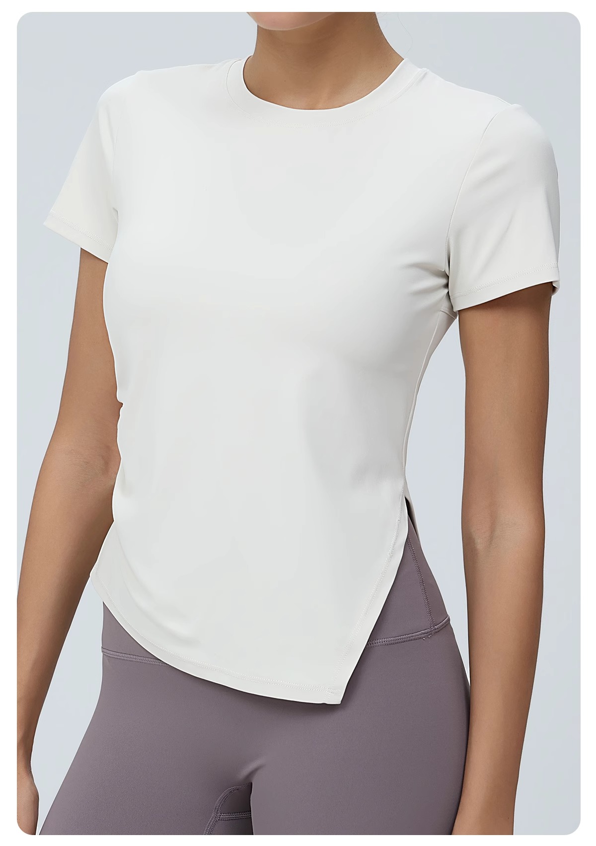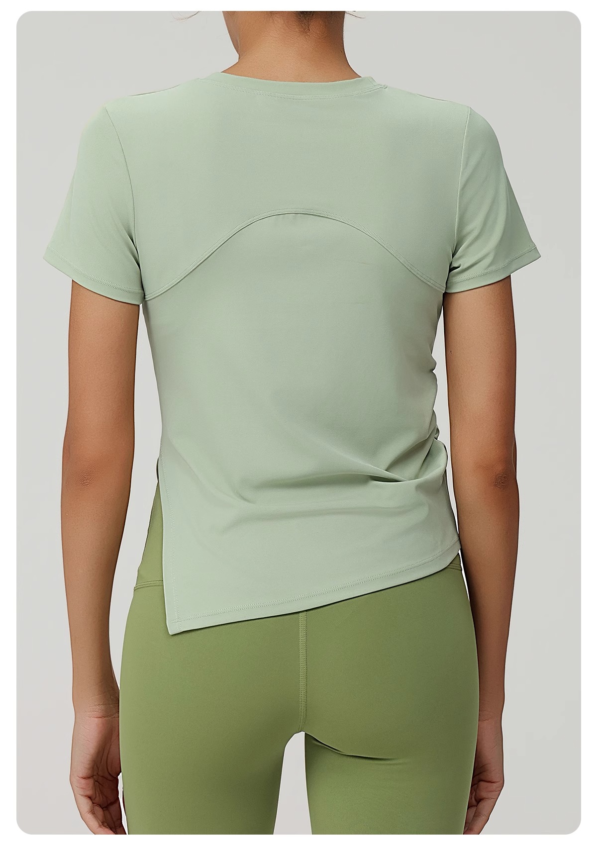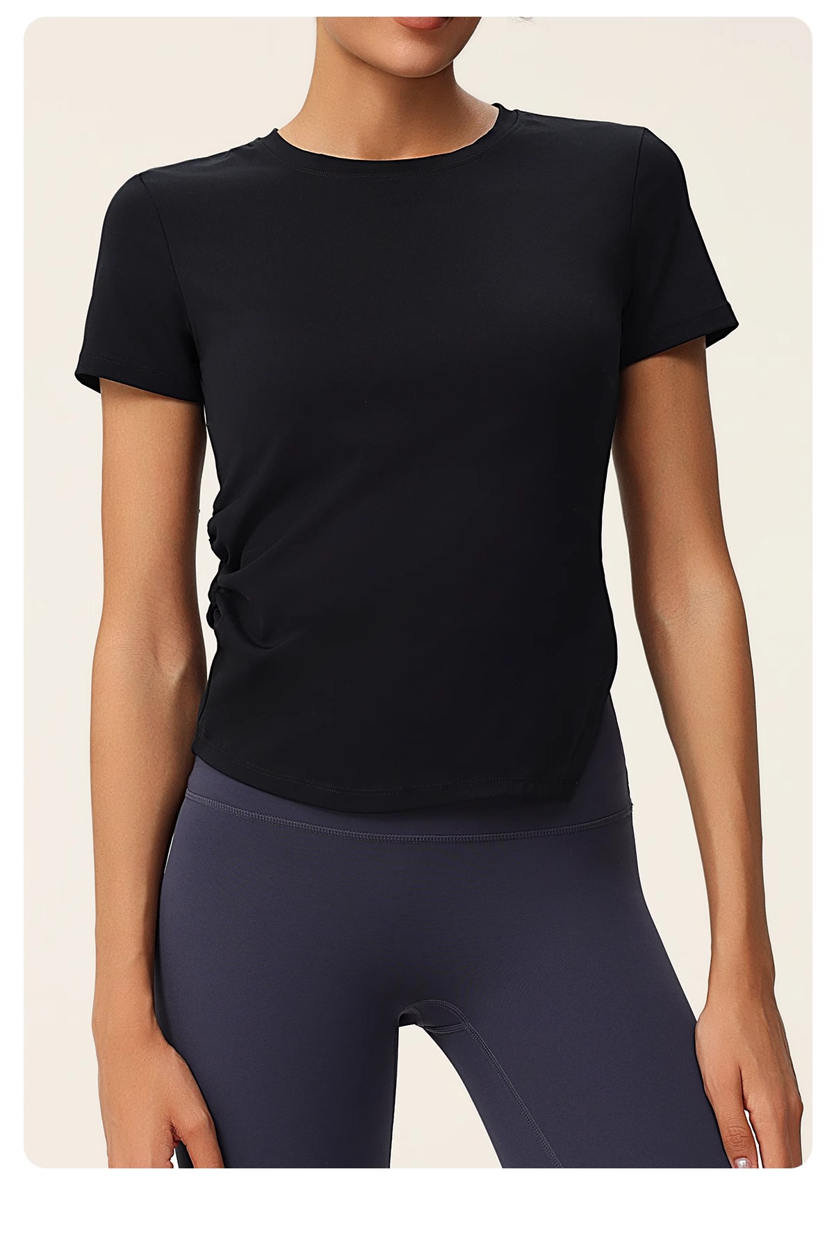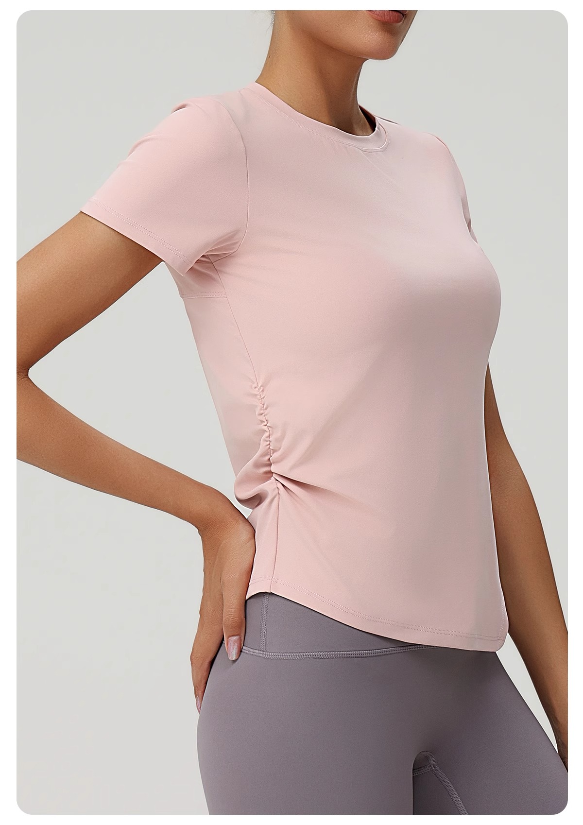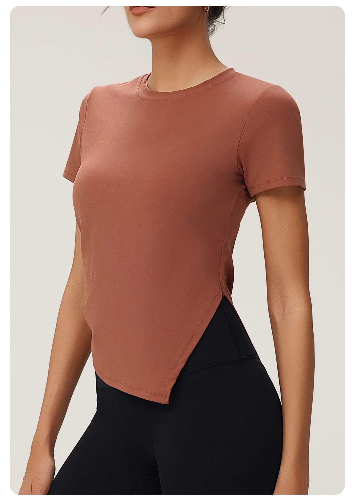 跃牌(呗咪纷纷系列)褶皱显瘦修身不规则开叉瑜伽服短袖圆领运动瑜伽T恤DX3012