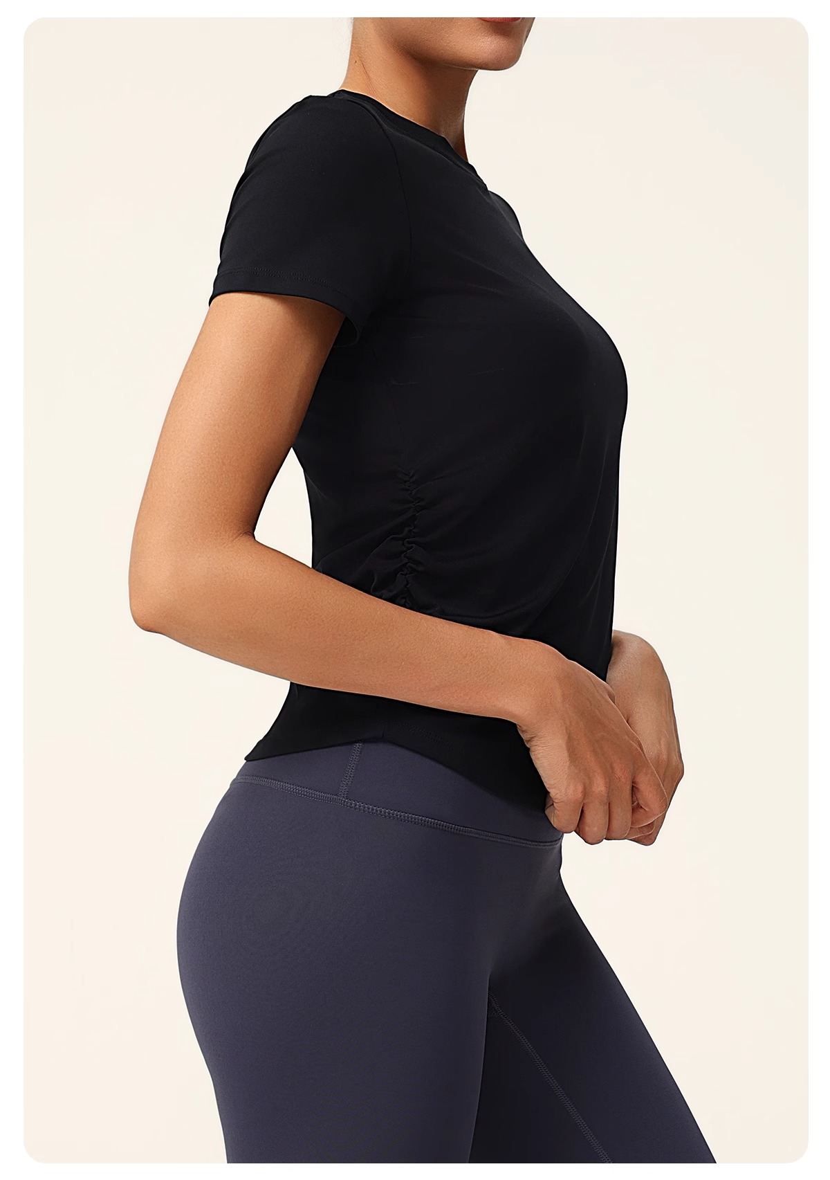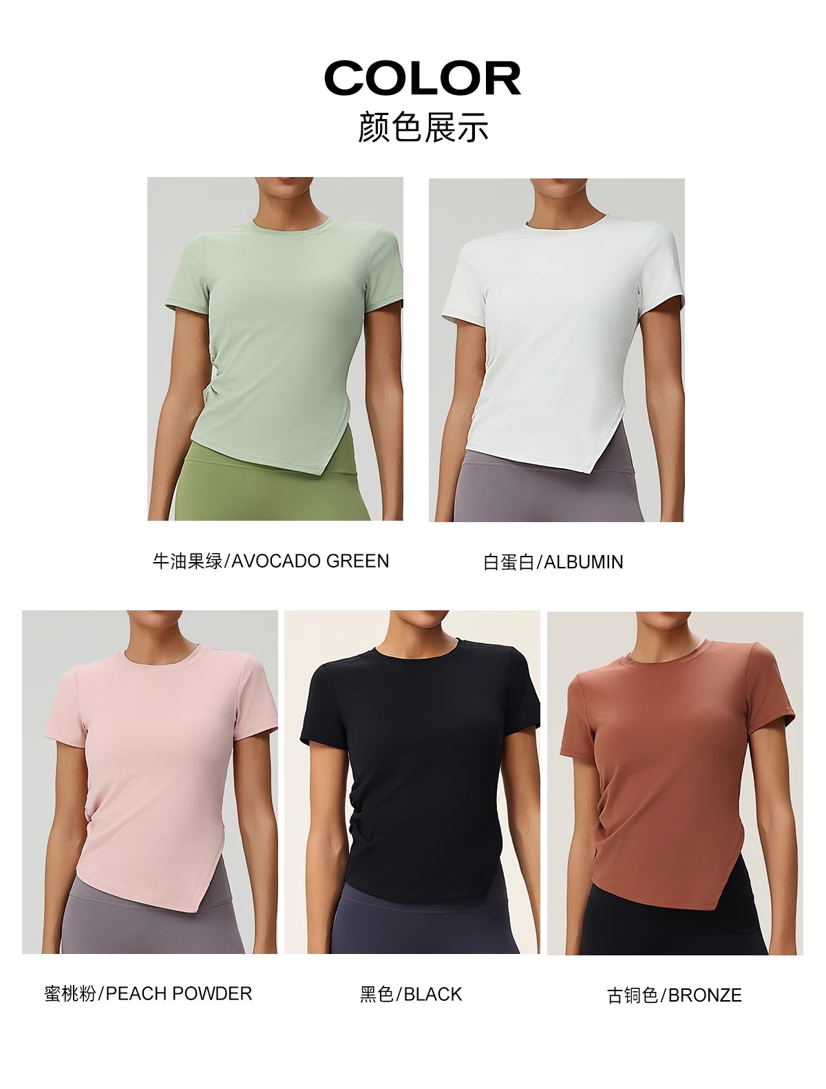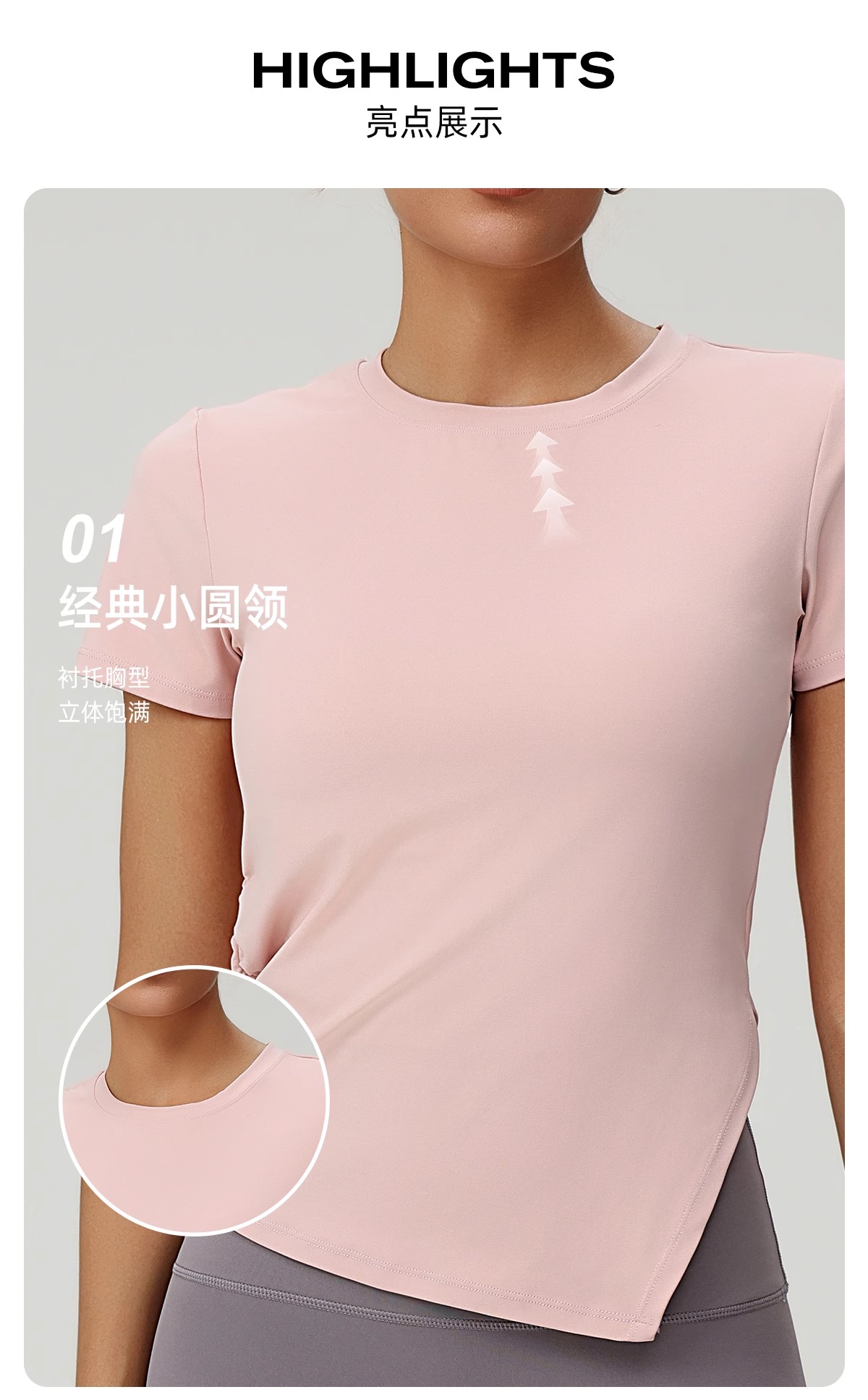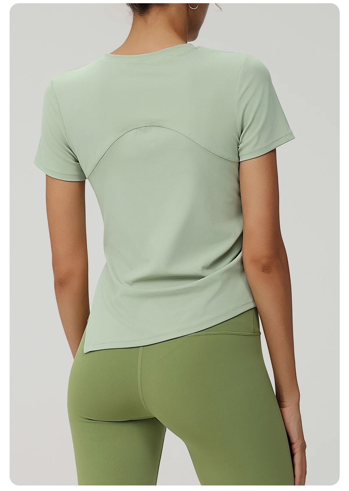 跃牌(呗咪纷纷系列)褶皱显瘦修身不规则开叉瑜伽服短袖圆领运动瑜伽T恤DX3012