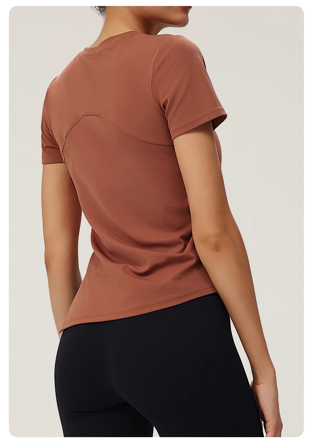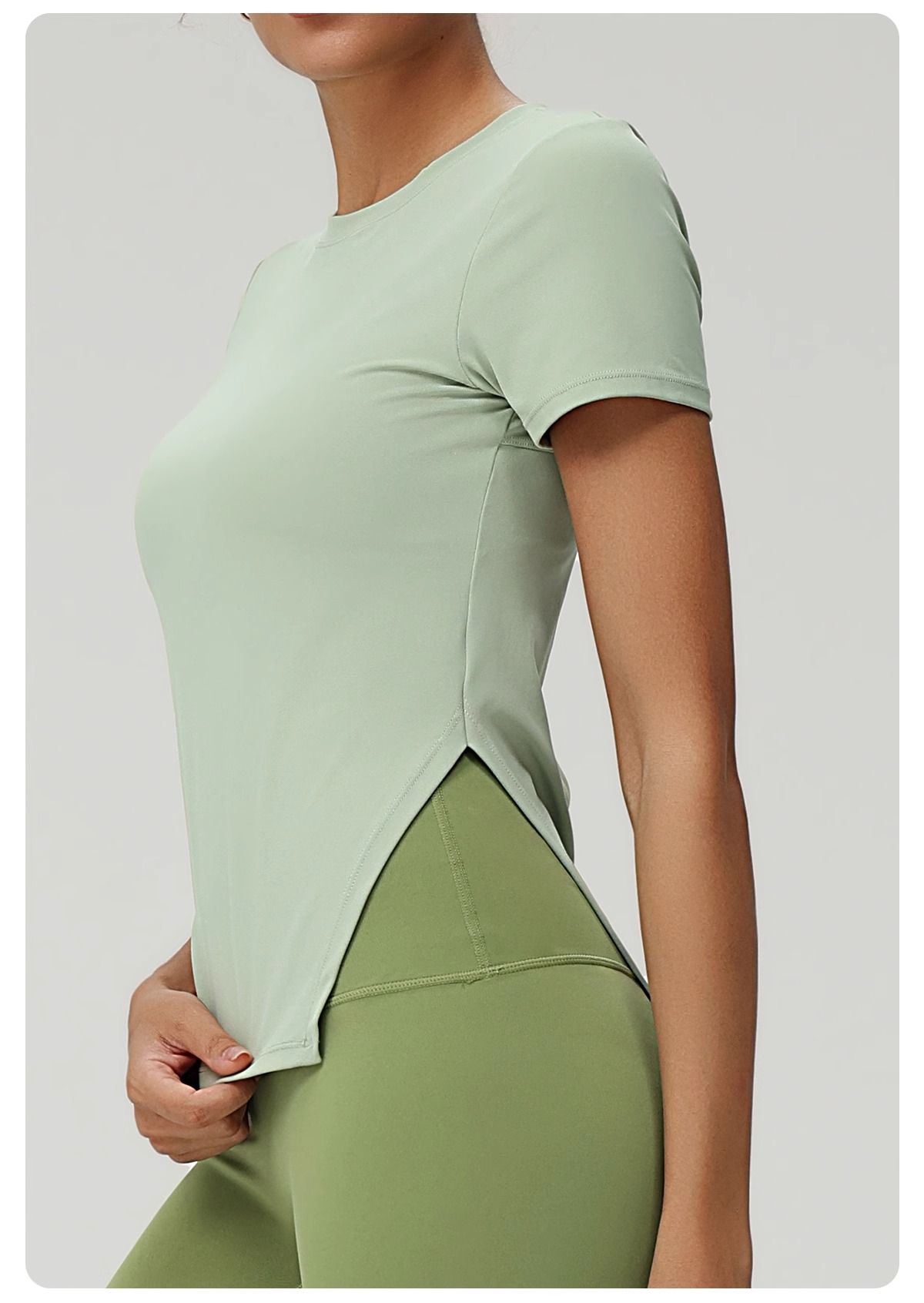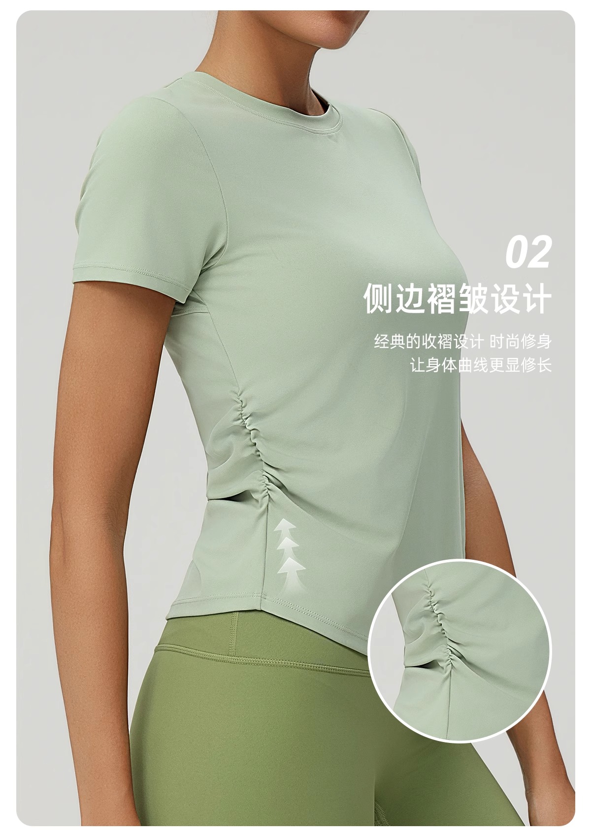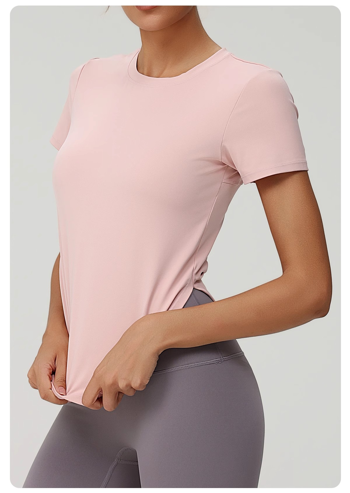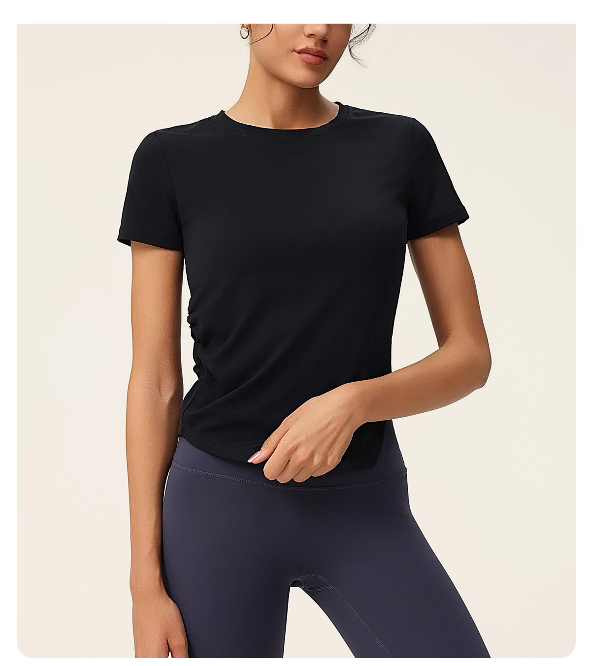 跃牌(呗咪纷纷系列)褶皱显瘦修身不规则开叉瑜伽服短袖圆领运动瑜伽T恤DX3012