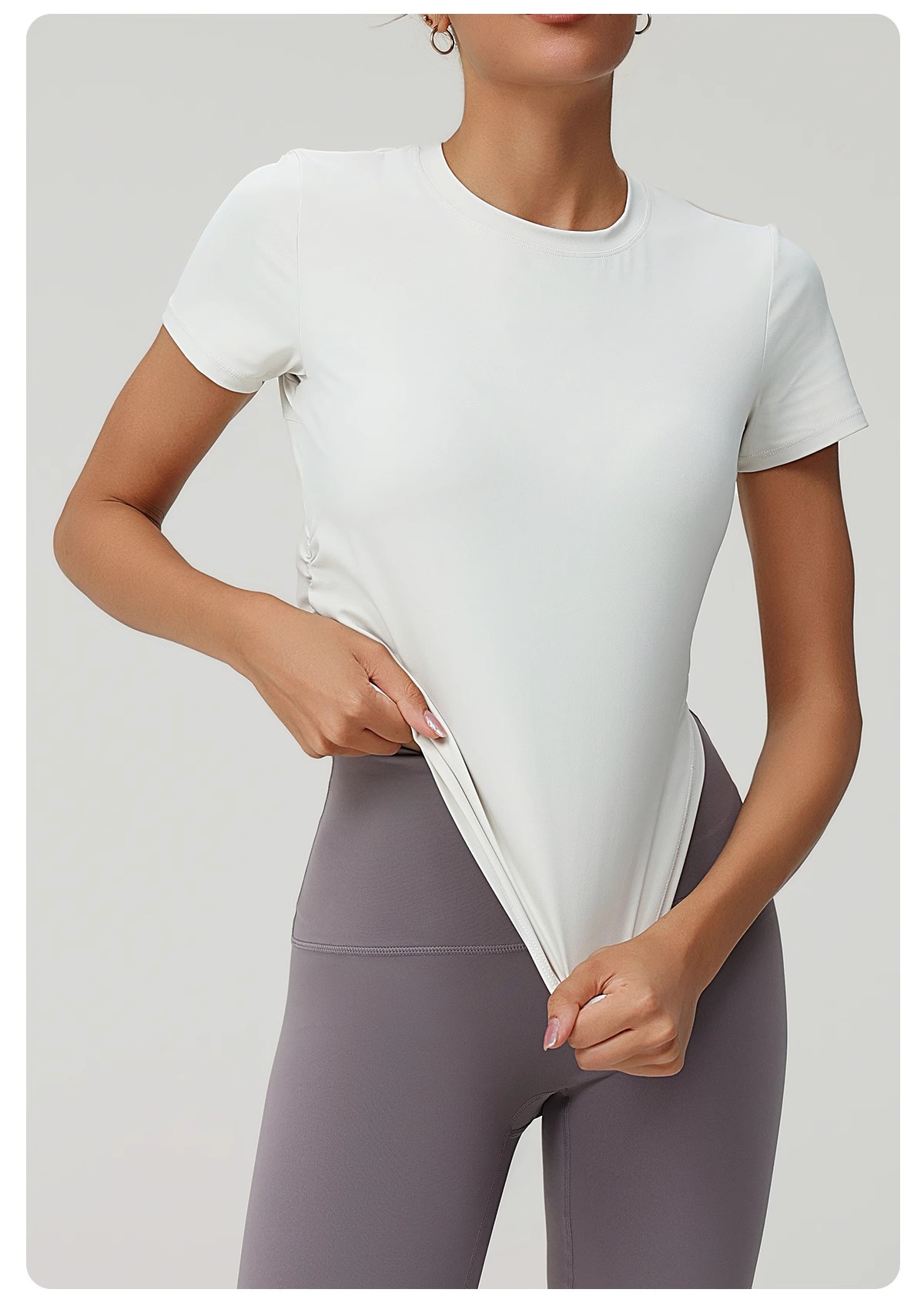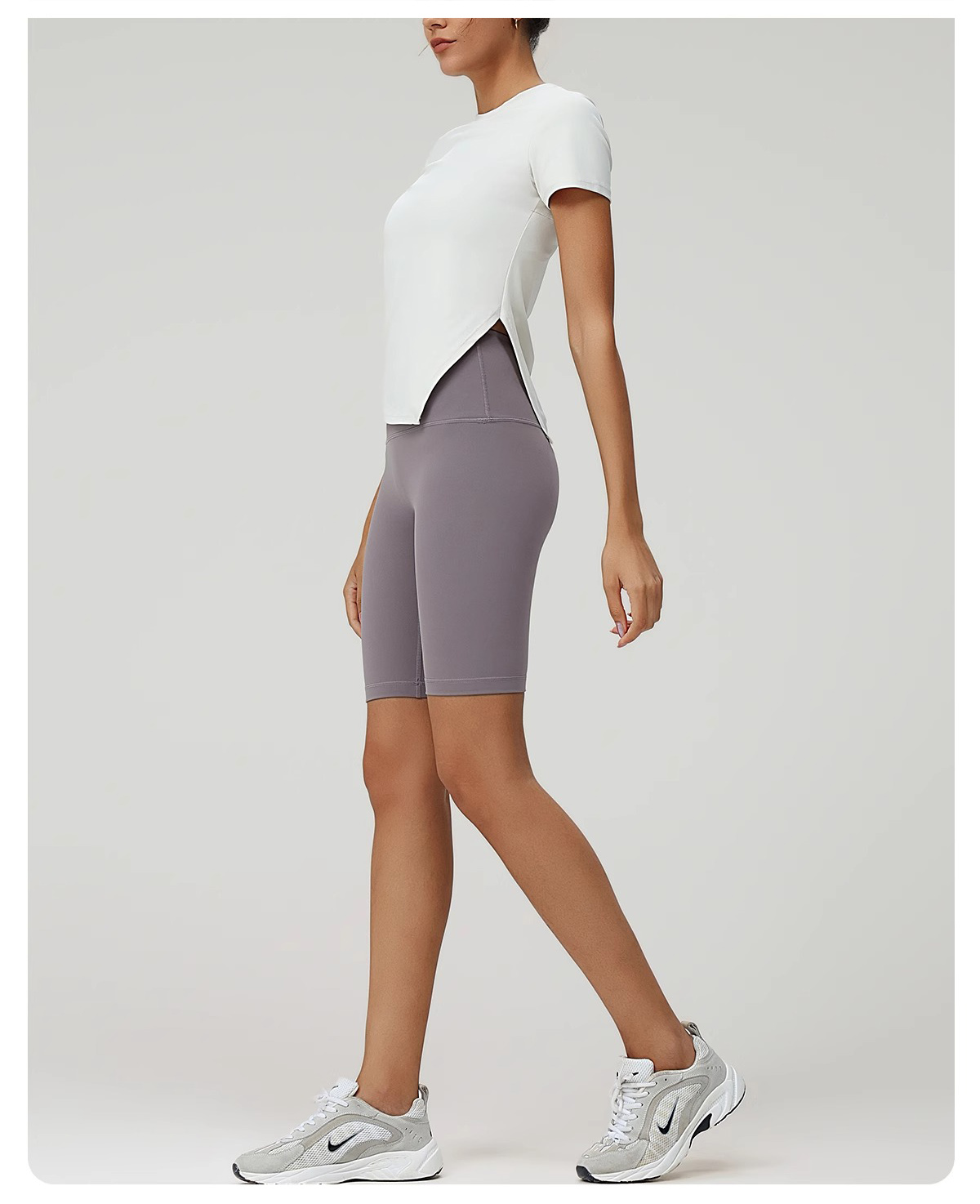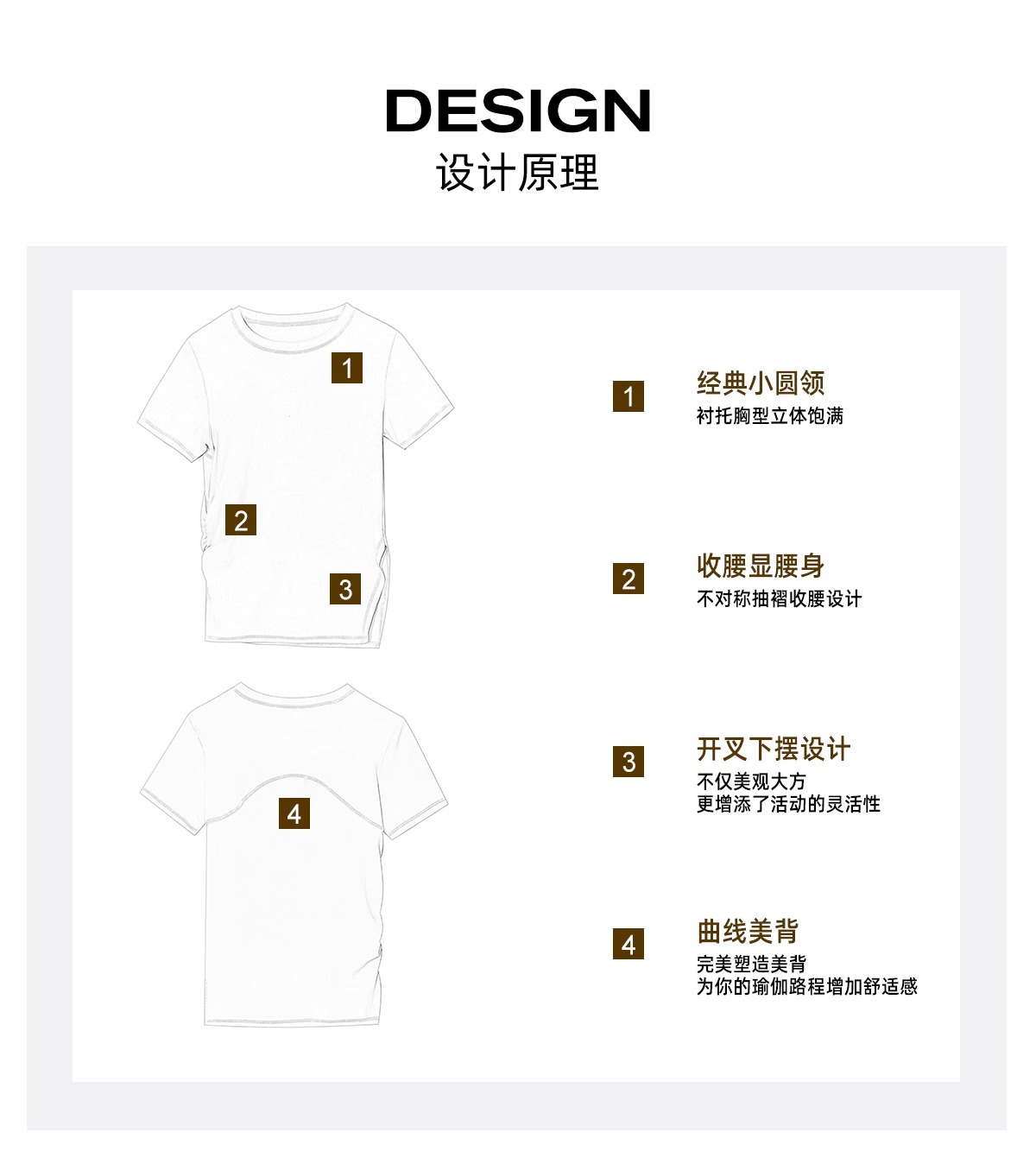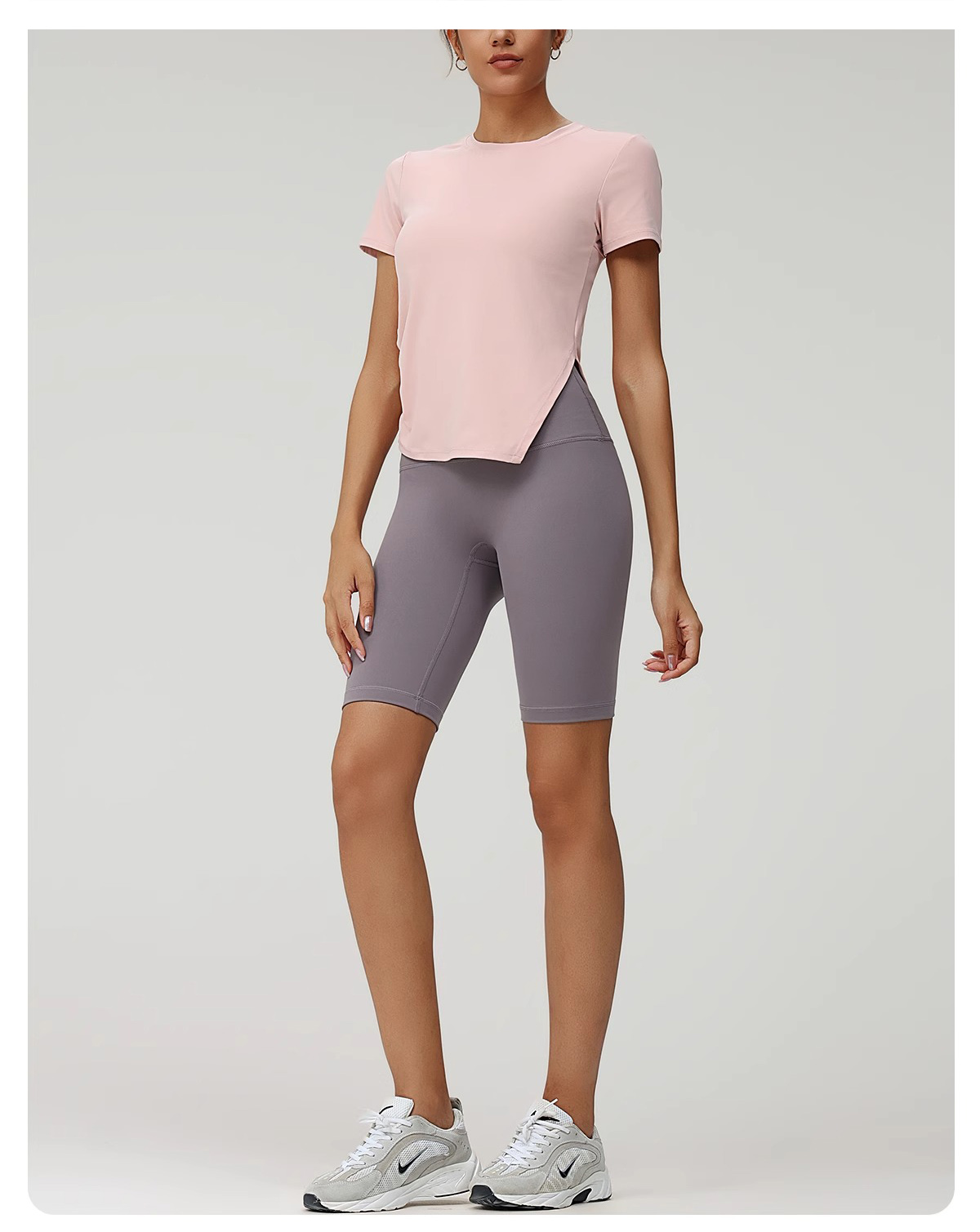 跃牌(呗咪纷纷系列)褶皱显瘦修身不规则开叉瑜伽服短袖圆领运动瑜伽T恤DX3012