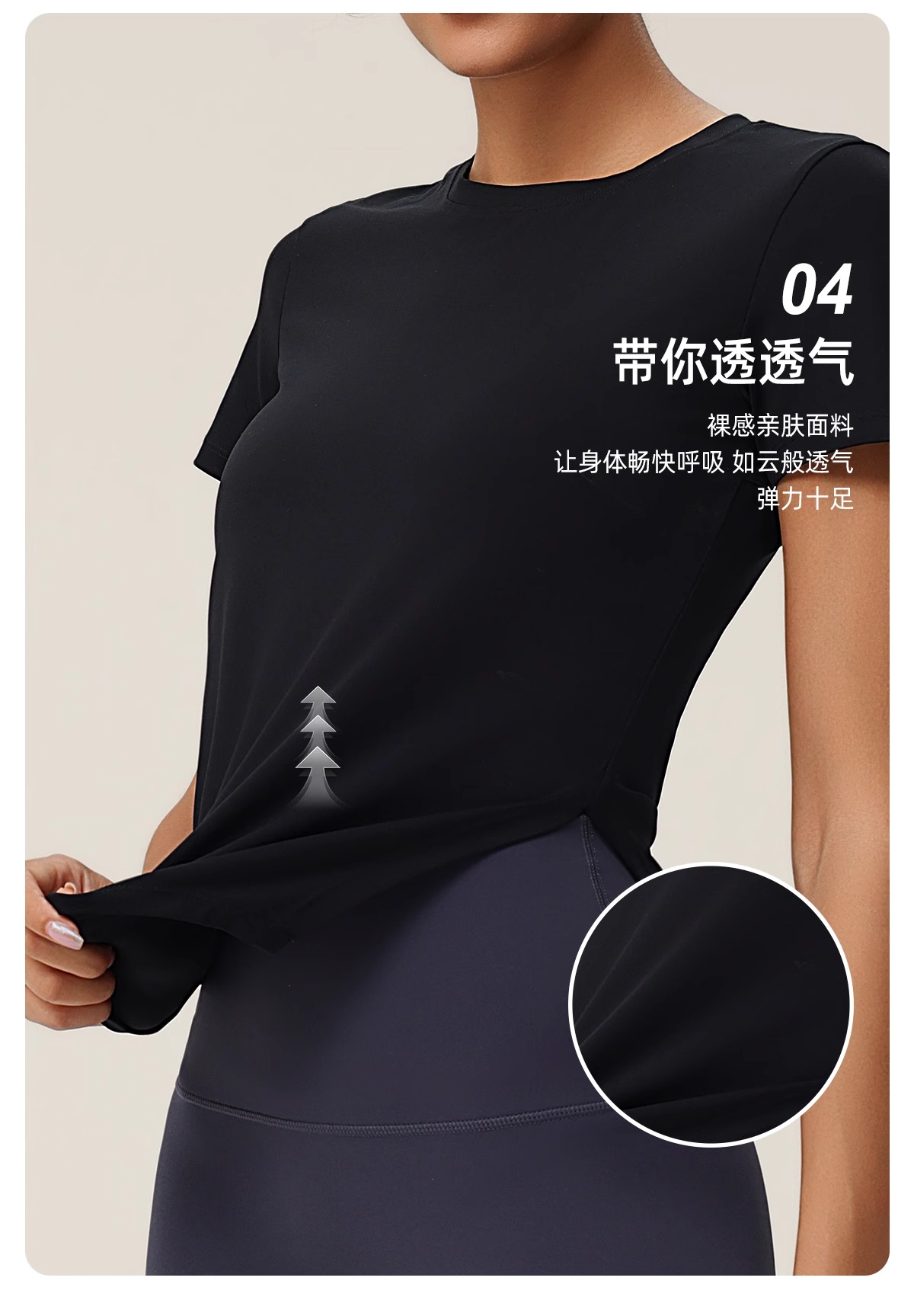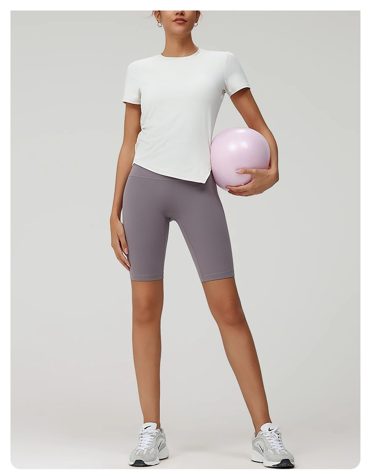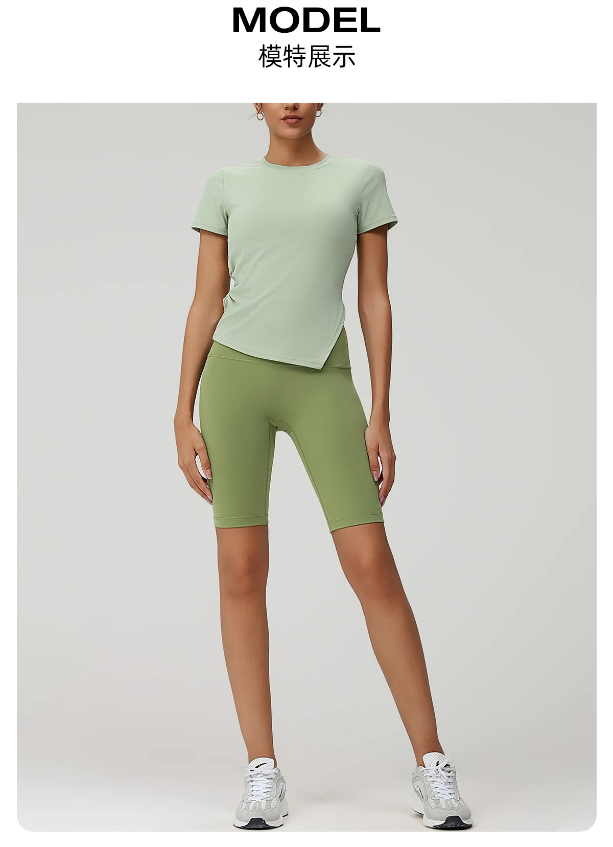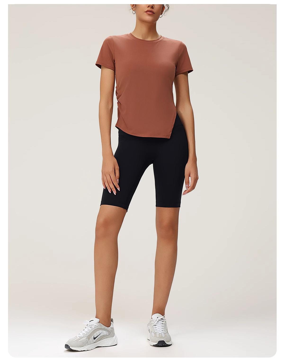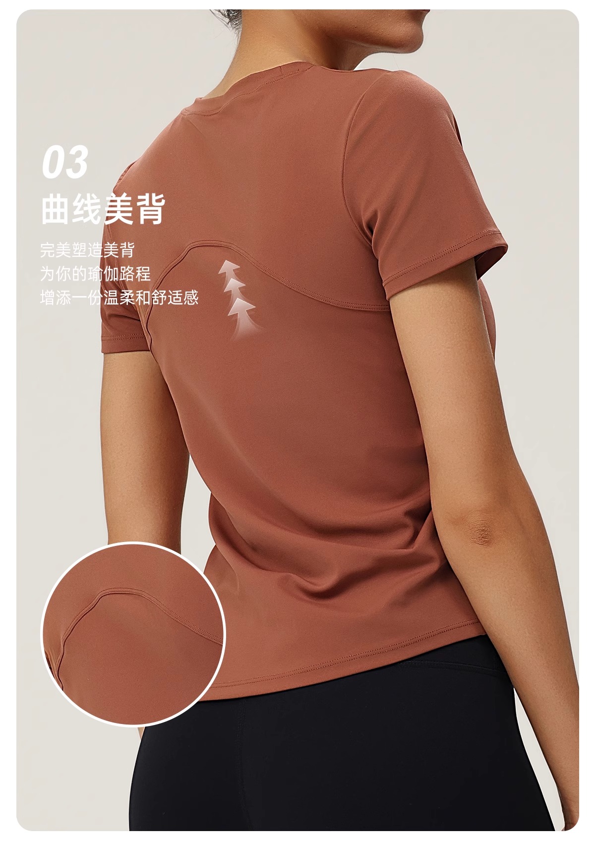 跃牌(呗咪纷纷系列)褶皱显瘦修身不规则开叉瑜伽服短袖圆领运动瑜伽T恤DX3012