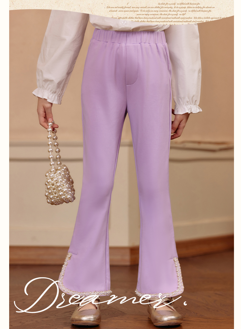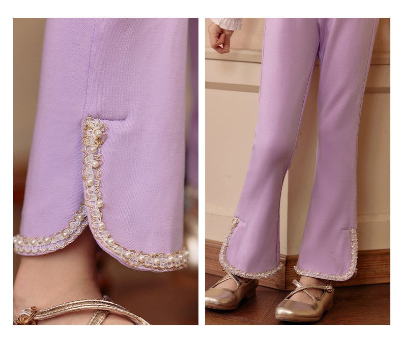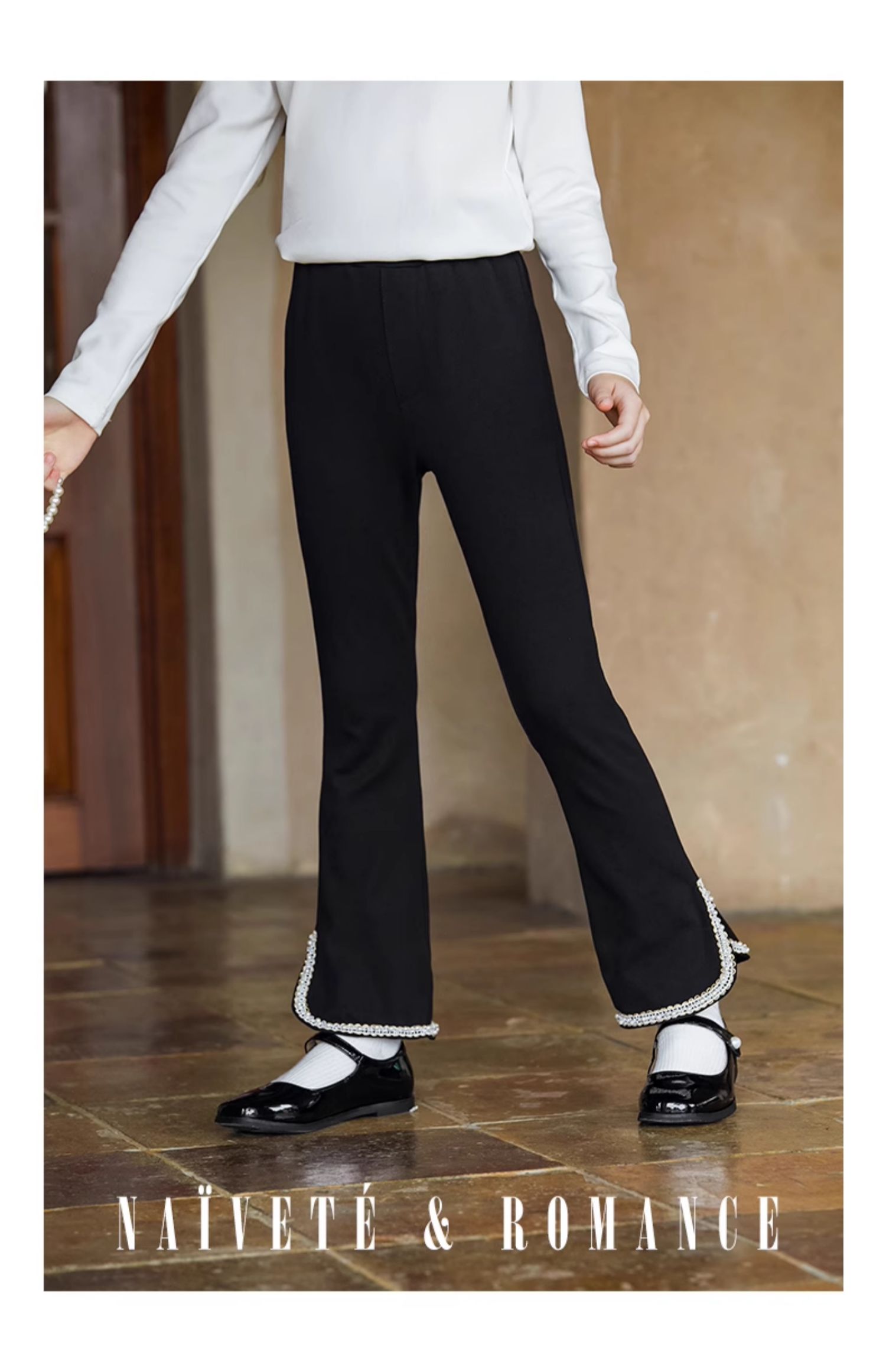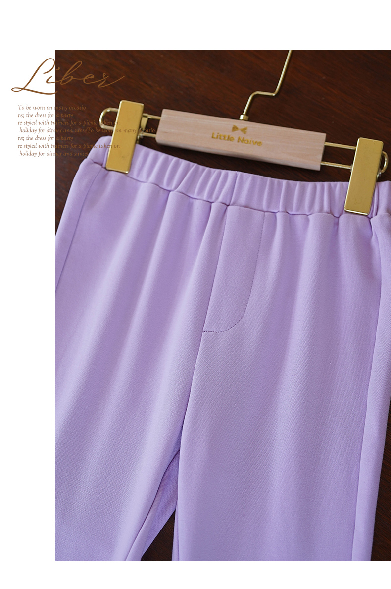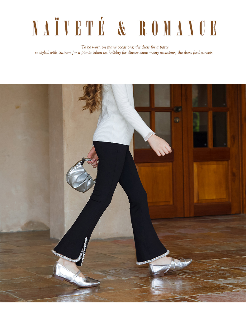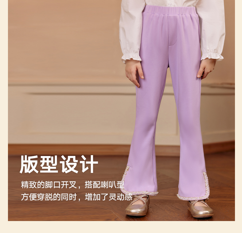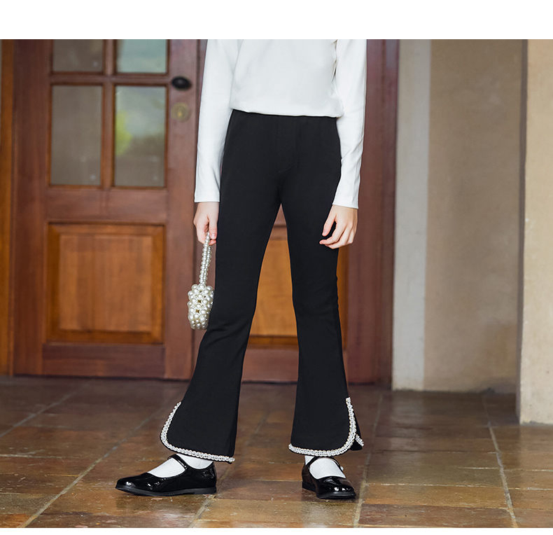 LittleNaive春秋儿童休闲裤开叉弹力修身黑色长裤洋气女童喇叭裤