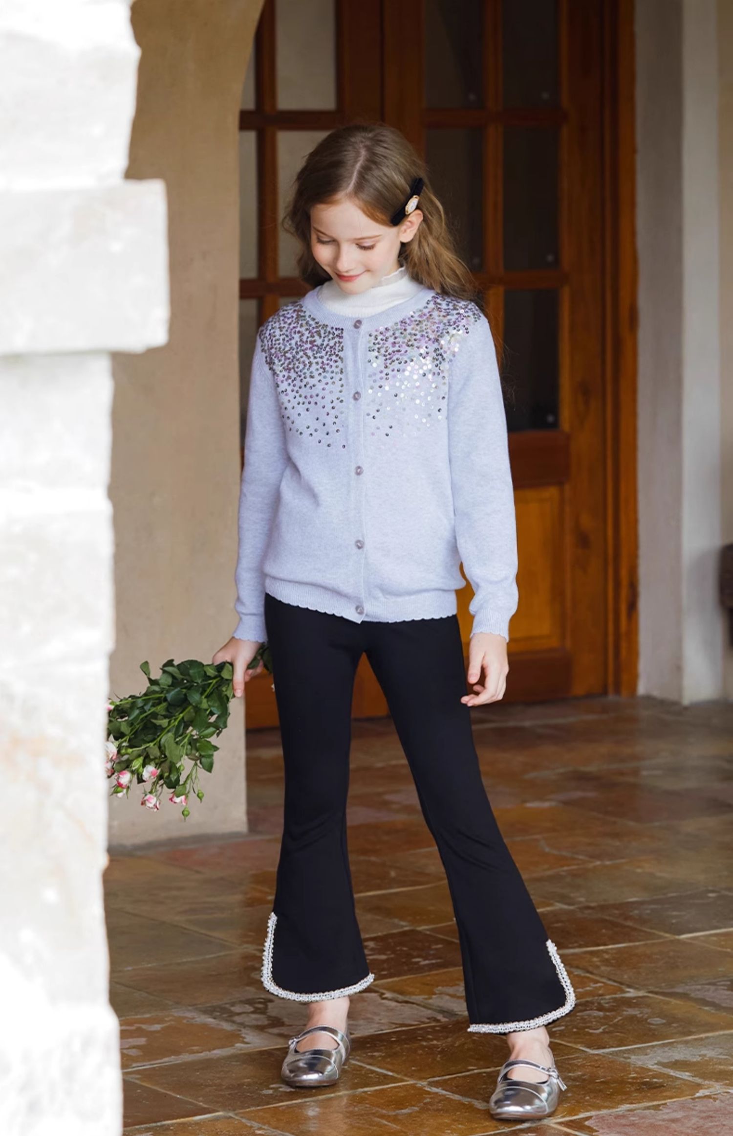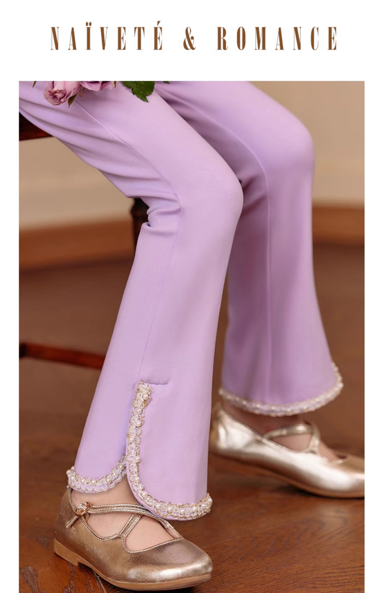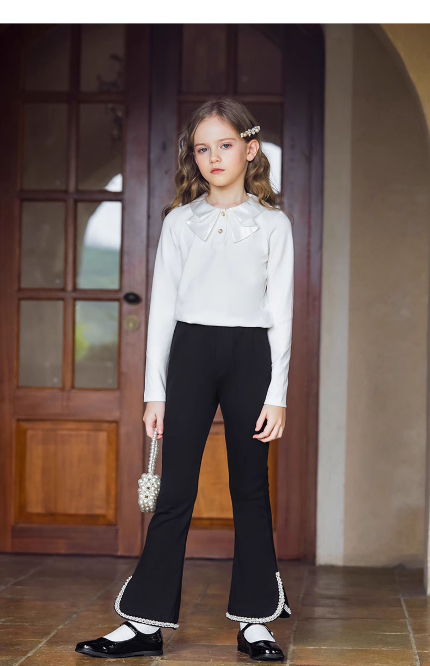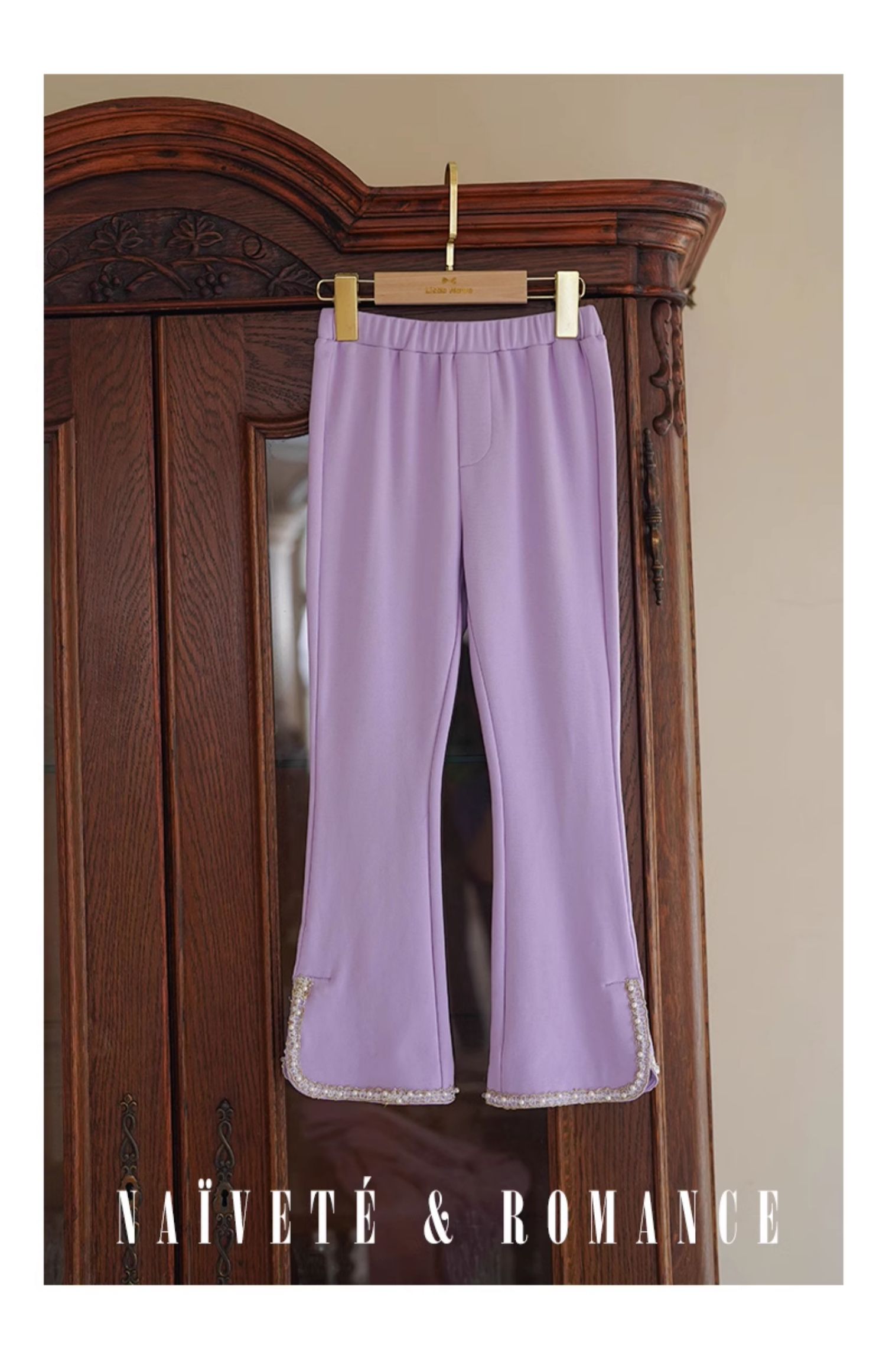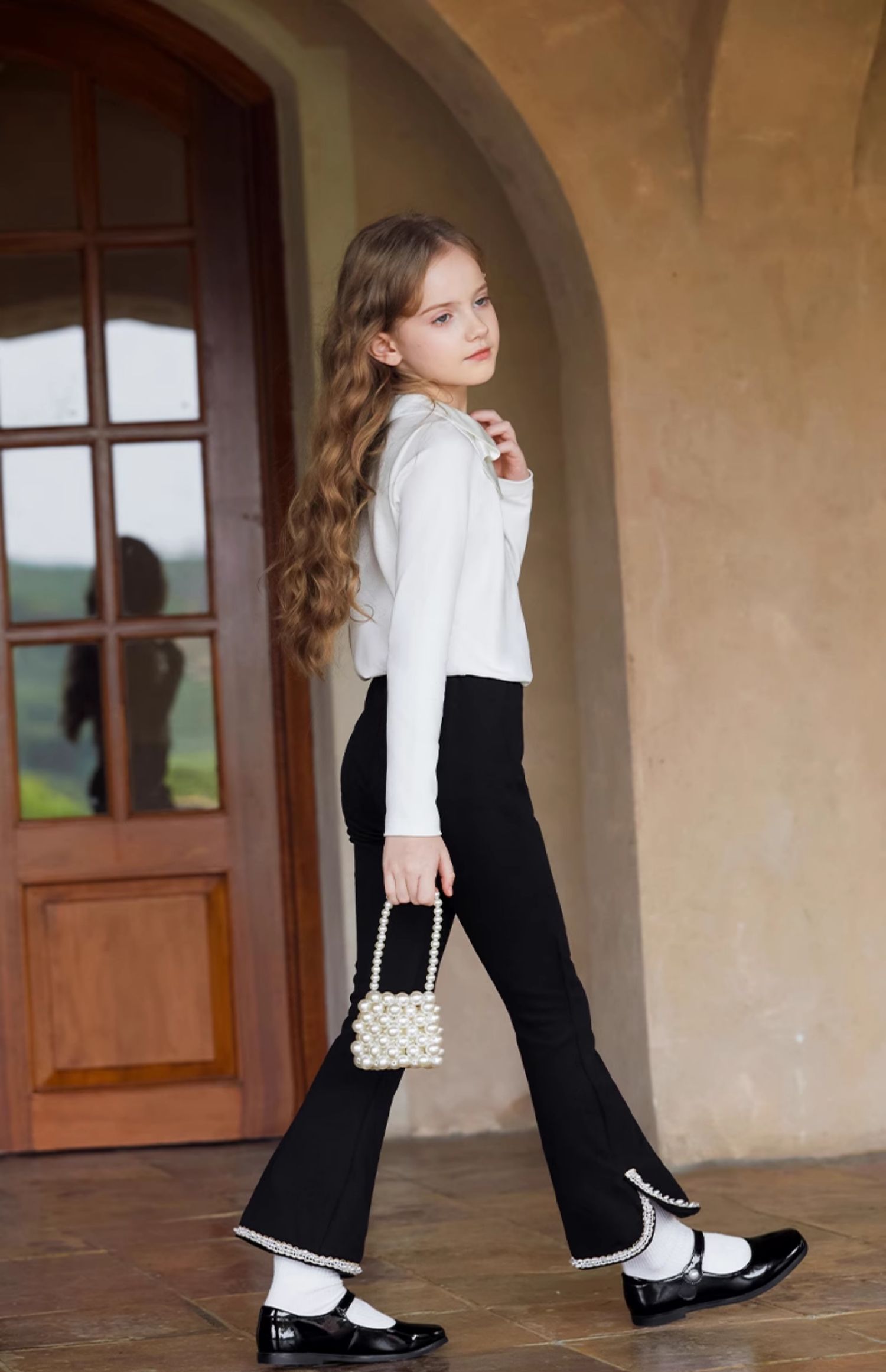 LittleNaive春秋儿童休闲裤开叉弹力修身黑色长裤洋气女童喇叭裤