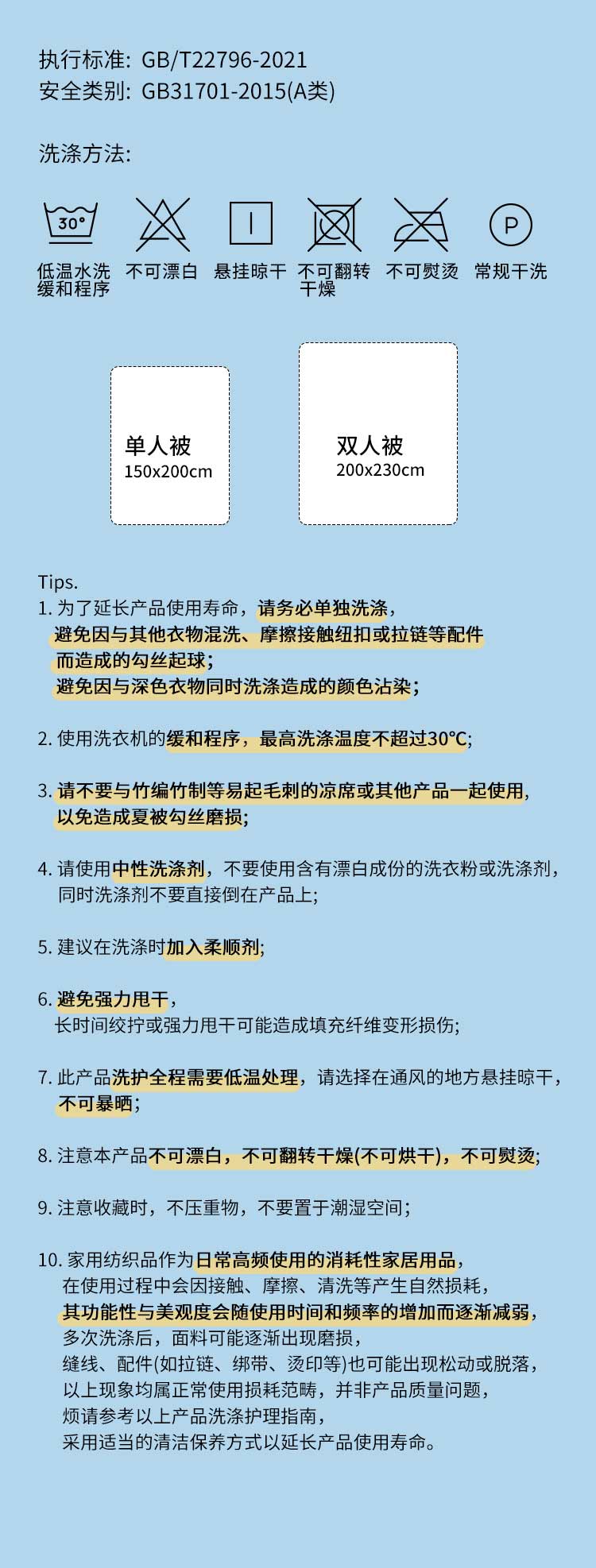 3.请使用中性洗涤剂,不要使用含有漂白成份的洗衣粉或洗涤剂,同时洗涤剂不要直接倒在产品上;