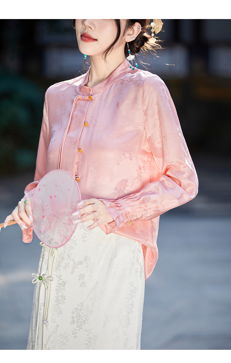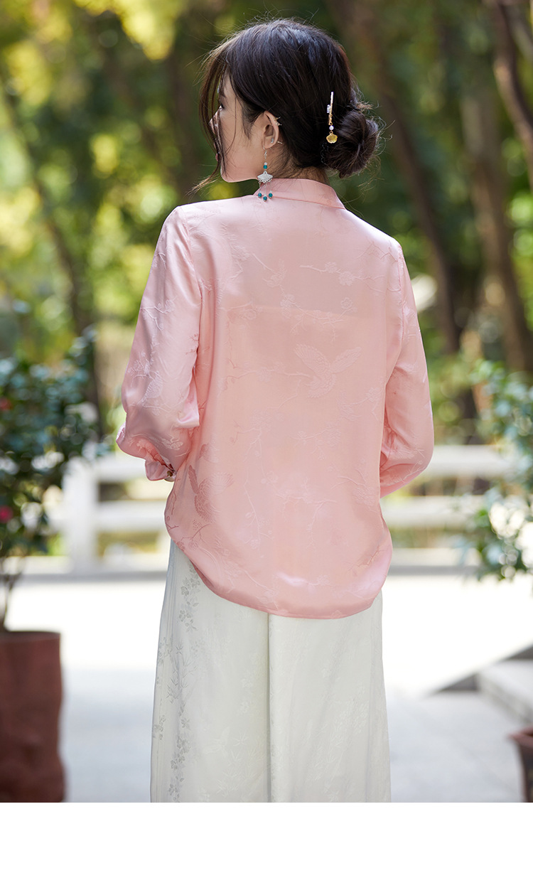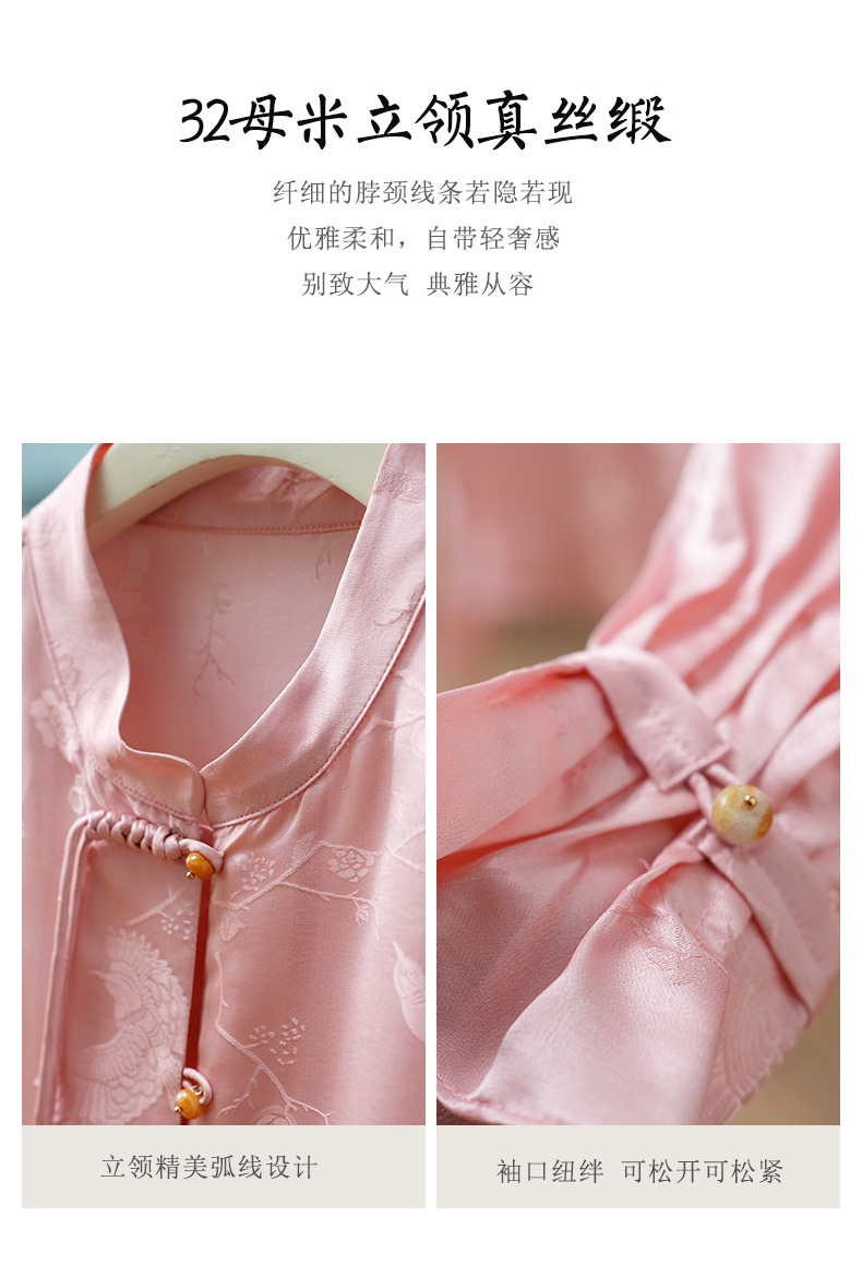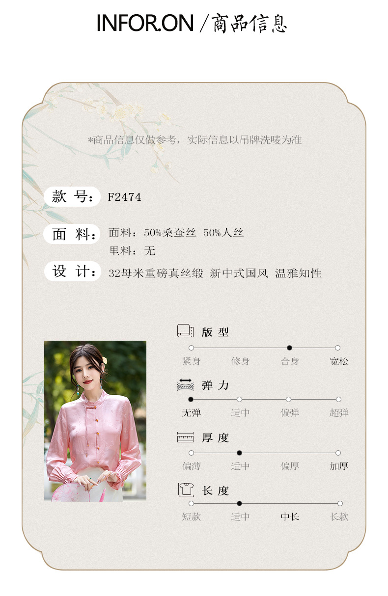 OPH  F2474重工提花真丝复古气质新中式衬衫立领盘扣桑蚕丝衬衣 商品图4