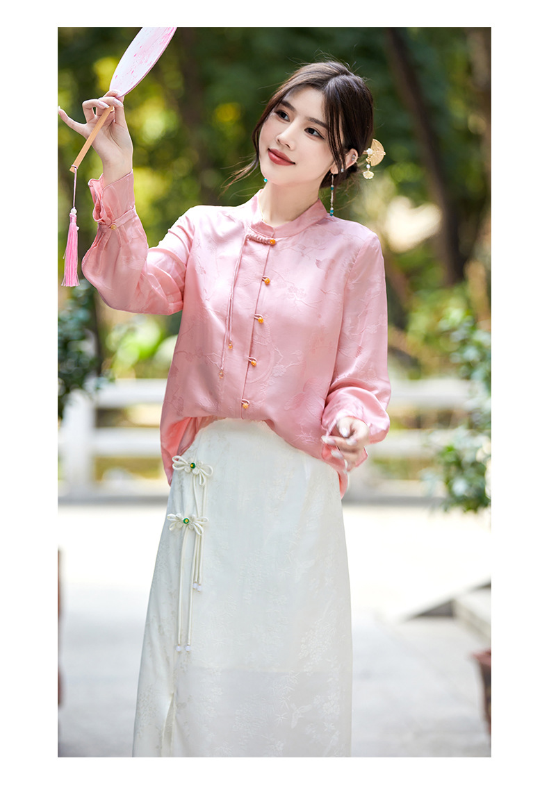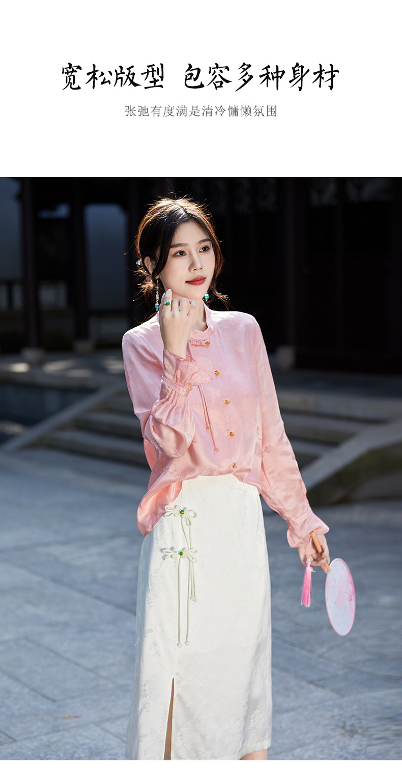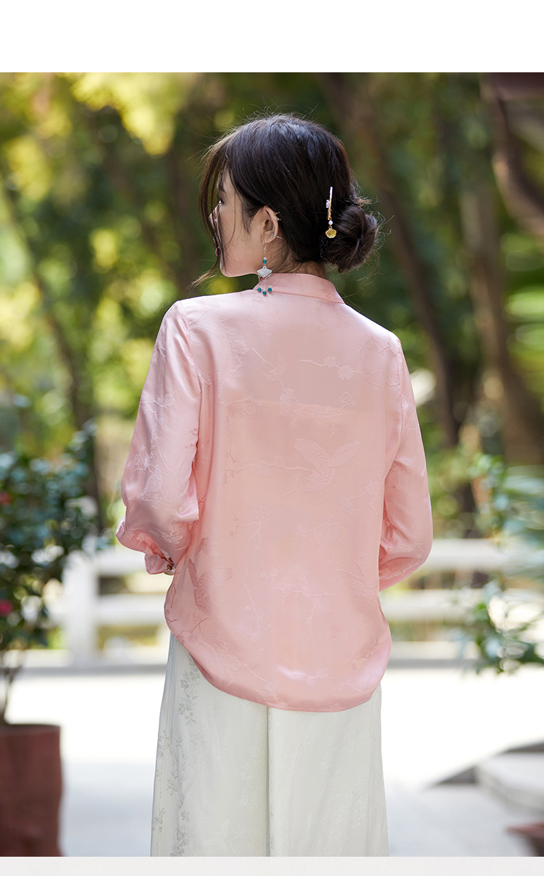 OPH  F2474重工提花真丝复古气质新中式衬衫立领盘扣桑蚕丝衬衣 商品图4