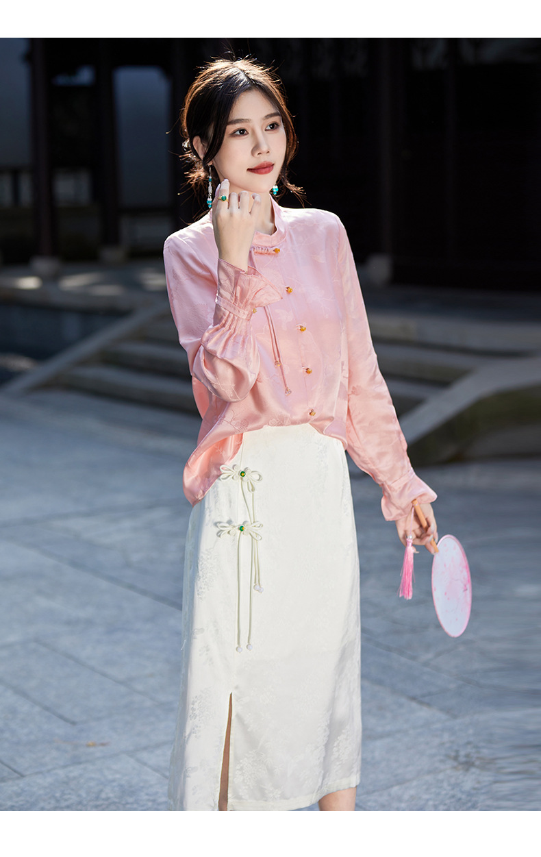 OPH  F2474重工提花真丝复古气质新中式衬衫立领盘扣桑蚕丝衬衣 商品图1