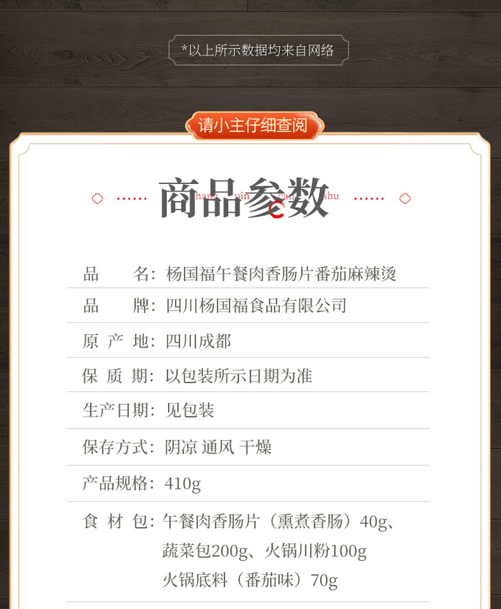 【美食秀场】385g杨国福自热麻辣烫(午餐肉香肠片/午餐肉香肠片蕃茄)