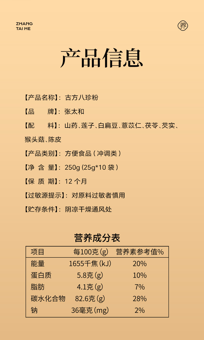 张太和古方八珍粉 250g(25g*10袋)*2盒 商品图8