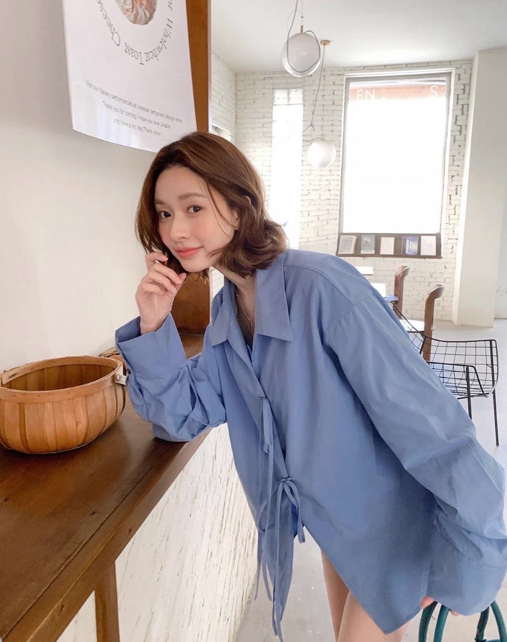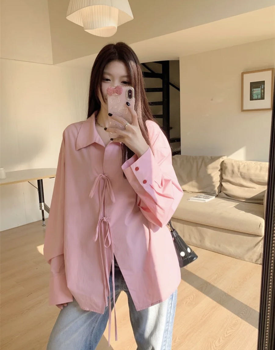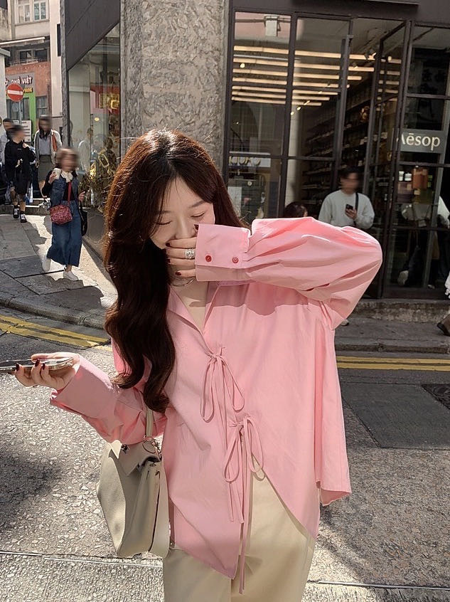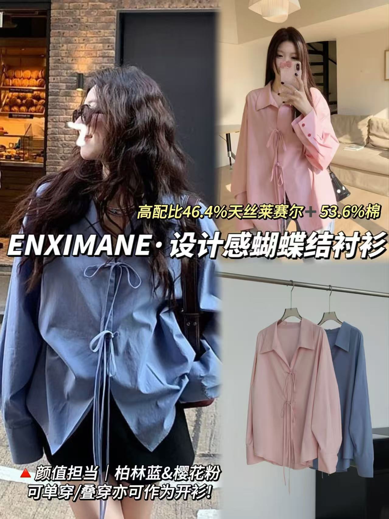 【樱西玛ENXIMANE 设计感蝴蝶结衬衫】可单穿/叠穿可开衫 舒适不易变形 蝴蝶结绑带更有设计感