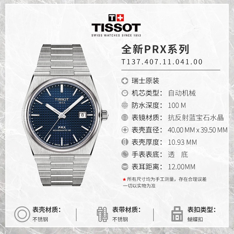 【时计廊】天梭(TISSOT) 瑞士手表PRX超级玩家系列机械表钢带男士腕表 暗影绿盘钢带T137.407.11.091.00