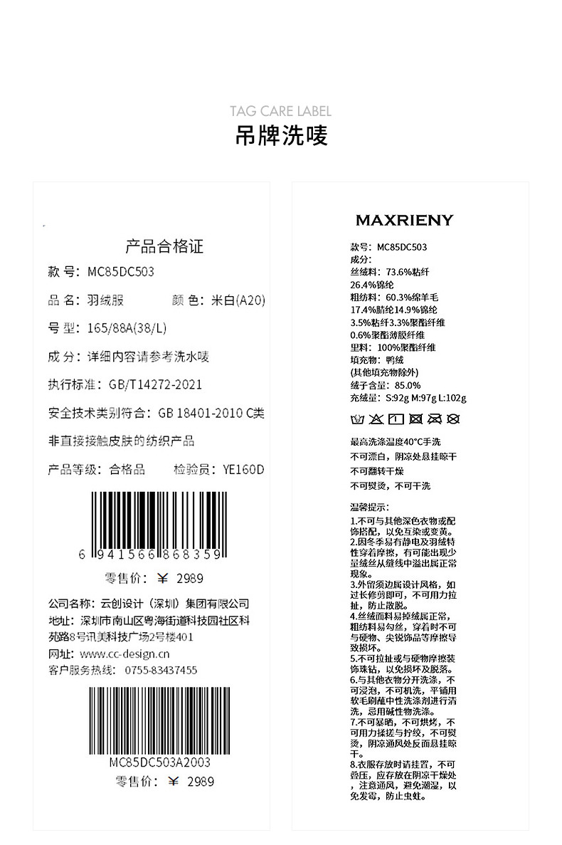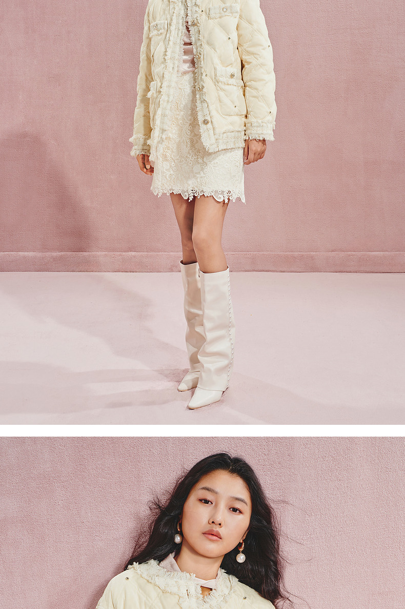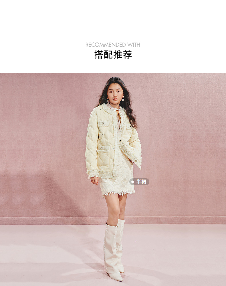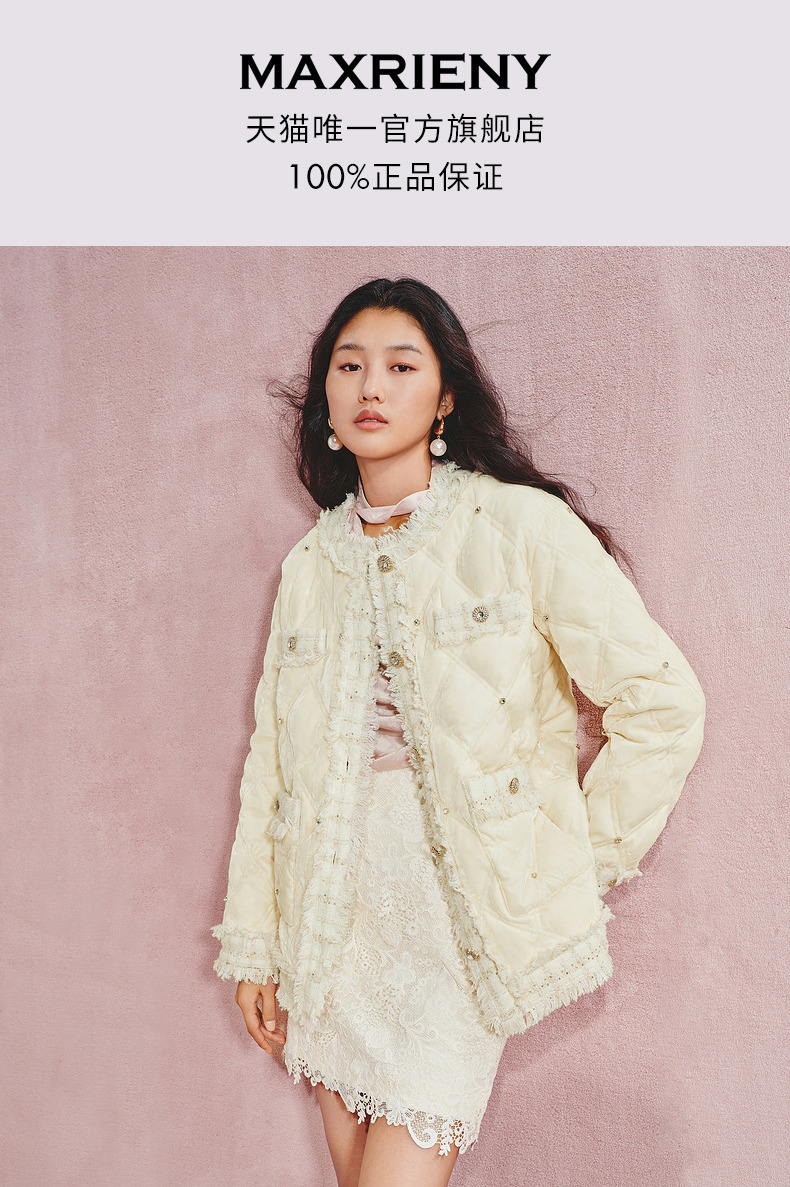 【宫廷巴洛克-商场同款】MAXRIENY钻饰丝绒拼花纱羽绒外套女24秋(货号:MC85DC503)