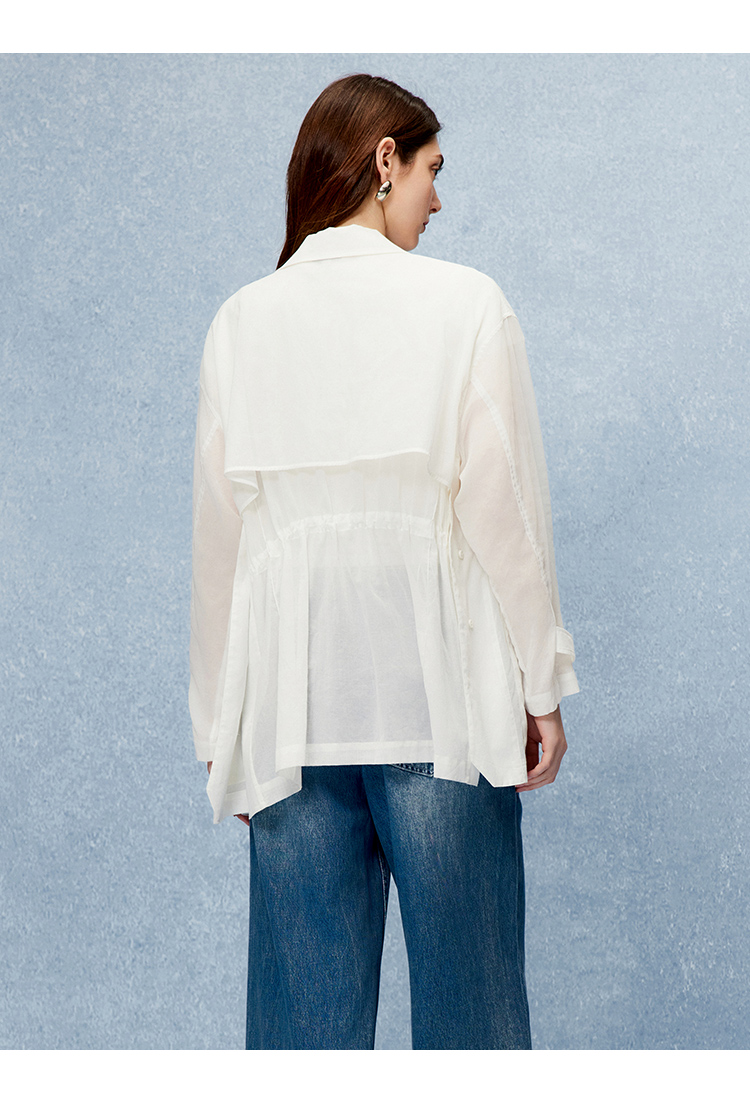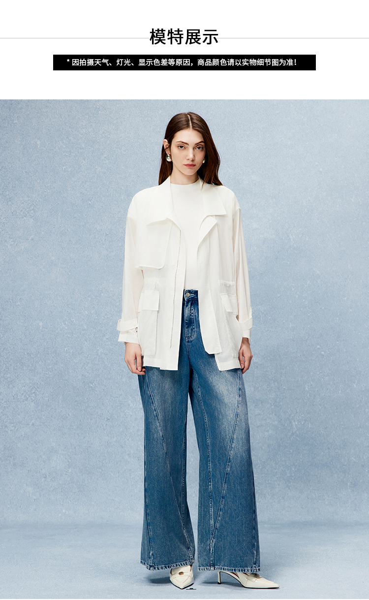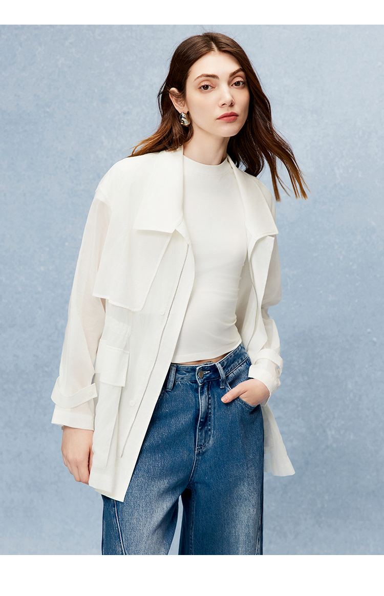 VIMAGE纬漫纪舒适纯棉薄款收腰显瘦翻领白色风衣外套秋季新款V2204801