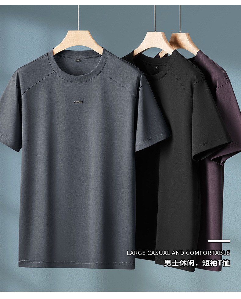 【丝光棉】【DPF】大依优型大码短袖T恤潮流圆领半袖夏季胖子宽松加肥加大上衣男士