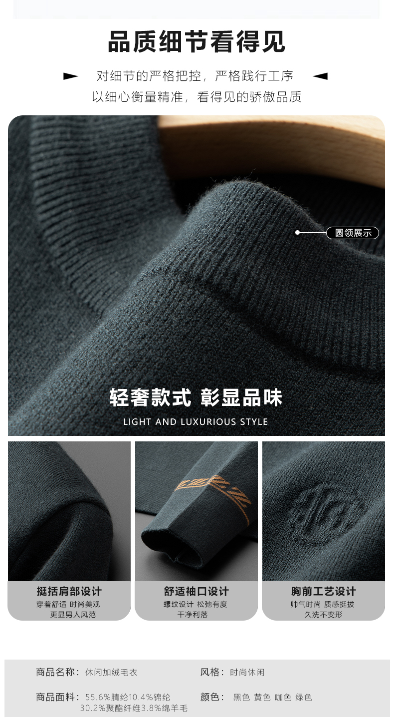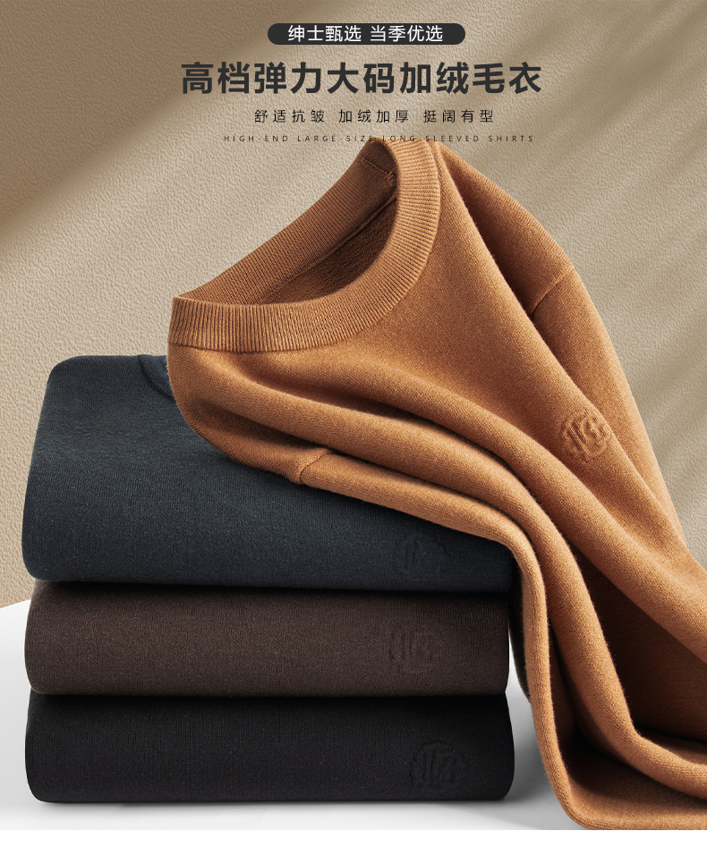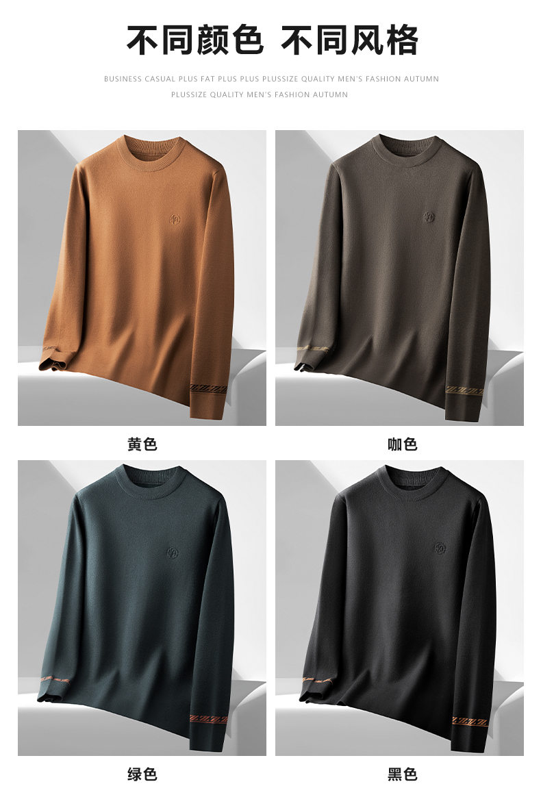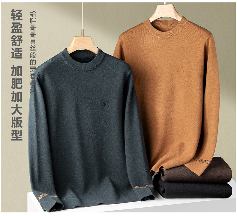 【舒适】【加绒半高领】【新款DDS】大依优型大码男装羊毛衫绵羊毛针织衫打底线衣套头纯色上衣男士胖子
