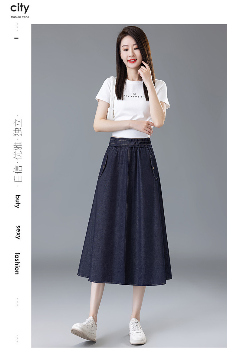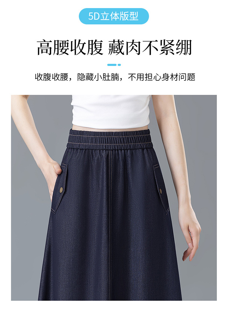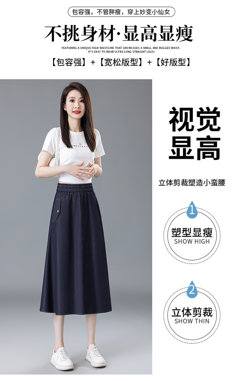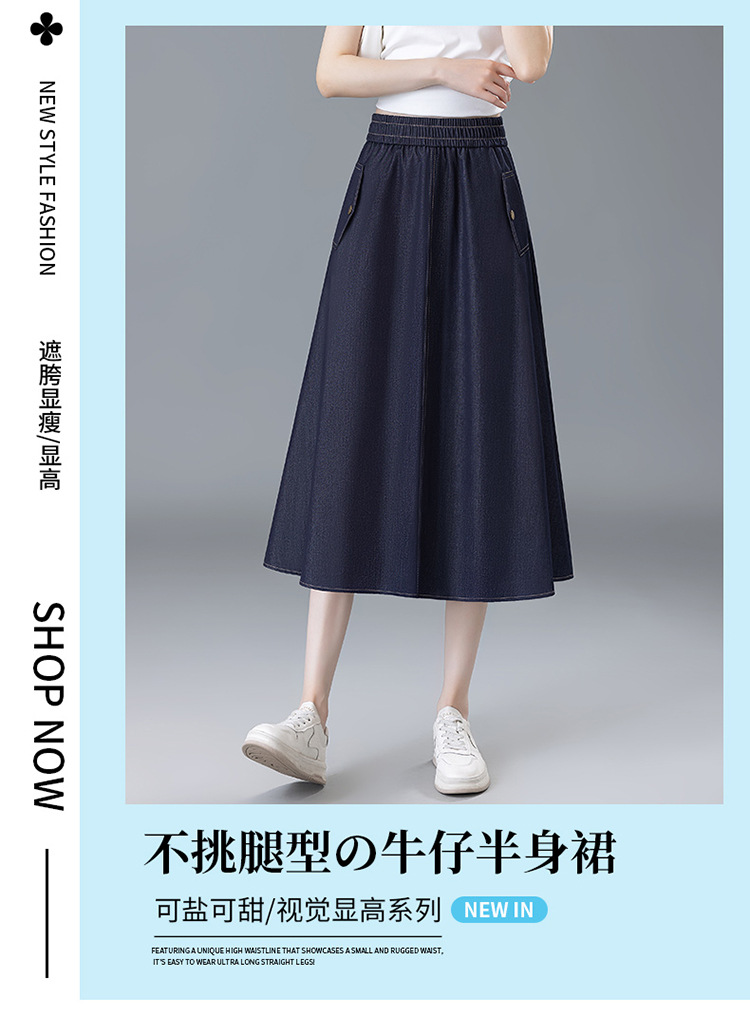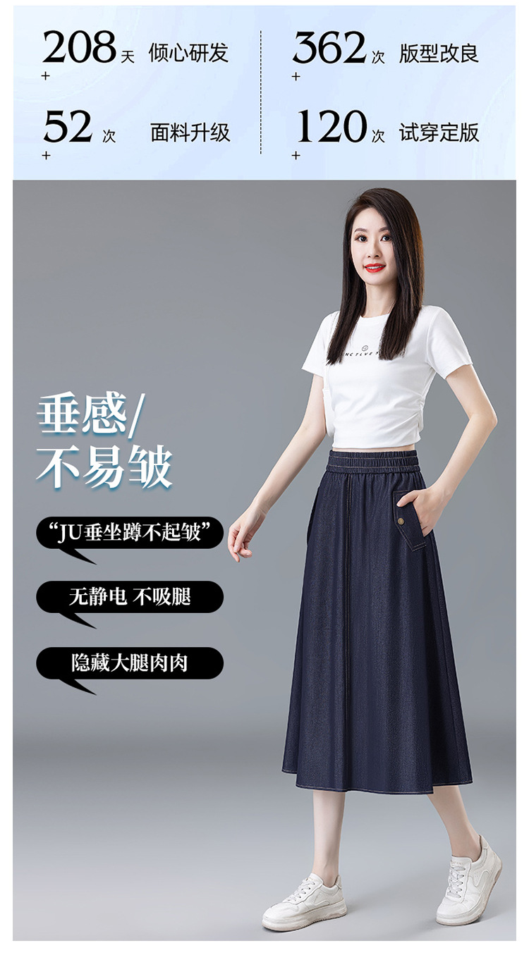 百媚生 牛仔半身裙女夏季薄款中长款伞裙518
