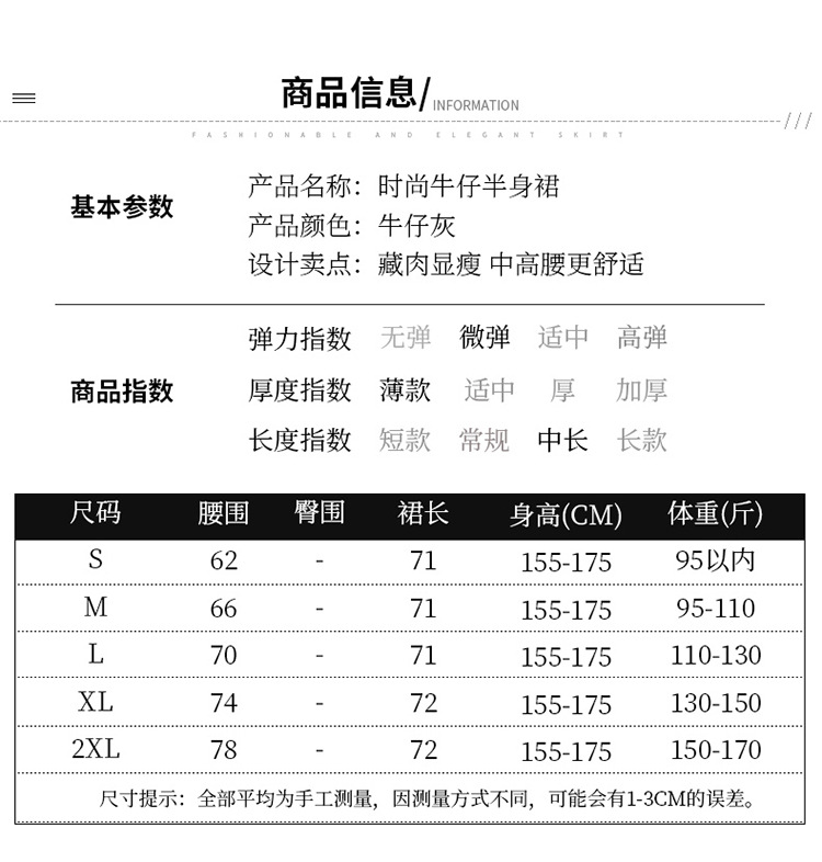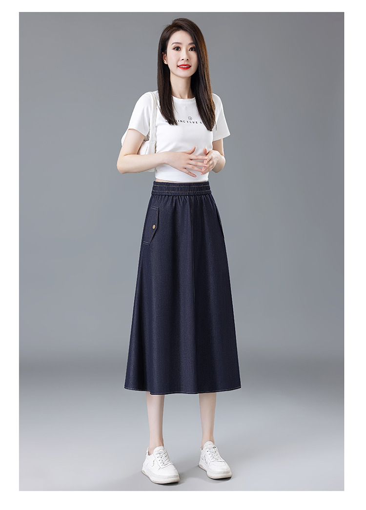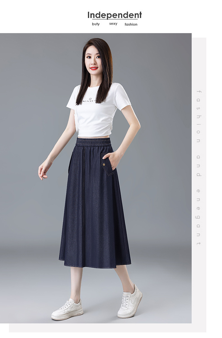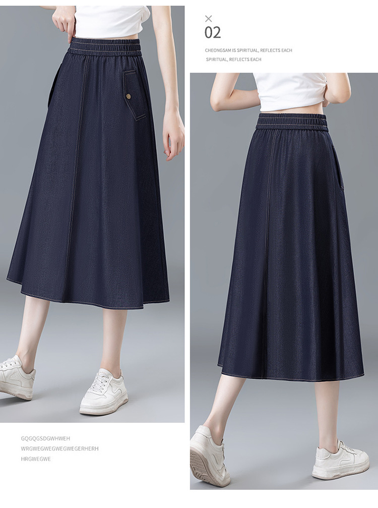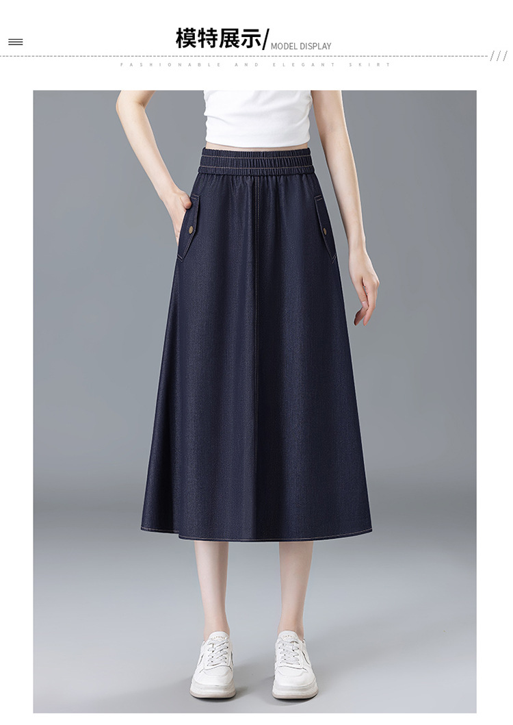 百媚生 牛仔半身裙女夏季薄款中长款伞裙518