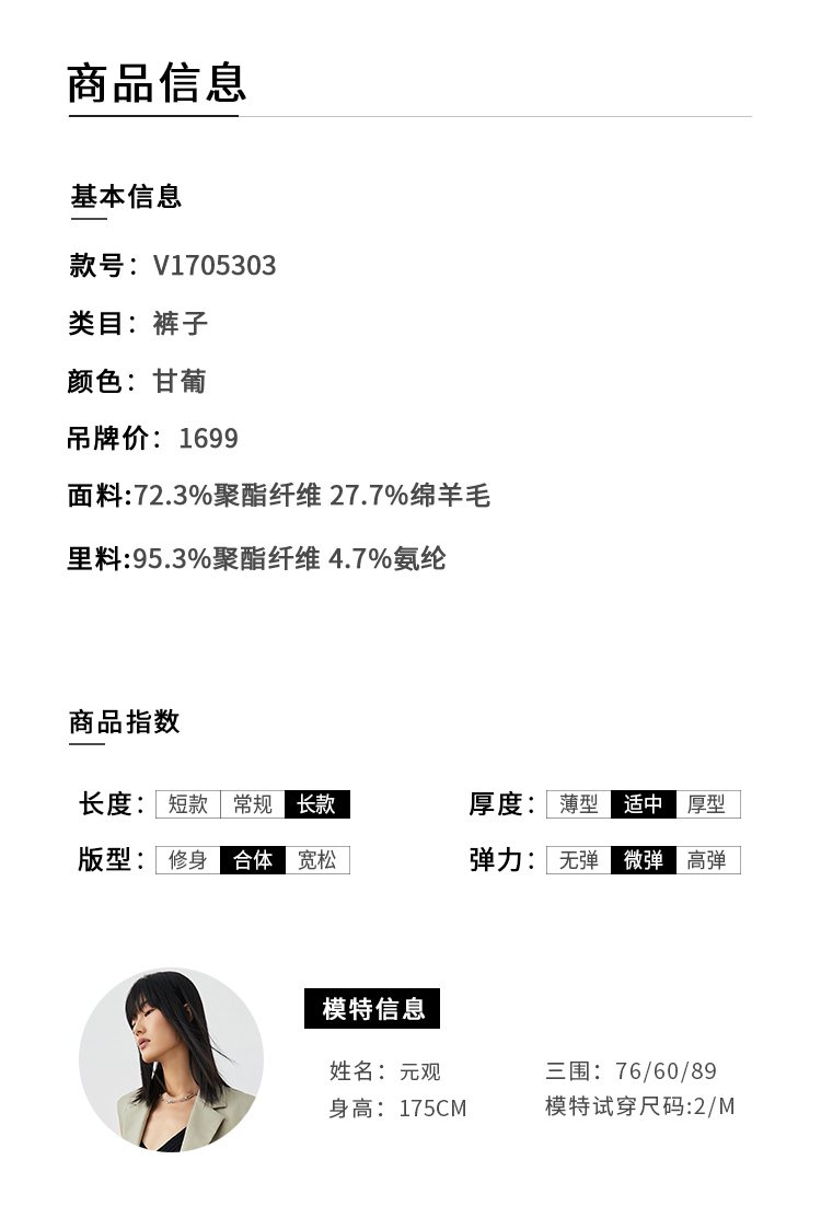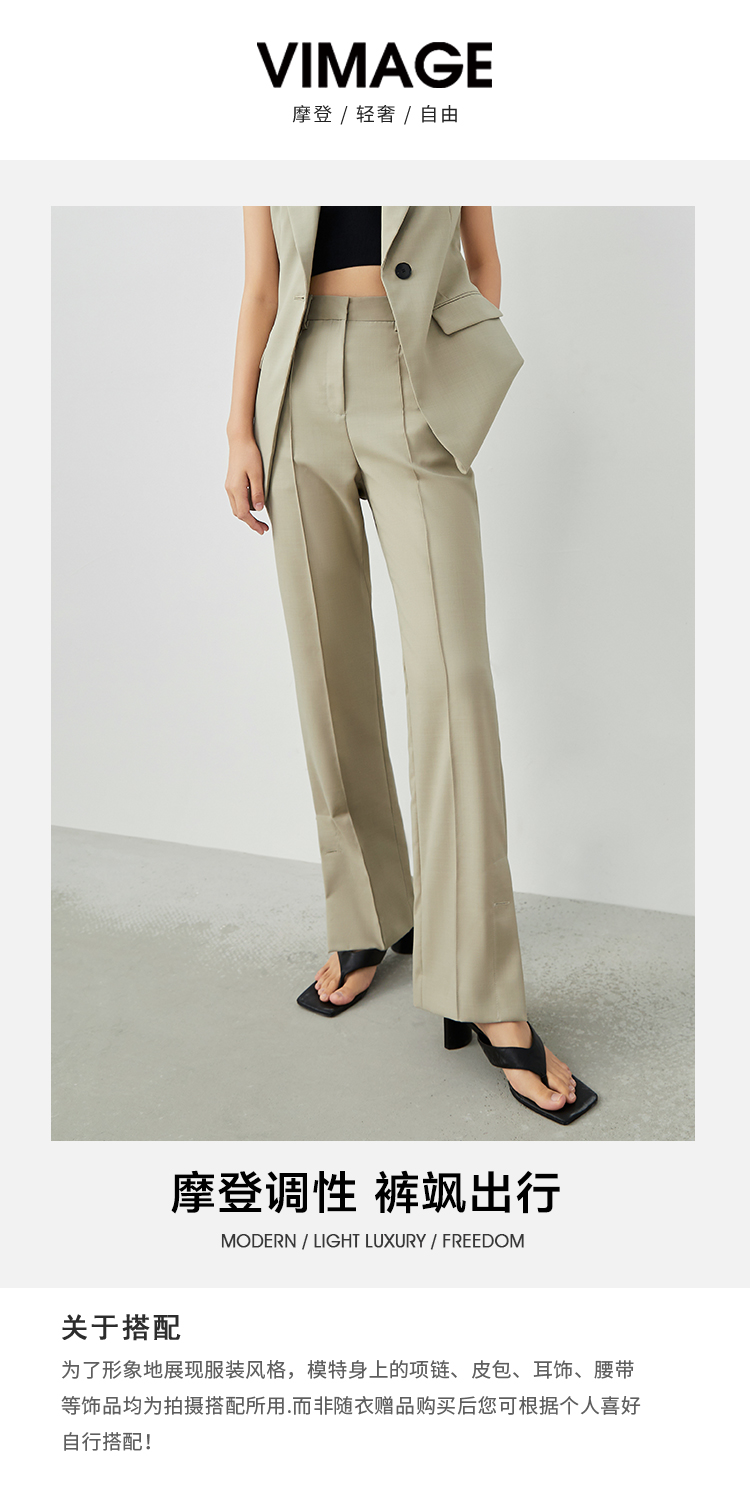 VIMAGE纬漫纪通勤职业显瘦直筒长裤女裤VA2105103