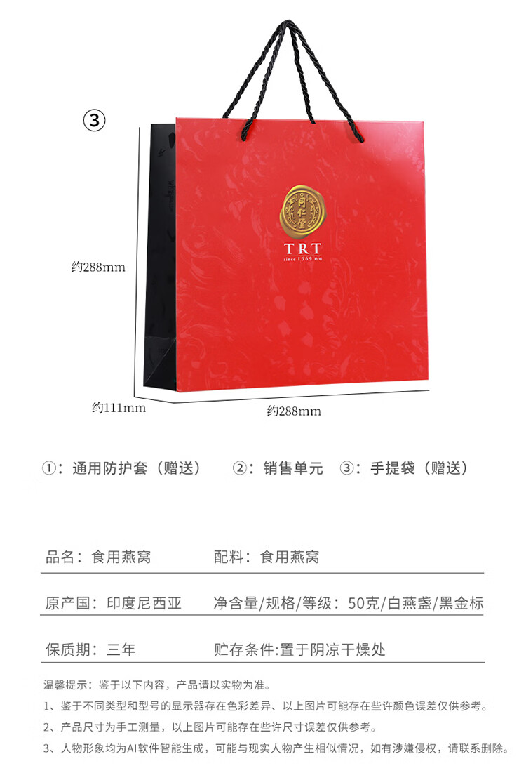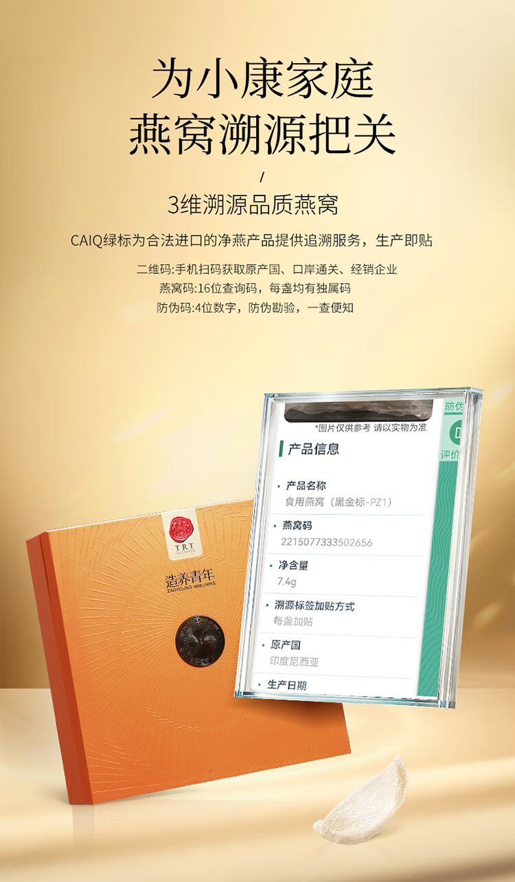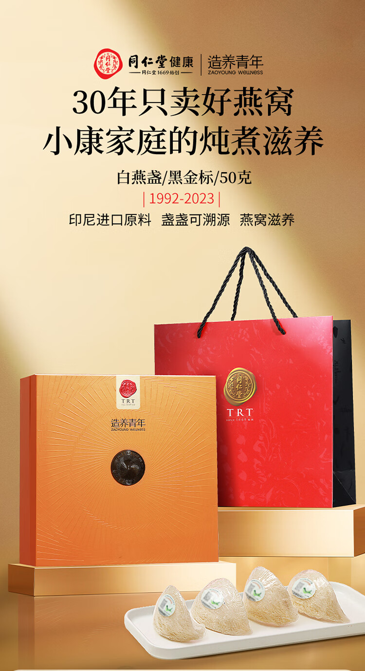 【正宗同仁堂品牌】北京同仁堂 干燕窝(黑金标款)印尼-50克 燕窝干盏 孕妇滋补 可溯源 进口原料 送礼盒SY