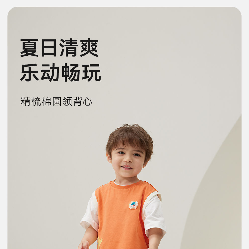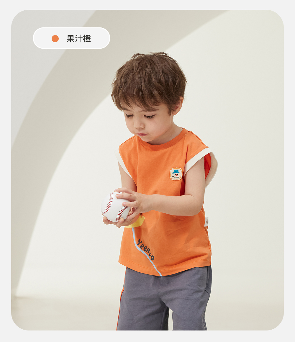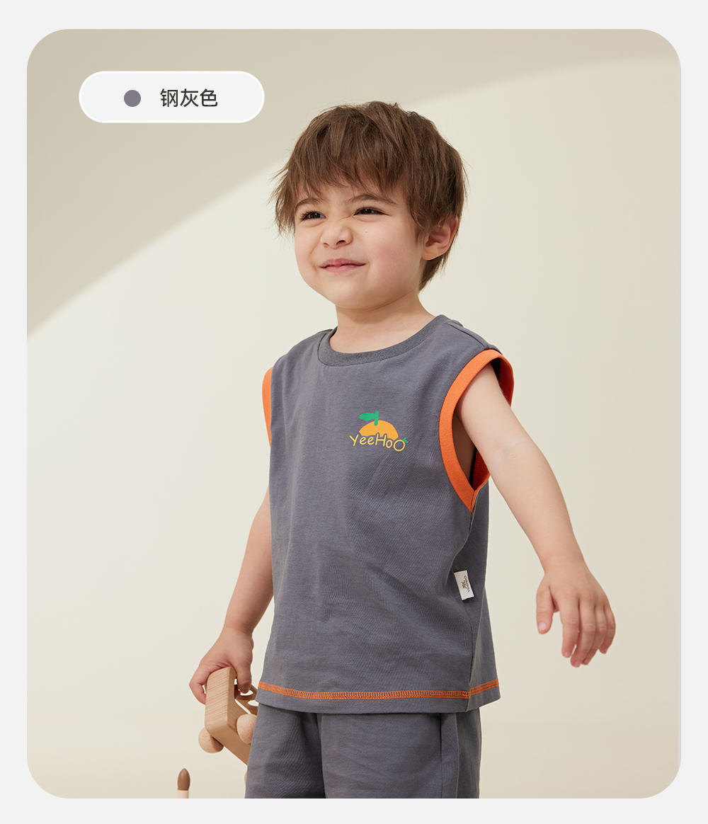 英氏夏季儿童背心男宝宝夏天透气户外背心打底纯棉新款