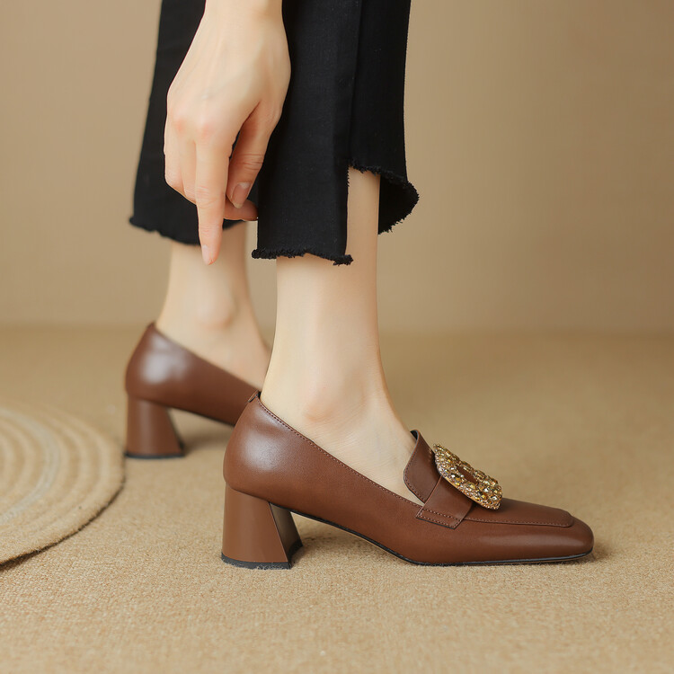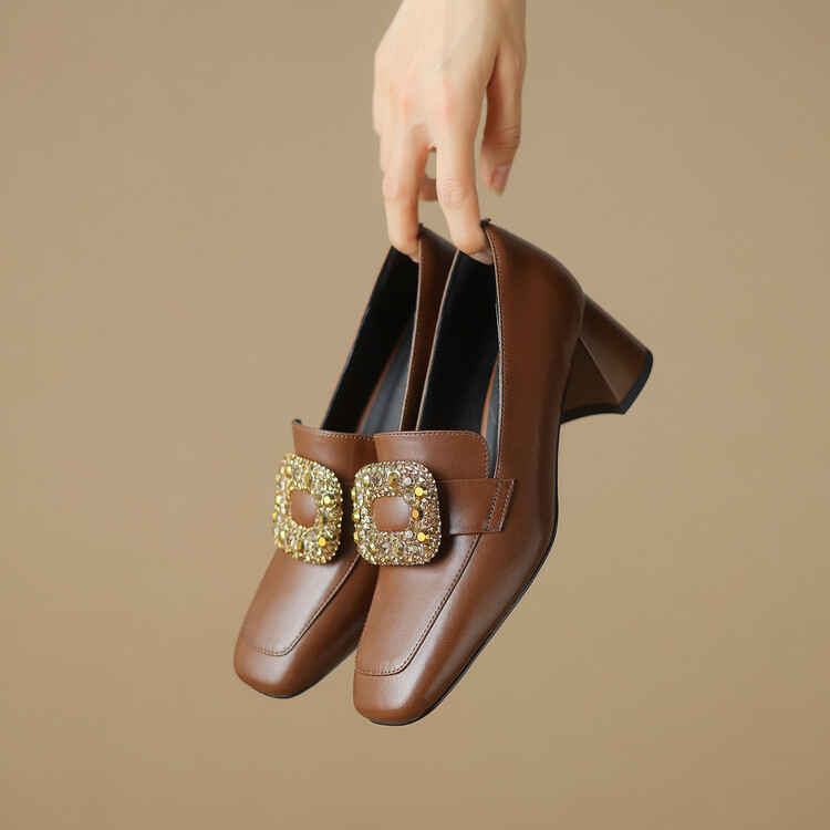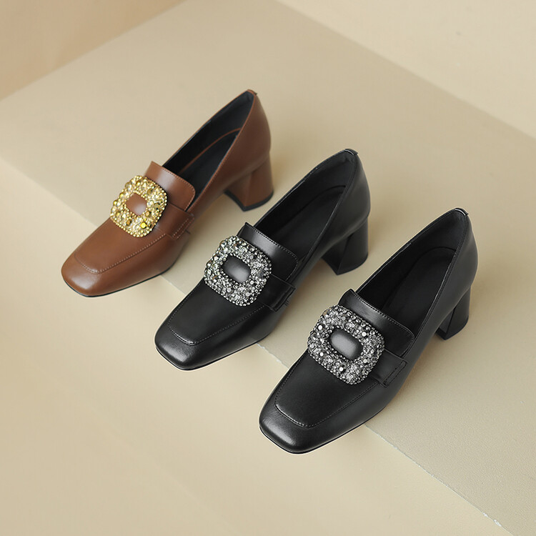 秋季新款,粗跟水钻单鞋LD-6506