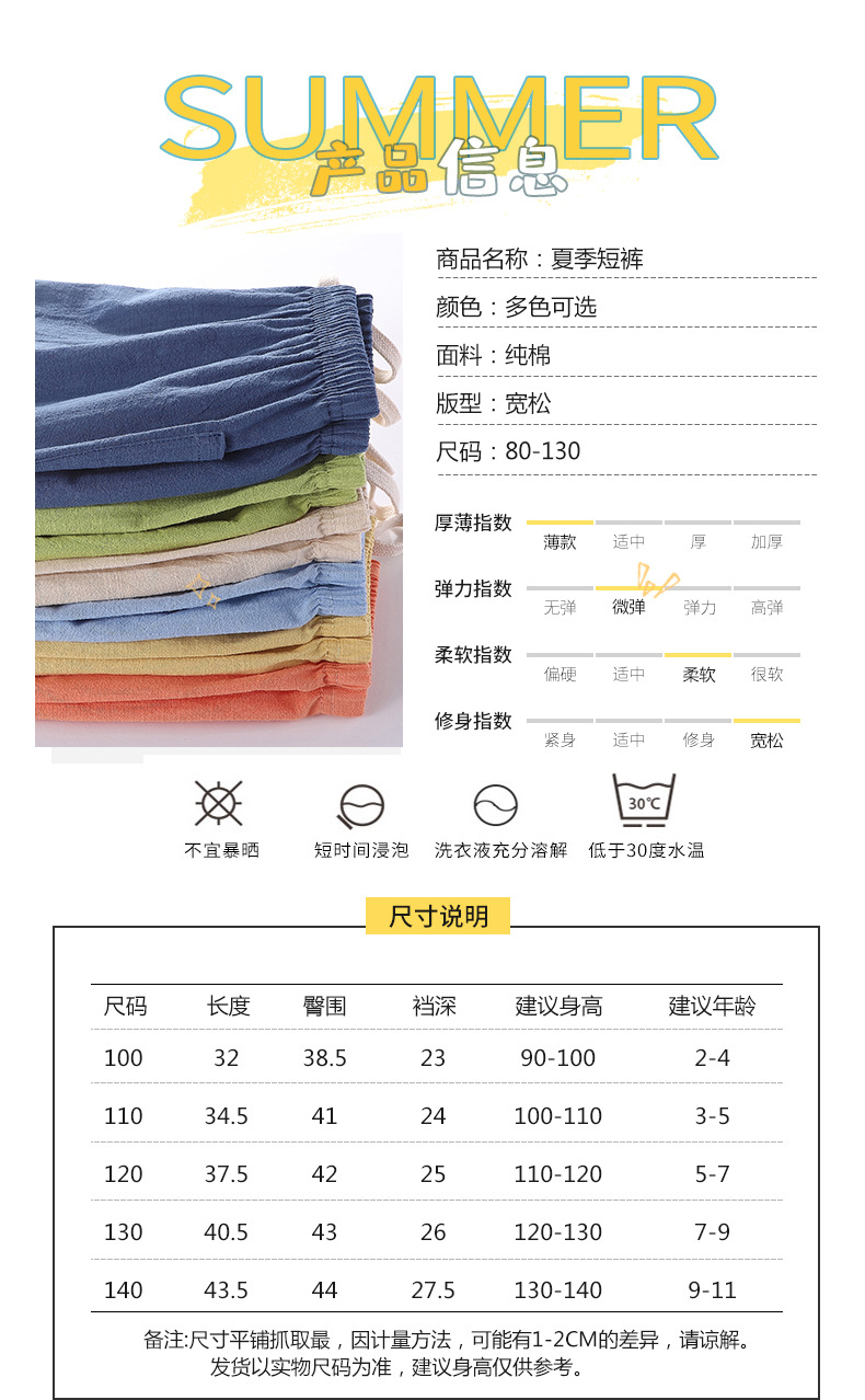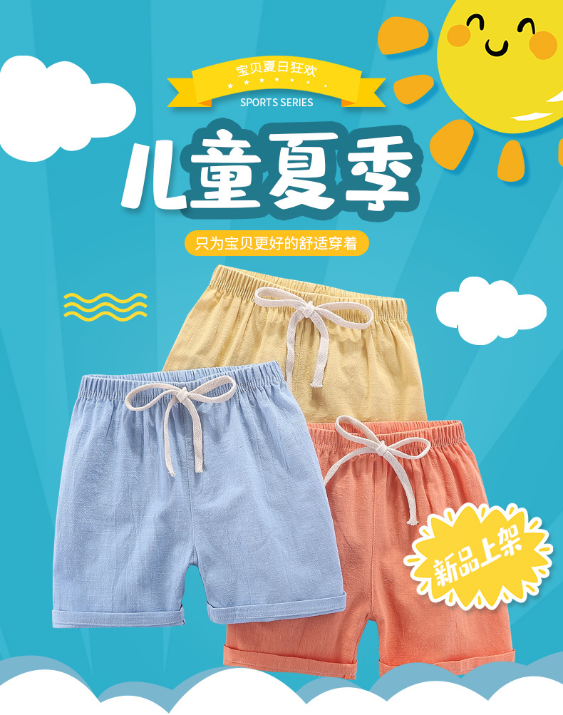 XYG-29907676优质竹节棉儿童五分短裤纯棉沙滩裤(有后口袋)