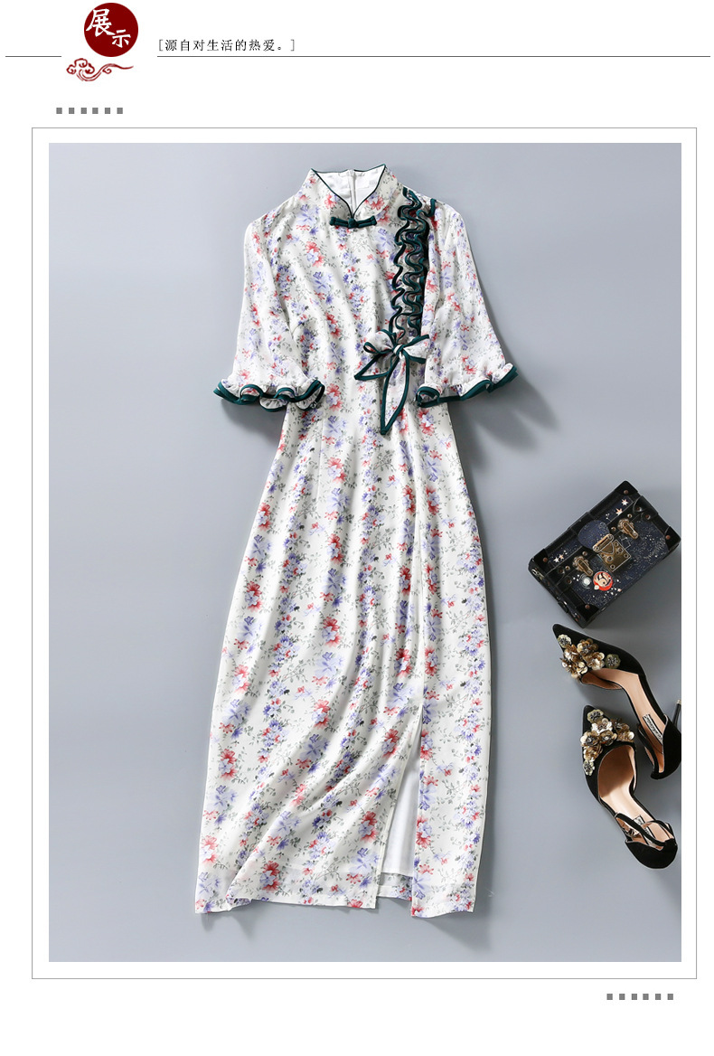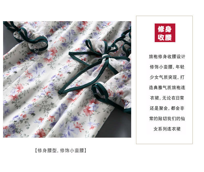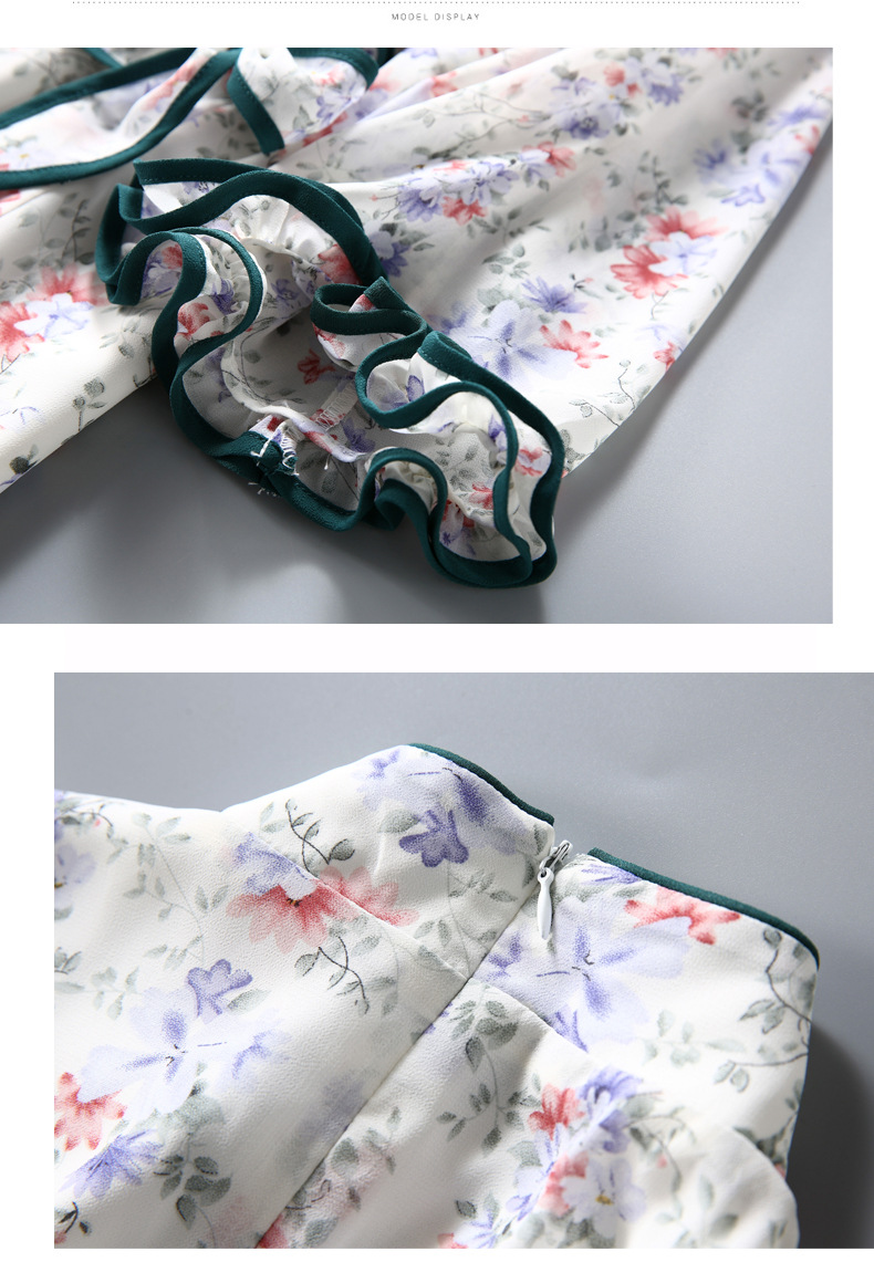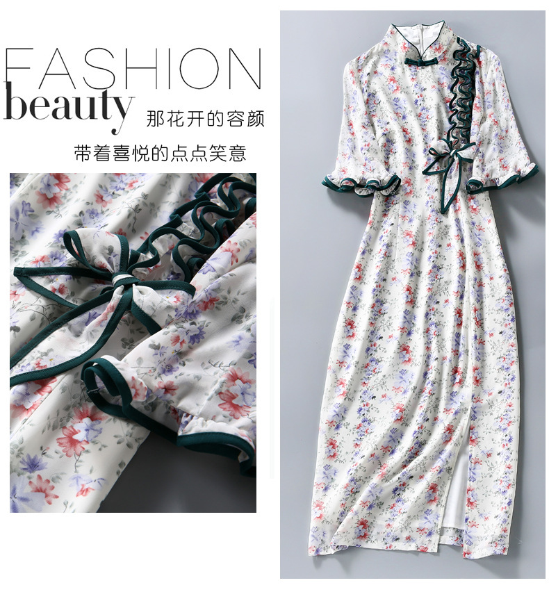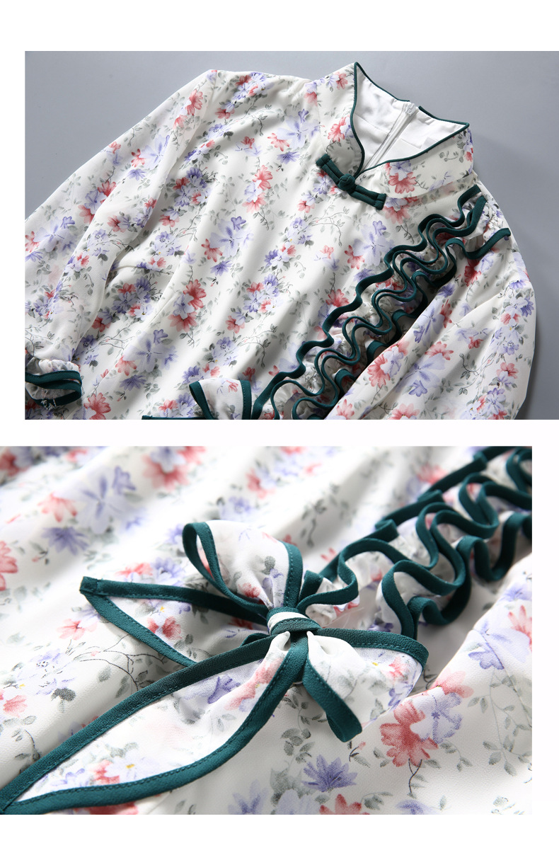 ZSM-200410夏季时尚旗袍 复古木耳边蝴蝶结印花连衣裙