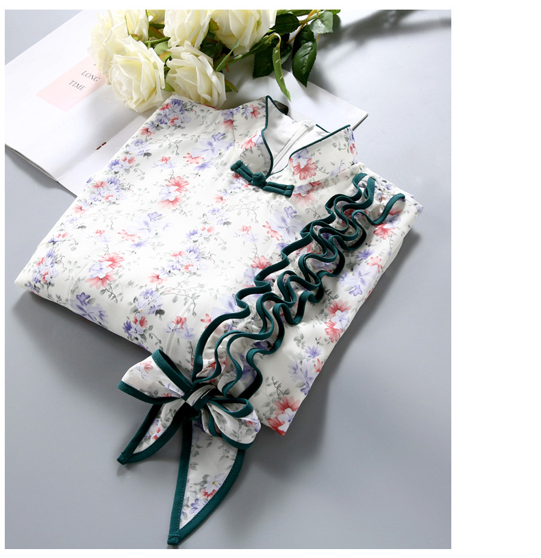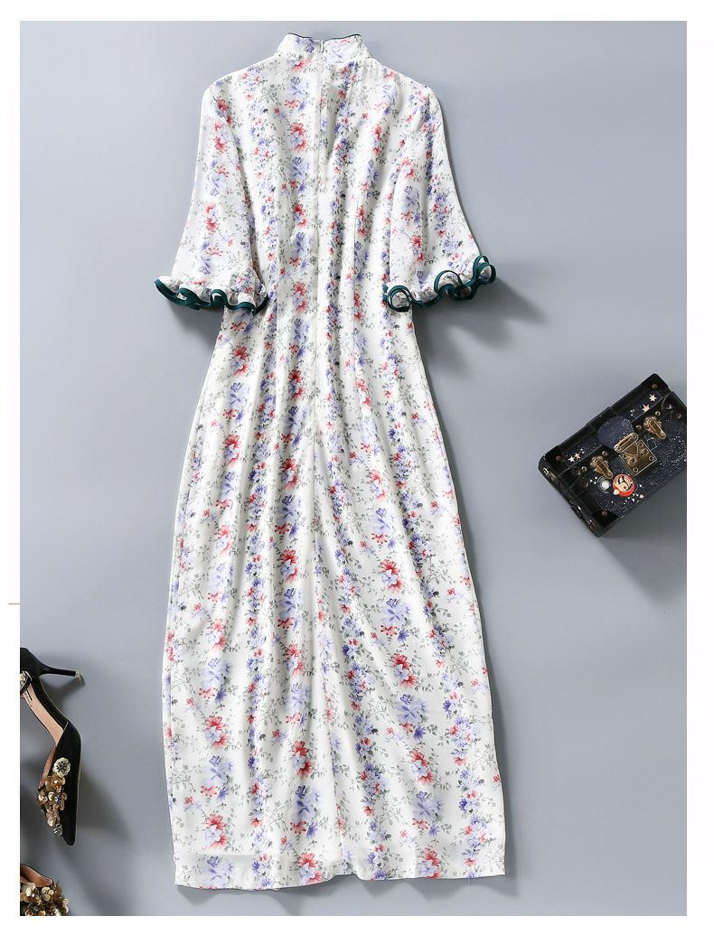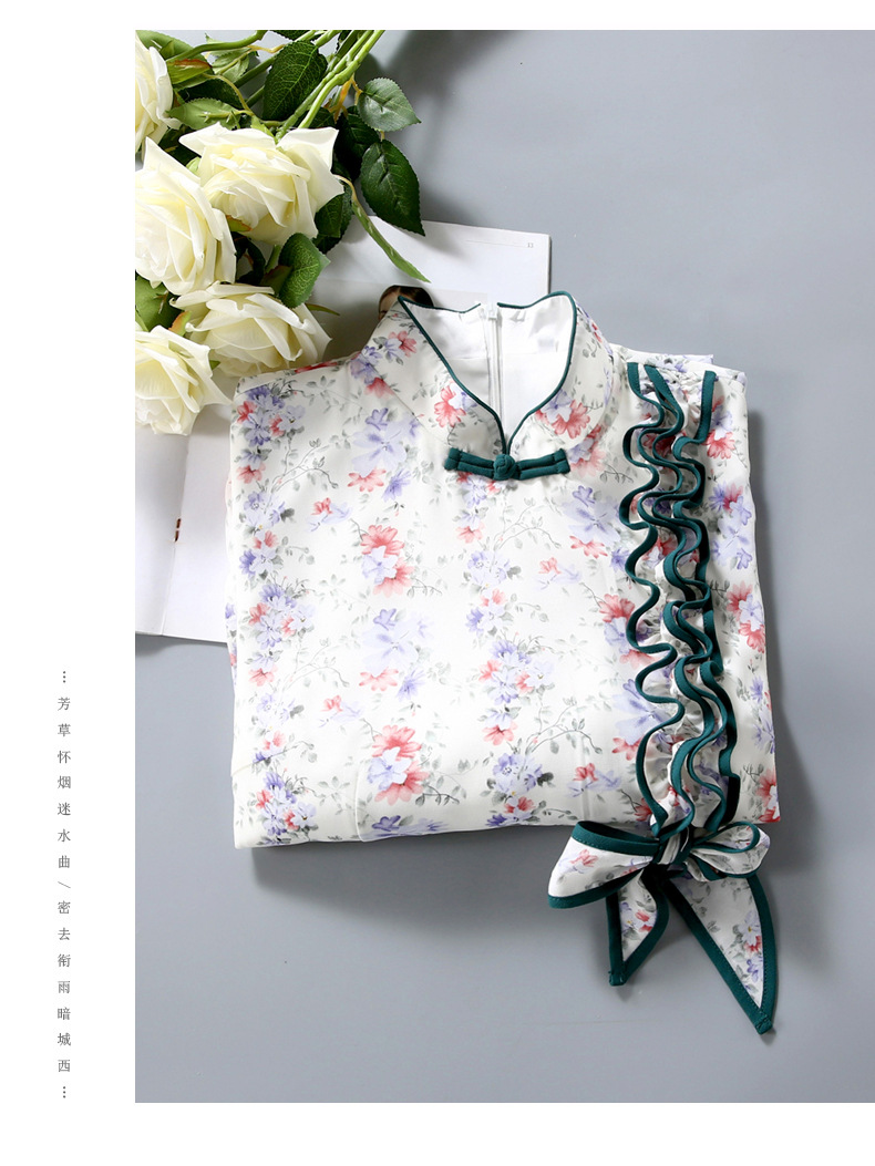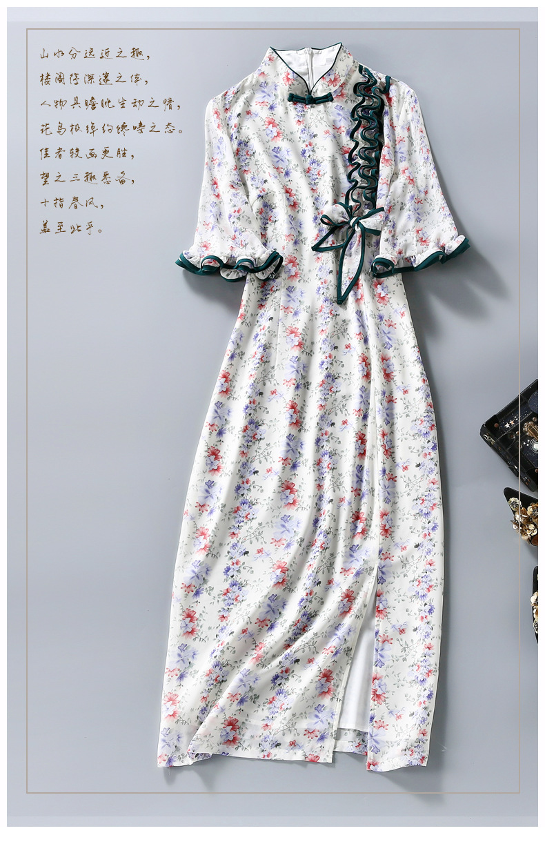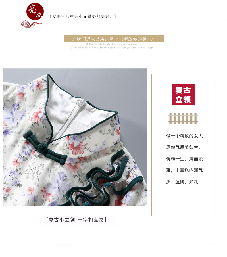 ZSM-200410夏季时尚旗袍 复古木耳边蝴蝶结印花连衣裙